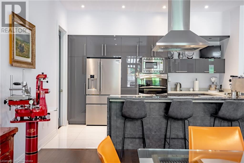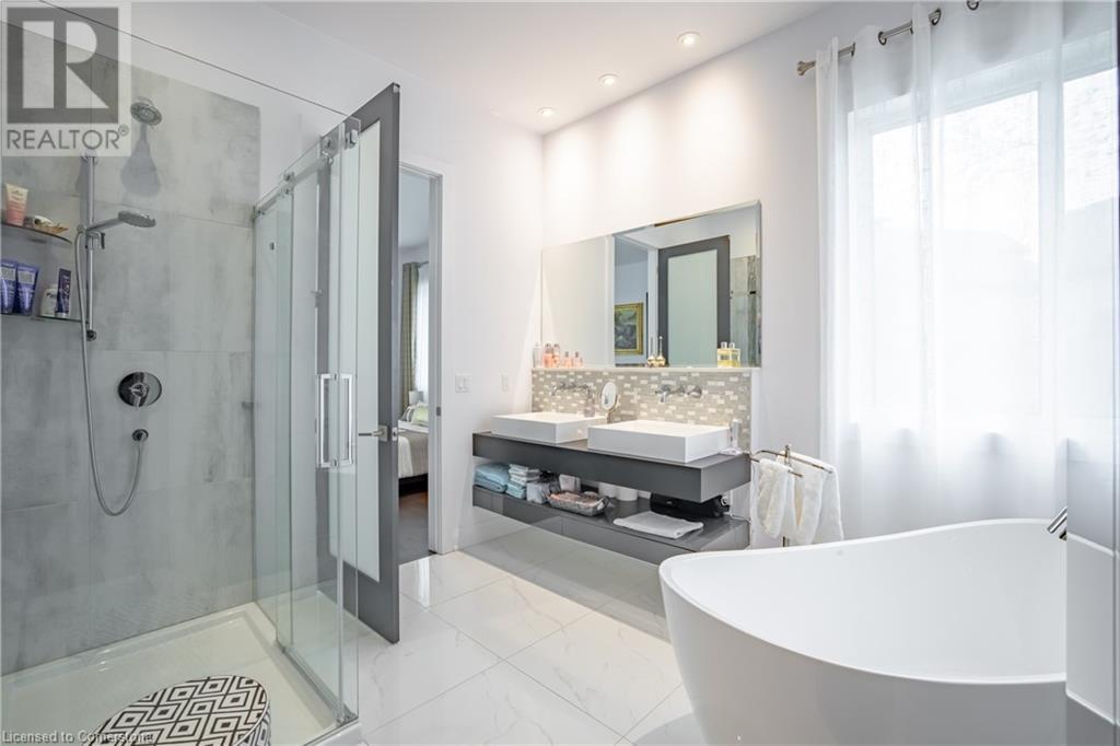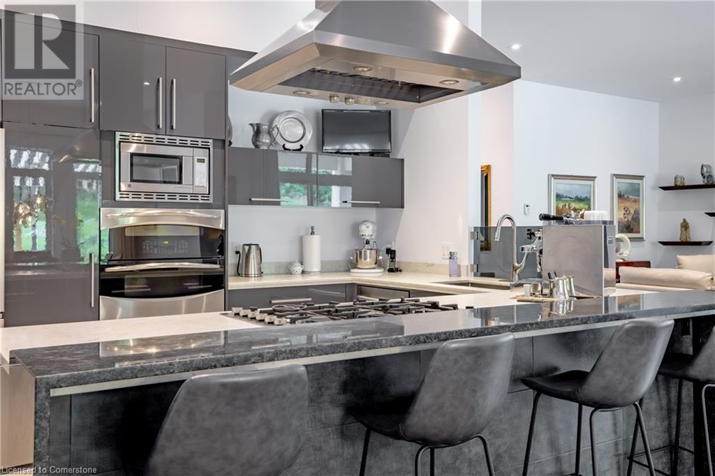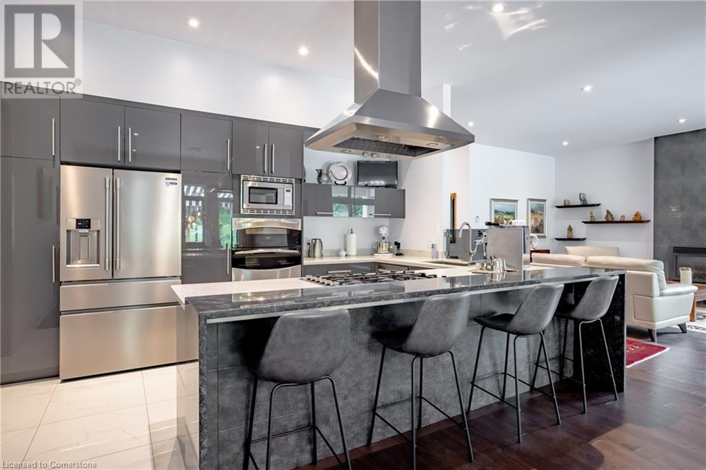 Discover the perfect blend of modern architecture and rustic charm in this stunning 4-bedroom bungaloft, offering over 4,300 square feet of luxurious living space. This property promises privacy and tranquility on its spacious lot, adorned with lush landscaping and natural stone accents. Upon entering, you are greeted by an open-concept design that seamlessly connects the living, dining, and kitchen areas, creating a harmonious flow throughout the main floor. The living room features a gas fireplace and abundant natural light. The European chef-inspired kitchen is a culinary dream, equipped with top-of-the-line stainless steel appliances, custom cabinetry, and a large centre peninsula that provides ample workspace. A full walk-in pantry offers additional storage. The main floor also boasts a luxurious primary suite that overlooks the serene backyard. This private retreat includes access to a personal patio, a spacious walk-in closet, and an elegant ensuite bathroom outfitted with modern fixtures, creating a spa-like experience at home. Fully finished basement features a sauna and a well-equipped gym, providing everything needed for a healthy and active lifestyle without leaving the comfort of home. The backyard is a true oasis, showcasing a beautifully landscaped garden complete with a wood-burning pizza oven and a gas BBQ. Additional amenities include a fully insulated & heated triple car garage and a full in-ground irrigation system. (id:55009)