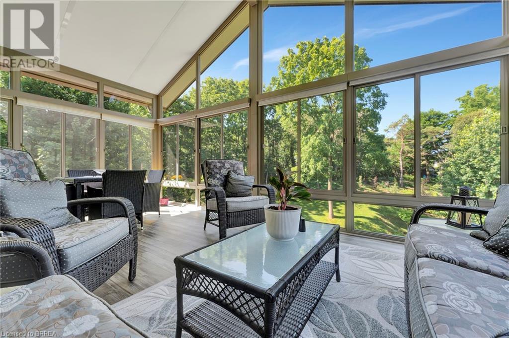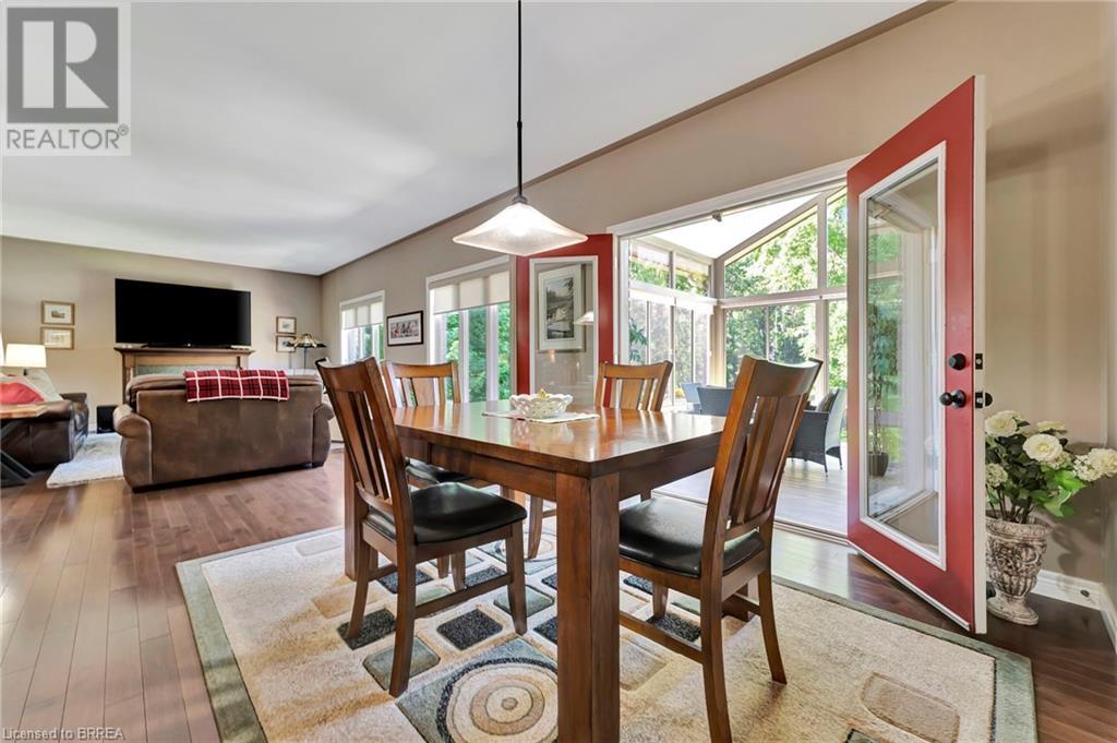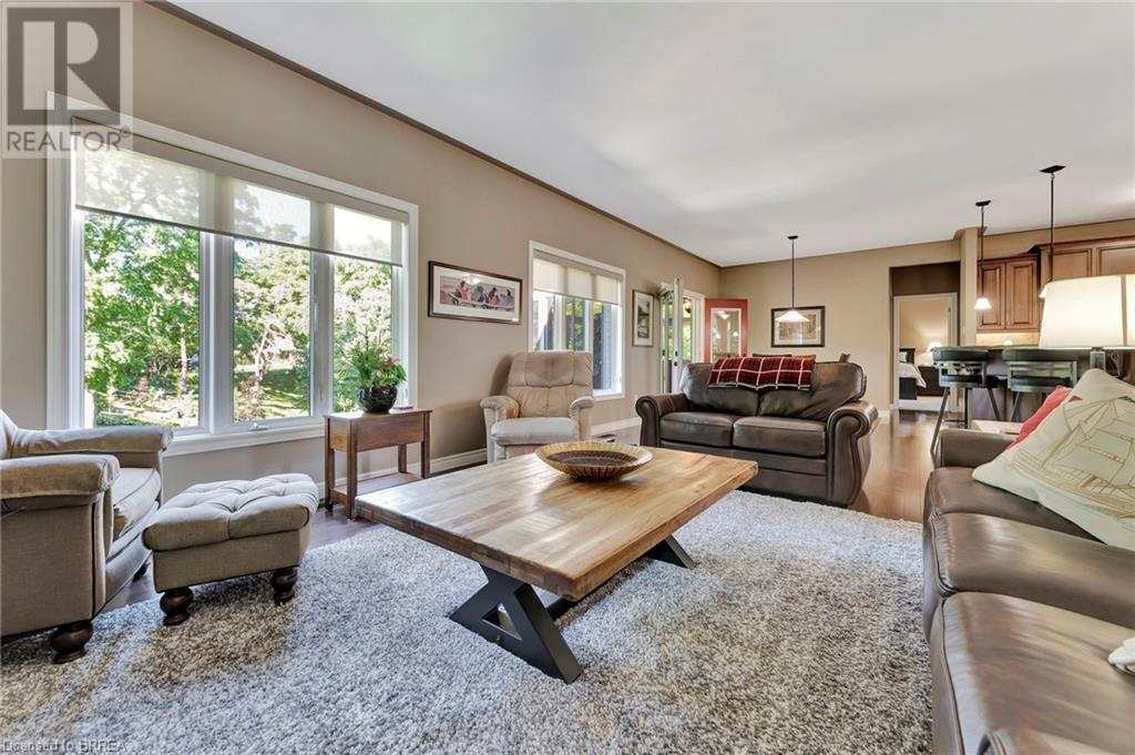Welcome to 10 Golden Meadow Drive in the enchanting town of Port Dover. Step inside this thoughtfully designed, turnkey home to discover a light-filled and airy open-concept living area that seamlessly flows into a stunning three-season sunroom. The heart of this home features a gorgeous kitchen adorned with beautiful maple cabinetry, an elegant stone backsplash, a spacious island, and sleek stainless steel appliances. Adjacent to the kitchen, the inviting living room and dining area effortlessly lead to the sunroom, where you can unwind and bask in the breathtaking views of the landscaped backyard oasis. Retreat to the comfortable primary bedroom, which boasts a generous walk-in closet and a luxurious ensuite complete with a soaking tub and a separate shower. The main level also includes two additional bedrooms, along with a conveniently located four-piece bathroom and a well-appointed laundry room with direct access to the two-car garage. Venture down to the lower level to find an expansive family room featuring a stylish bar and a walk-out to a charming covered patio, ideal for entertaining guests. The exterior of this home is equally impressive, showcasing a private backyard that serves as a tranquil oasis for relaxation and entertainment. The landscaping is adorned with towering mature trees that provide both seclusion and natural beauty. Vibrant flower gardens and a gentle creek winding through the property offer a serene touch, making this space truly special. Located in the heart of Port Dover, this property is a slice of paradise. Enjoy the nearby sandy beaches, vibrant downtown filled with trendy boutiques, lakeside restaurants, and numerous parks or partake in the town’s famed seasonal festivals. 10 Golden Meadow Drive is more than just a home; it’s a sanctuary that beautifully combines luxury, privacy, and an ideal location for both relaxation and entertaining. Book your showing today! (id:55009)