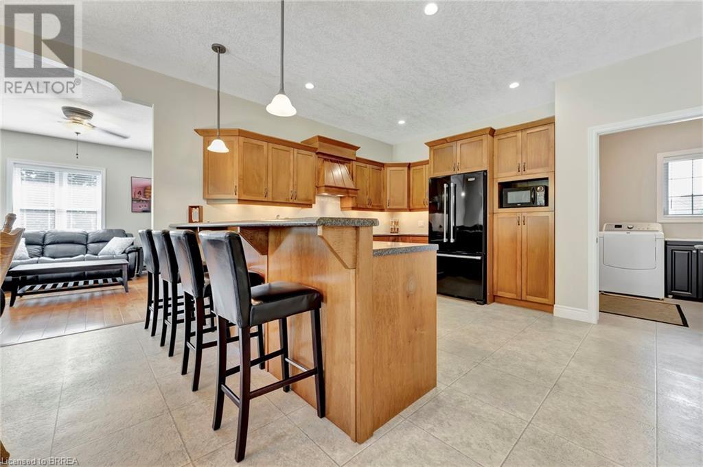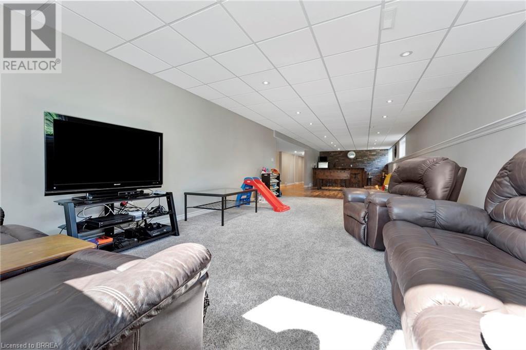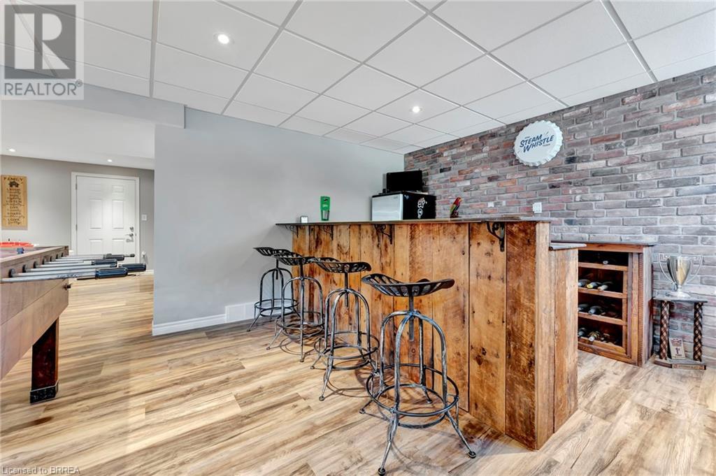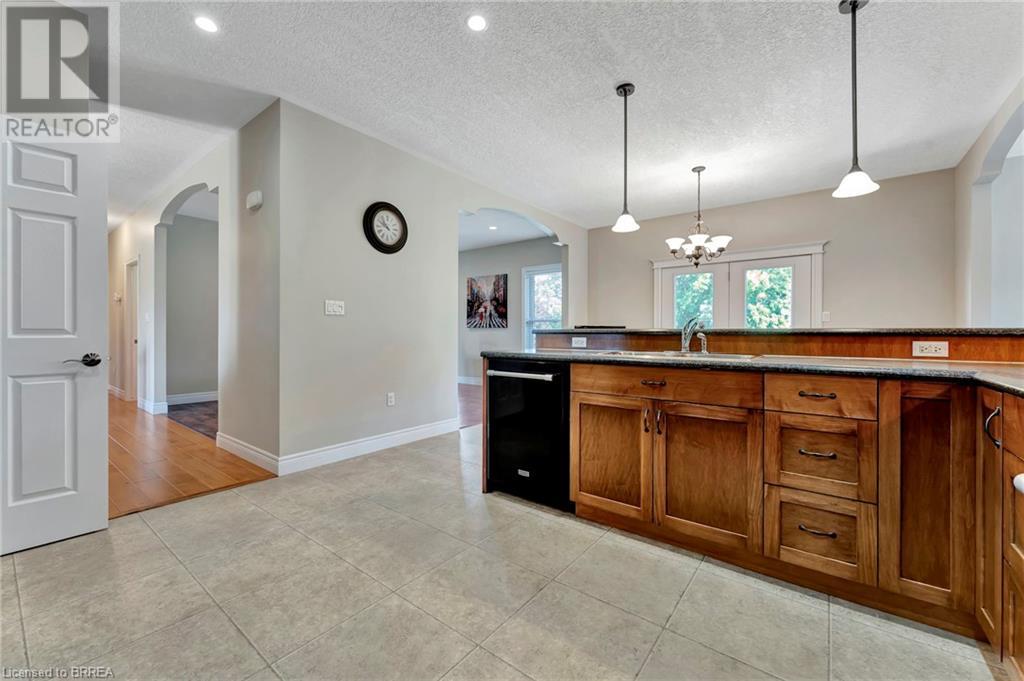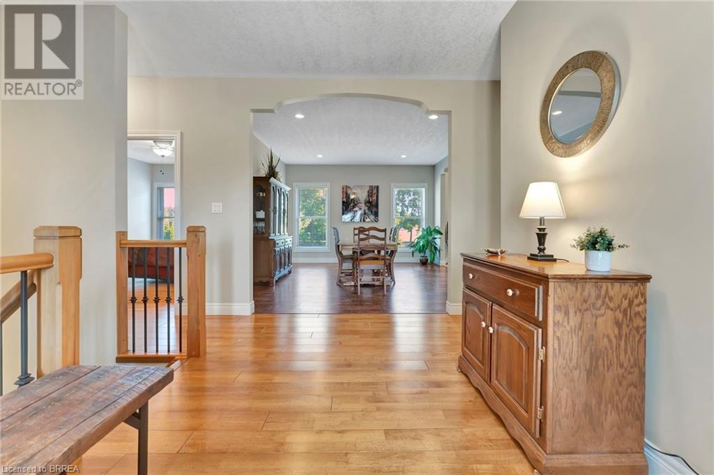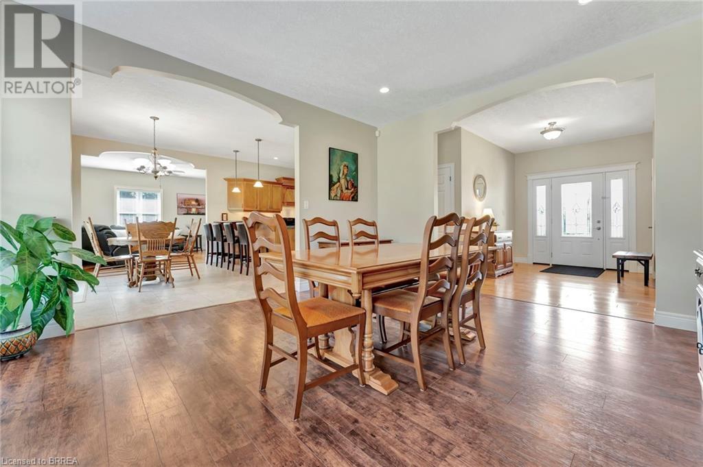 Dreaming of living in style? This exceptional all brick bungalow welcomes you with its quiet elegance. Impeccably maintained, situated on a 3/4 acre lot in a picturesque neighborhood in the tranquil village of Scotland. Exuding curb appeal with the striking front landscaping, rod iron fence, large driveway & a remarkable 152 foot frontage. Built in 2009 w. over 3000sq. ft. of finished living space this home will not disappoint. The large foyer will greet your guests. Open concept living on the main floor makes entertaining a breeze w. dining rm, living rm, kitchen & family rm. The kitchen offers abundant custom maple cabinets & gas stove for the serious cook, a breakfast bar, easy care flooring, carpet free. Convenient main floor laundry rm with access to the oversized 2 car garage. The primary bedroom entices w. a large walk-in closet plus ensuite with soaker tub & separate shower. Two spacious bedrooms share the 4pc bath. Still working from home? There is a main floor office. The finished basement is a treat w. oversized windows providing a ton of natural light. Stunningly large rec room, games room with bar for all your additional entertaining needs. Den or future bedroom/ office. Workshop, potential bedroom. A 2-pc bath, large utility room & cold storage complete the lower level. Beautifully landscaped, above ground pool, extensive yard. This is a beauty! Walking distance to Oakland/ Scotland Public School, Scotland Food Market/ LCBO & short 25- minute drive to downtown Brantford. (id:55009)