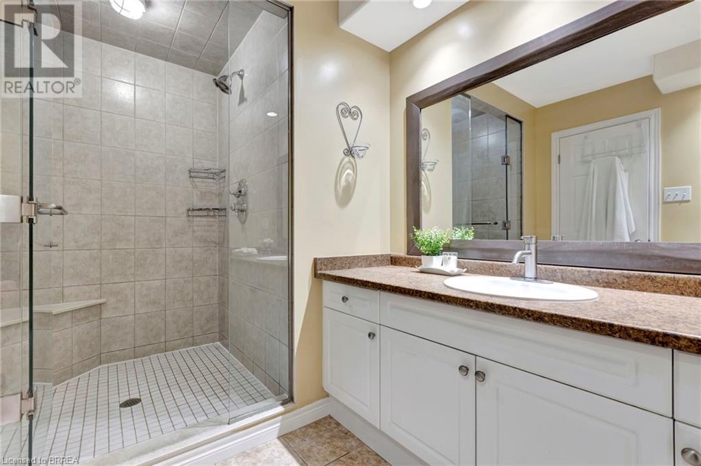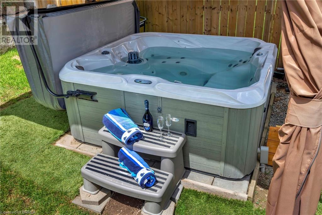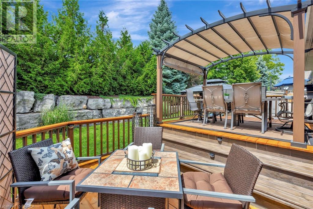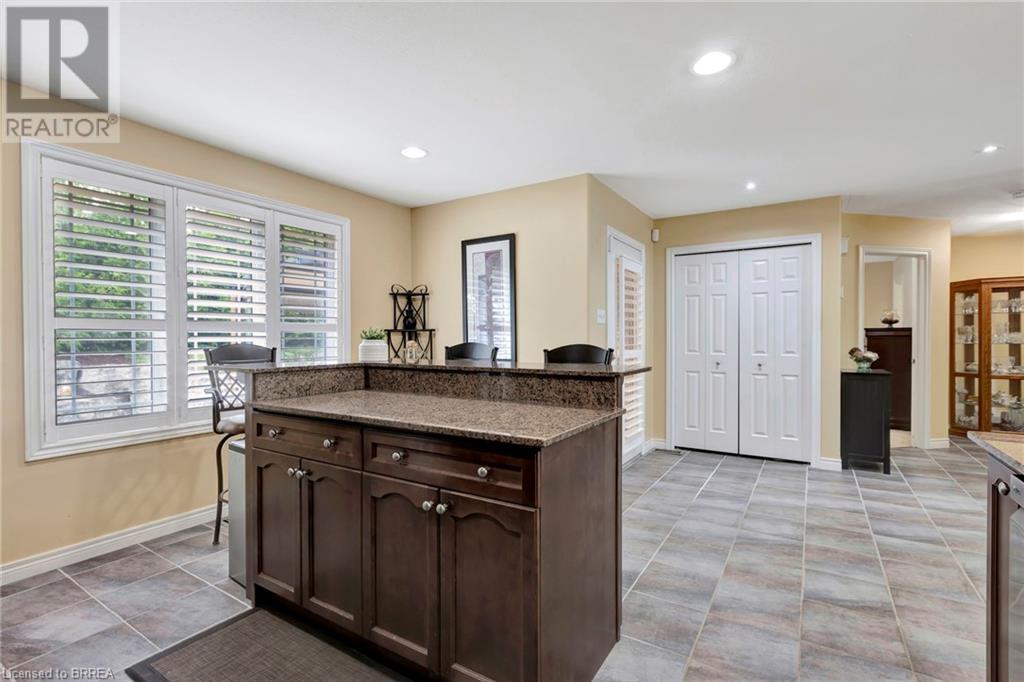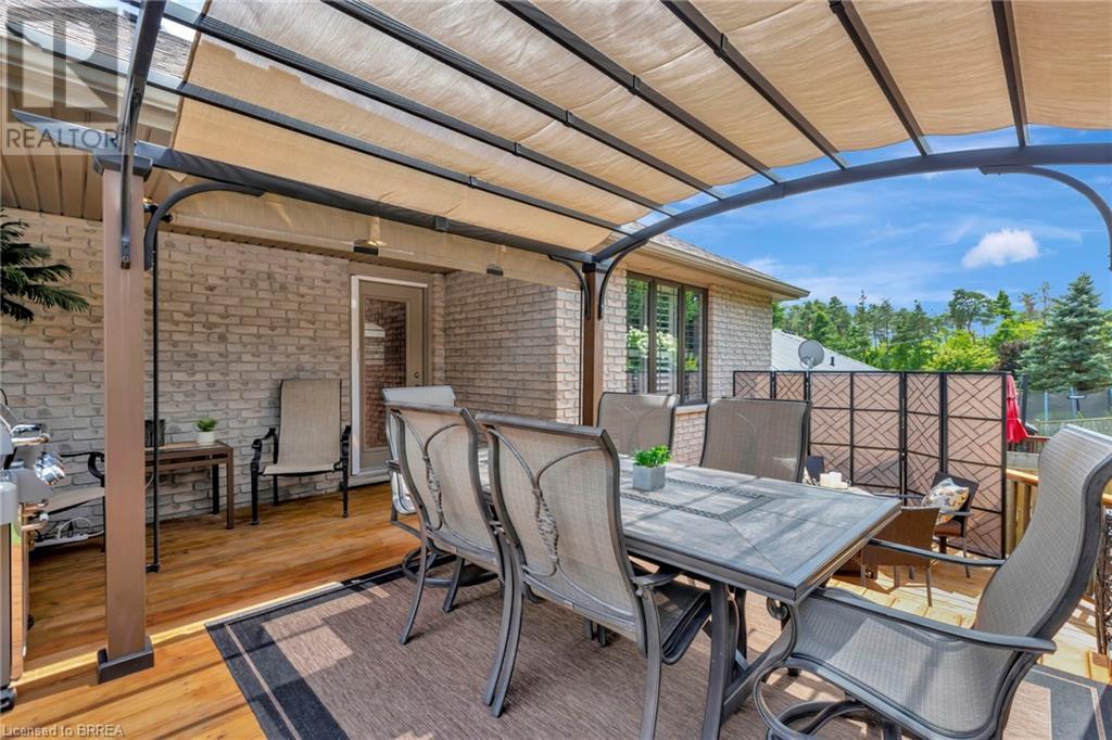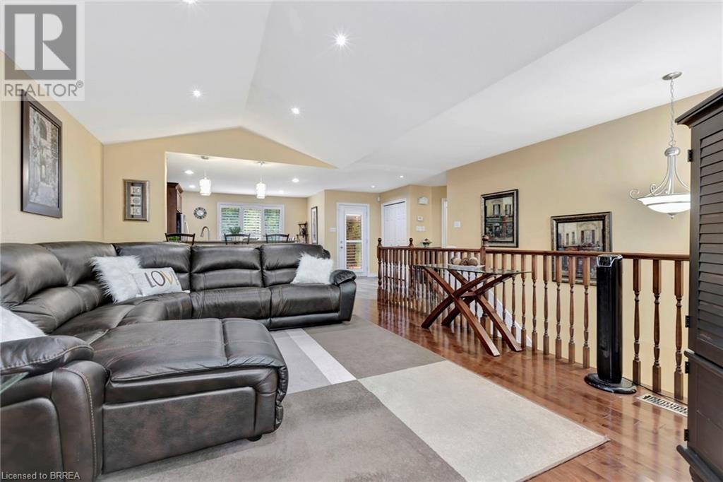 This exquisite custom-built home boasts meticulously landscaped grounds and is nestled on a tranquil, highly coveted street in an exceptional neighborhood enveloped by mature trees. This hidden gem is situated on one of the most desirable streets in West Brant, offering a serene environment that is both sparsely populated and removed from the hustle and bustle of busy thoroughfares. Upon arrival, you are greeted by a magnificent foyer adorned with elegant moldings and enhanced by pot lights that illuminate the main living areas. The home features stylish California shutters throughout, adding a touch of sophistication. The open-concept family room and kitchen on the upper level are truly impressive, showcasing luxurious hardwood floors and a vaulted ceiling in the family room that creates a sense of grandeur. The gourmet kitchen is a culinary dream, featuring a generous prep island, a breakfast bar, sleek stainless steel appliances, and newly installed granite countertops paired with a striking backsplash that enhances the kitchen's charm. Descend to the lower level to find a large living room centered around a charming gas fireplace, and a beautifully designed bathroom with a spacious walk-in shower. Step outside to your own secluded backyard oasis, a serene escape that feels like a retreat within the city. Enjoy the new 2-tiered deck, recently updated with fresh boards and a staircase, complemented by large landscaping rocks and tall cedar trees lining the back. Unwind in the upgraded hot tub, which was completely overhauled in 2023 with a new heater, control panel, and blower motor, or simply relax amidst your private paradise. Additional features of this remarkable property include a water softener, a reverse osmosis system, a new roof with upgraded shingles (2019), insulated garage doors, all-new windows, and new fencing. Conveniently located near West Brant’s finest amenities and schools, this home is a must-see. Schedule your showing today! (id:55009)