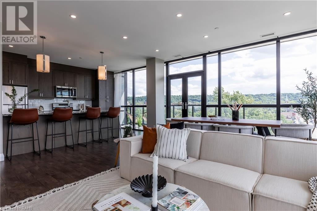 $1,110.95 MonthlyWelcome to 101 LOCKE, Hamilton’s most exclusive boutique condo building in the heart of the Locke Street neighbourhood. This stunning Manhattan unit features 1241 sqft of luxury living space with floor to ceiling windows and glass wrap around balcony with an extra 320 sqft of outdoor space to enjoy southwest sunset views. This upgraded unit features dark plank flooring throughout, spacious open concept living and dining areas, gourmet kitchen with large island, granite counter tops, stainless steel appliances and ample storage. There are 2 bedrooms and 2 baths including the primary with 4pc spa like ensuite with walk-in shower and marble floors, and 2nd bedroom with 4pc bath, plus a den with sliding doors, perfect for your home office. The unit includes 2 underground parking spots and 3 storage lockers plus fabulous building amenities including a luxurious rooftop lounge featuring entertainment area, dining & party area, outdoor terrace with BBQ’s and fireplace, skyline fitness center with yoga deck, steam room & showers. Other building amenities include bike storage, dog wash station plus 24-hour video surveillance. Stroll to the shops, restaurants and amenities on Locke St. S, schools, parks, churches, transit, plus just minutes to St. Joseph’s Hospital, McMaster Medical Center & University, golf, hiking trails, and so much more! Just move in, relax, and enjoy luxury living on Locke. RSA (id:55009)