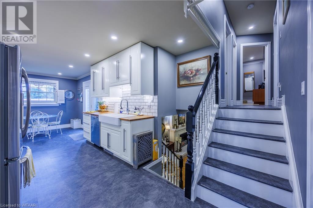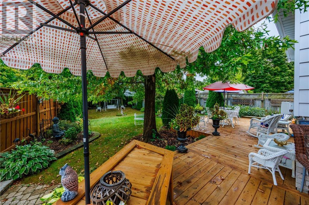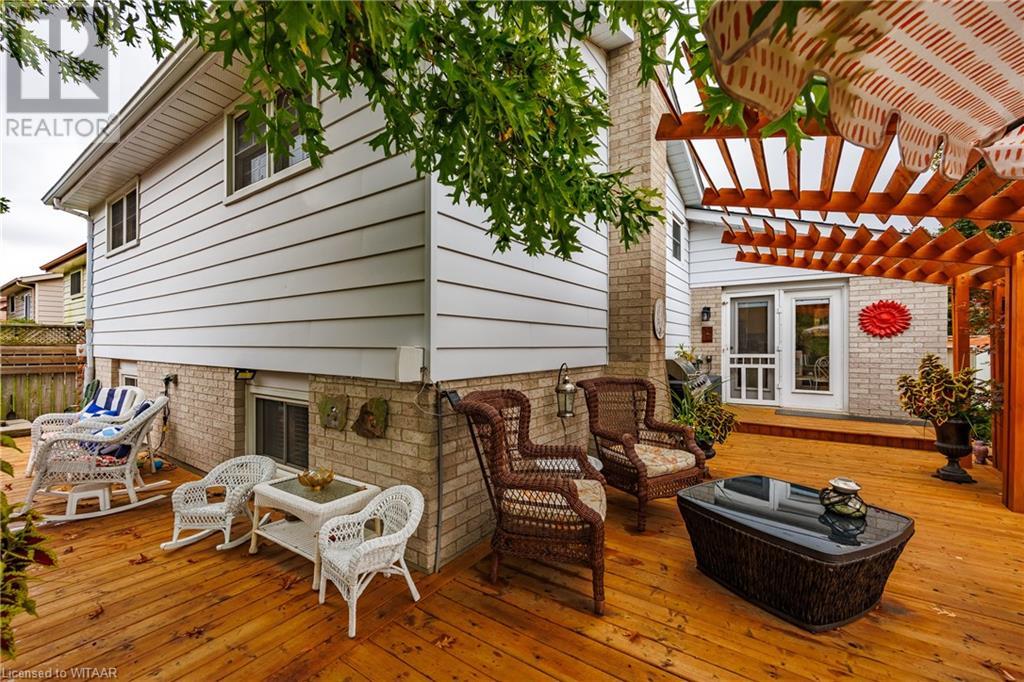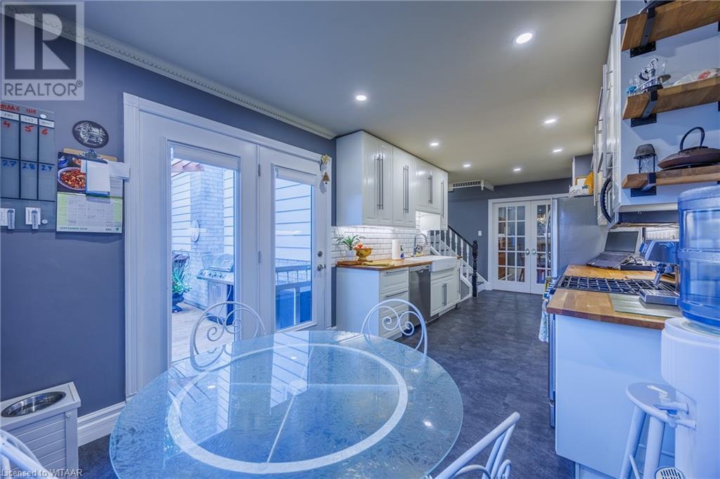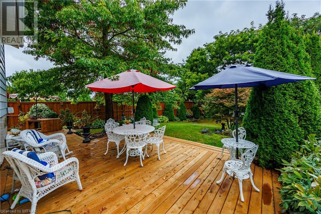 Welcome to this cozy brick backsplit, perfectly designed for family living. The home features a large deck with a custom shade awning, surrounded by gorgeous mature landscaping, offering a private outdoor retreat. Step inside to an open-concept living and dining area with French doors, flowing into a bright updated kitchen with a cozy dinette. A garden door leads from the kitchen to the deck, making it ideal for outdoor gatherings. Upstairs, you’ll find three bedrooms, all with ample closet space, and a 3-piece family bath. The spacious lower level includes a rec room with a fireplace, an additional bedroom, a 3-piece bath, and a storage room with a workbench. The large laundry room adds to the home’s functionality. A steel roof and double attached garage provide durability and convenience. Located close to shopping, schools, parks, a splash pad, and scenic walking trails, this property offers everything you need in a wonderful family-friendly neighbourhood! (id:55009)