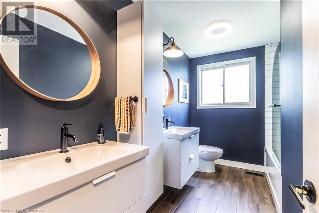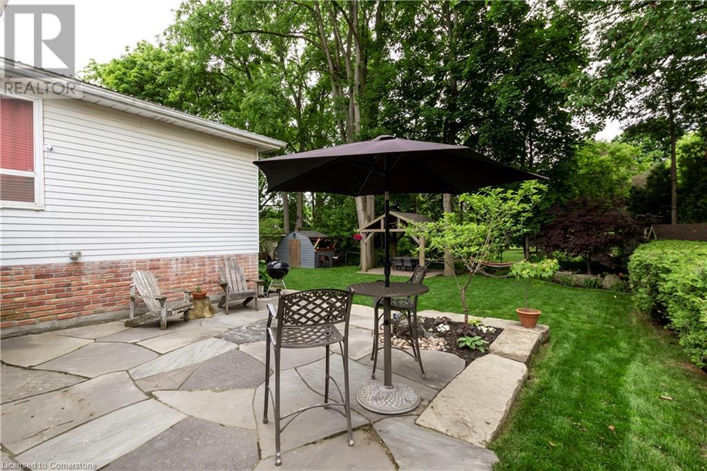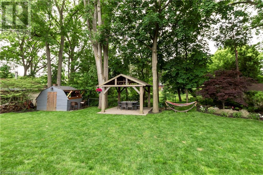 Wonderful raised ranch, located on a quiet street (dead end) in the heart of Aldershot. Walkable to numerous amenities, including shopping, restaurants, schools, and public transit. Leave your car at home and walk down the street (5 minutes) to the Aldershot GO station! Beautifully landscaped front and back yards, to enjoy. Large backyard deck (2023), with oversized flagstones. Large covered dining pavilion and unique shed for your social gatherings. Wood-burning fireplace in the recreation room. Electric fireplace in the living room. Hardwood floors in the living and dining rooms. Laminate wood floors in the bedrooms. metal roof (2019). Air conditioner (2022). Furnace (approx 10 years old). Explore what Aldershot Village can offer you and your family. (id:55009)