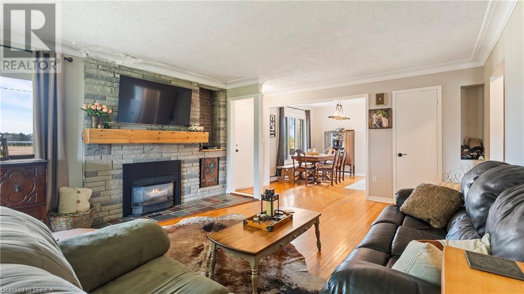 Discover everything that country living has to offer as you set foot onto this beautiful 2 acre property, featuring a spacious 3-bedroom bungalow with an oversized 2 car garage & new metal roof. The possibilities & opportunities are endless throughout this 330 ft X 264 ft lot. The family home presents a large kitchen with heaps of counterspace, storage & convenient access to the garage. Just beyond the kitchen you will find the open concept dining & living spaces, showcasing original hardwood floors and touches of rustic charm. The living room offers a beautiful gas fireplace and access to the bright & airy 3-season sunroom. 3 great sized bedrooms are found down the private hallway, all featuring great natural light and a gorgeous view of the property. The main bathroom is currently undergoing renovation and will be completed with new countertops & trim. As you head to the mostly-finished lower level, you will notice plenty of flex space for a home gym, office or playroom, on top of a great newly-renovated recreational area. The expansive utility area offers tons of storage and a great laundry space. There are also laundry hook ups off of the kitchen, should you decide to finish this section of the basement for even more living space. Rounding off the property is a large 40' x 10' workshop outfitted with hydro & single garage door - the perfect space for all of your toys and hobbies. Spend your evenings and weekends outside by the fire pit, playing horse shoes and enjoying the fresh country air. Minutes from all of the wonderful amenities that Norfolk County offers, this property & all of its beautiful views are sure to impress. Contact your Realtor to book a private viewing. (id:55009)