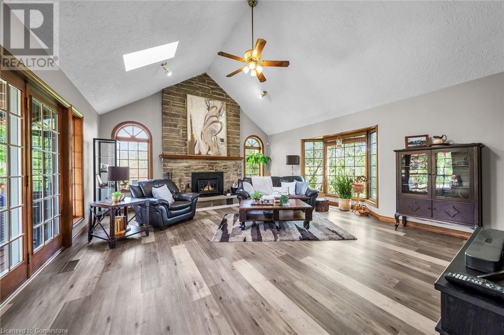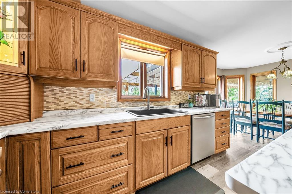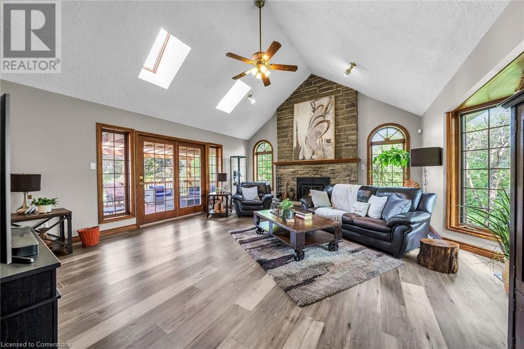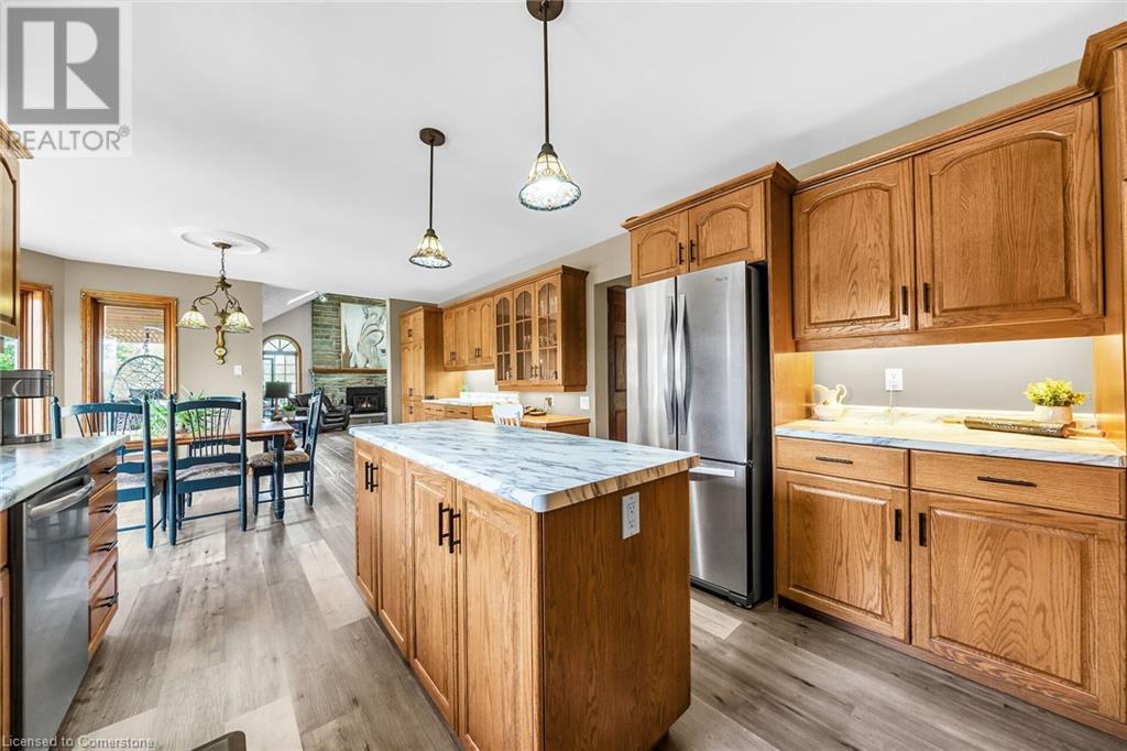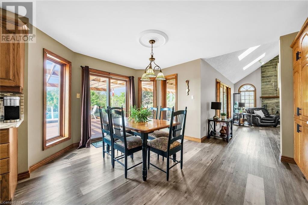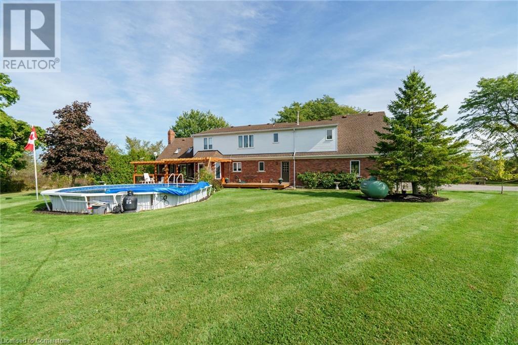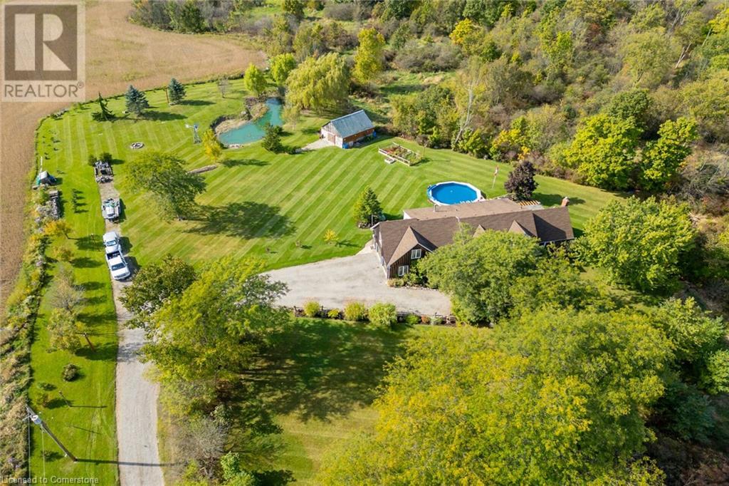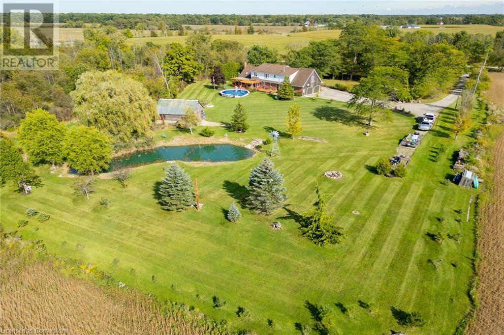 Discover an authentic “Country Paradise” in beautiful West Lincoln - a picturesque area situated in Niagara Region’s southern tier offering close proximity to award winning Wineries & quaint destination Towns & Villages dotting Lake Ontario's coast. 20-30 min commute to Hamilton, Grimsby & QEW - central to Binbrook & Smithville. Incs 2.98 ac rural parcel overlooking acres of rolling farm land hidden naturally from paved secondary road by mature trees & lush foliage accessed by slow winding driveway. Positioned majestically on elevated lot is impressive 1990 built 2 storey home introducing 2538sf of tastefully presented living area, 1263sf finished basement incs 2 staircase entries (in-law possibilities), 480sf att/heated 2.5 car garage w/lower level staircase to rustic multi-purpose building. Stunning Great room showcases main floor boasting floor/ceiling wood burning stone fireplace, dramatic cathedral ceilings accented w/skylights & garden door WO to 770sf entertainment deck covered w/stylish pergola - leads to 24ft on-ground pool offering new liner & filter in 2024. Continues to updated EI oak kitchen sporting convenient island augmented w/countertops-2024 incs full range of newer SS appliances & dinette w/patio door deck WO - flows to defined dining room, 2pc bath & versatile laundry room ftrs both garage & outdoor access. Unique, functional family room highlights spacious upper level incs lavish primary suite enjoying renovated 3pc en-suite & large walk-in closet, 2 additional roomy bedrooms, 5pc main bath plus 2 separate staircase entries. Spacious hi/dry lower level ftrs rec/family room, 4th bedroom (used as home gym), workshop area, cold room & multiple utility/storage rooms. Extras - new flooring-2024,6000 gal water cistern, supplementary drilled well-2011, p/g furnace/AC-2012, p/g water heater-2012, roof-2012, c/vac, 200 amp hydro, stocked pond w/waterfall (fed by well), alarm system & tax rebate (wetland incentive program). Rural Living - at it’s finest! (id:55009)