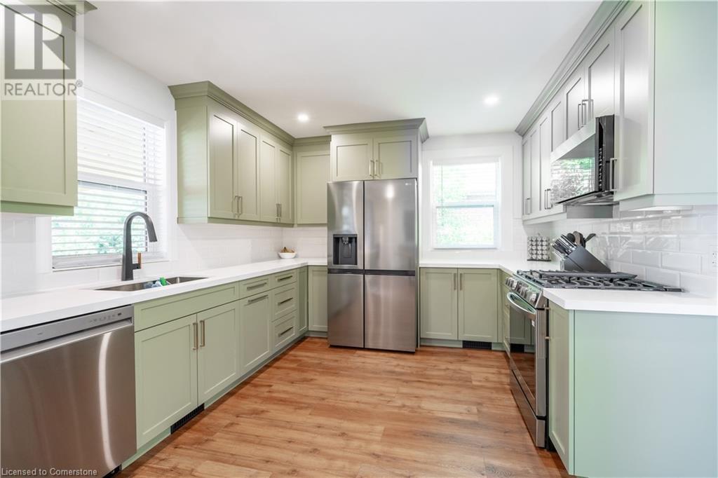 Welcome to 1040 Cedarwood Place, located in Burlington's highly desirable Aldershot area! Renovated from top to bottom, this 2+1-bedroom, 3-bath home is perfect for any homeowner. Situated on a rare 1/4 ACRE lot with mature trees, this property seamlessly blends elegance with modern comfort. The main floor features an open-concept living and dining area that flows into a chef’s kitchen, ideal for entertaining. The second level offers 2 bedrooms and a stylish 4-piece bathroom. The lower-level features a contemporary 1-bedroom, 1-bath in-law suite with a full kitchen and laundry. The newly landscaped yard is perfect for entertaining guests, complete with interlocking pathways leading to a fully renovated double detached garage. With ample parking and a spacious yard, this property offers versatile homeownership options. Whether you're looking to buy for personal use, live in one unit and rent the other, 1040 Cedarwood Place has much to offer. Also offered; 1036 Cedarwood. EXTRAS: Full home renovation (2023), New Plumbing (2023), New Electrical (2023), All new appliances (2023), All new Landscape/Harbscape (2023), Finished + insulated double garage (2023), and so much more. (id:55009)