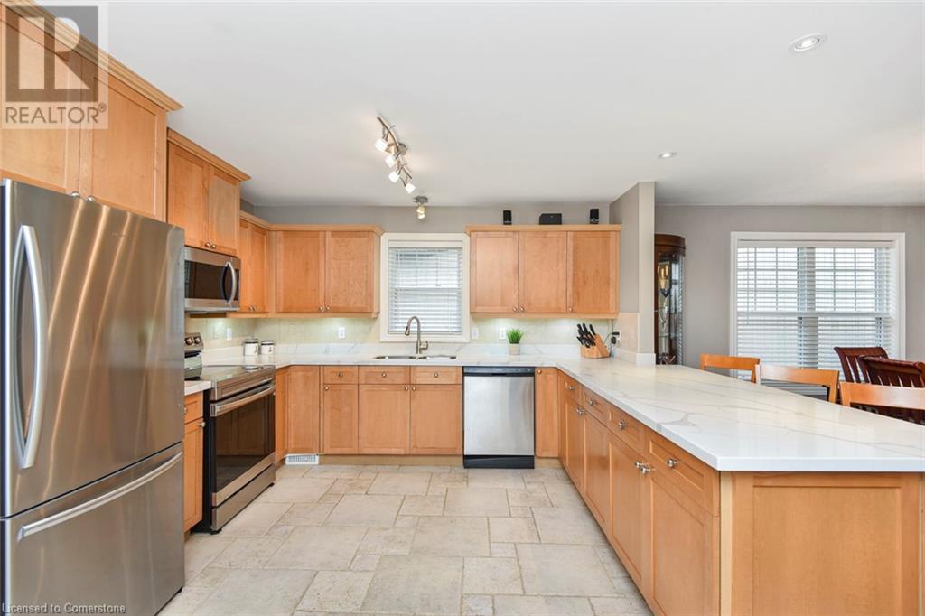 Welcome to 1060 Beach Blvd, where luxurious lakefront living awaits. This remarkable home offers panoramic views of Lake Ontario from the front porch and peaceful bay vistas from the back deck. With nearly 2800 square feet of living space, 4 bedrooms, and 2 full baths, it provides ample room for relaxation and entertainment. The walk-in level is adaptable, making it ideal for an in-law or teen suite with its separate access. Delight in the custom finishes, including new quartz countertops, premium stainless steel appliances, and elegant travertine and engineered hardwood floors. Step out onto the upper deck to enjoy the serene surroundings. The large insulated double garage features a workshop, while the beautifully landscaped yards boast a commercial-grade paved driveway, two deck areas, and full lawn irrigation. Hosting guests is effortless with ample parking available. Conveniently located minutes away from dining, Lakeland pool, bike paths, shops, and mini-golf, with easy access to Burlington, Stoney Creek, and Hamilton via the QEW and 403. Don't miss out on the opportunity to make this breathtaking home yours—schedule a viewing today! (id:55009)