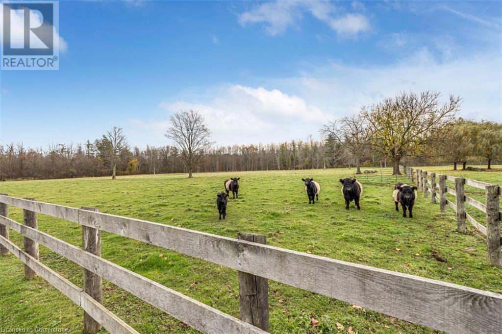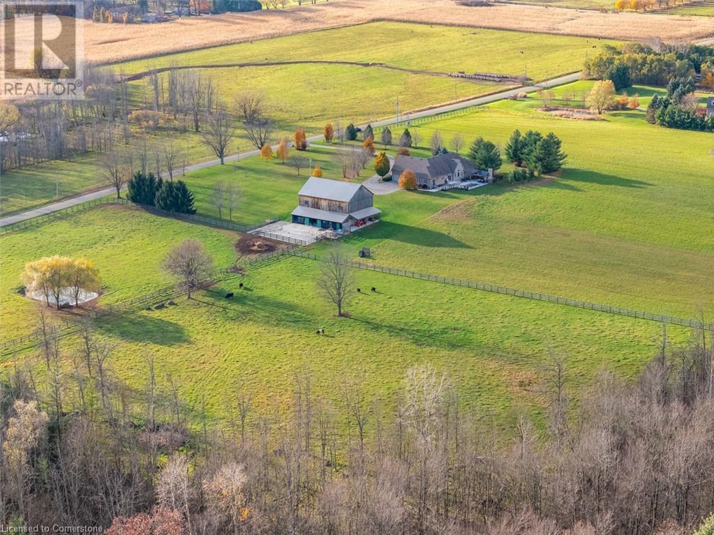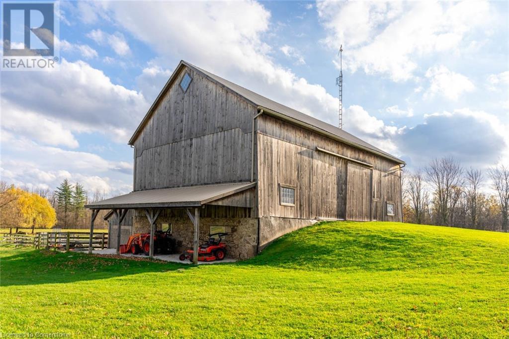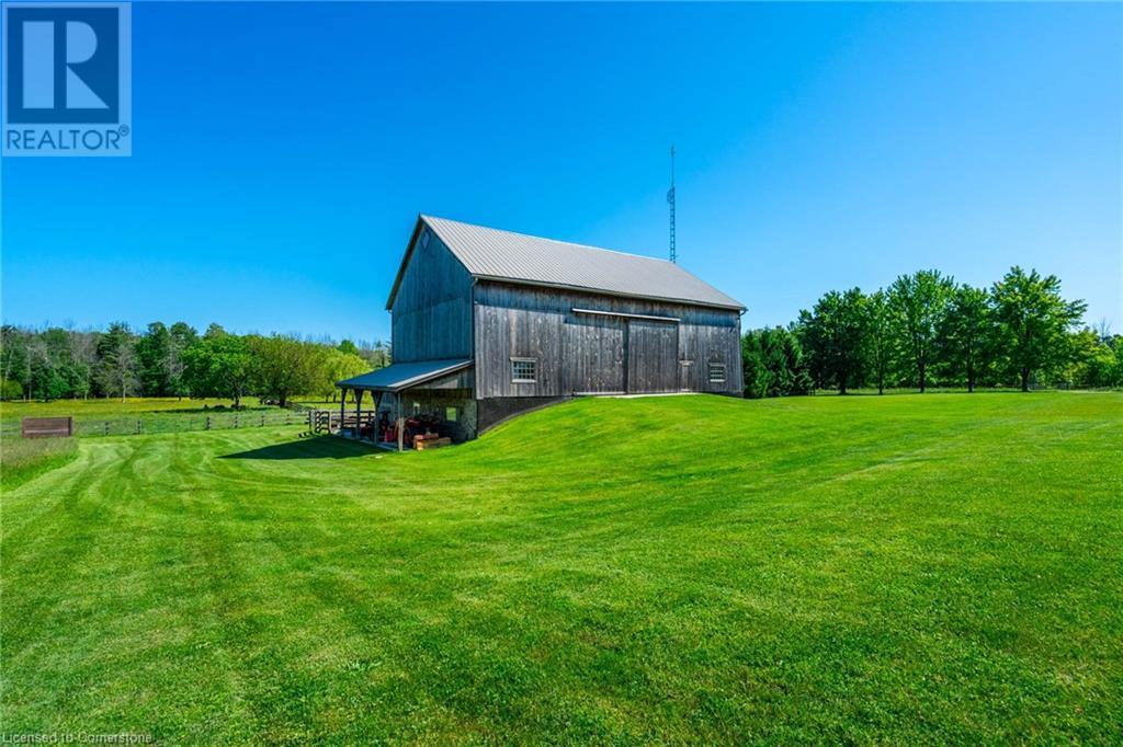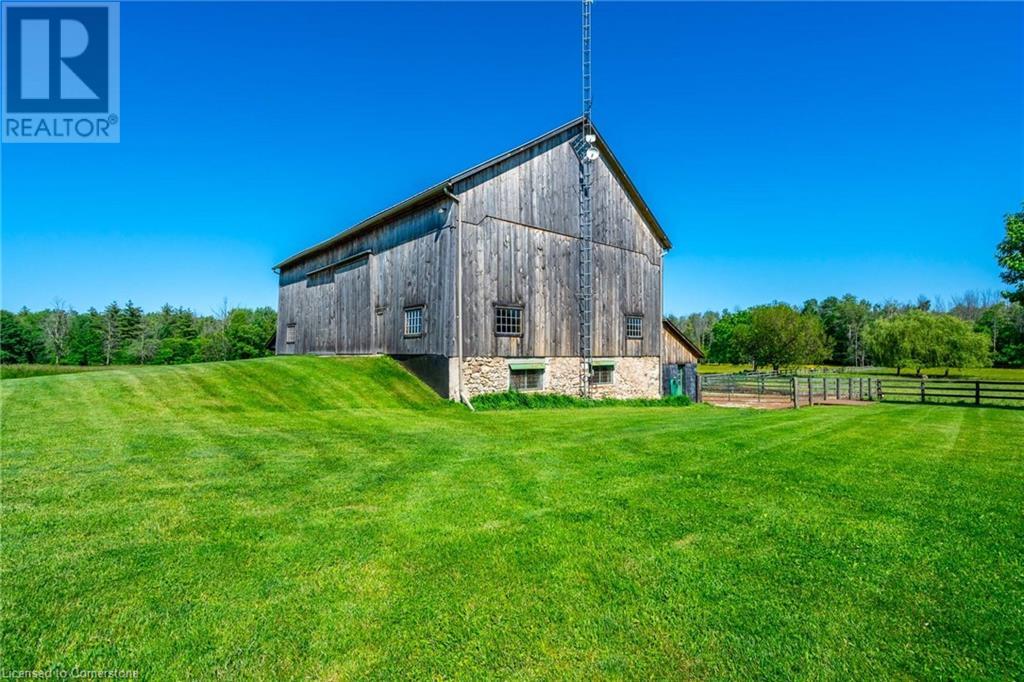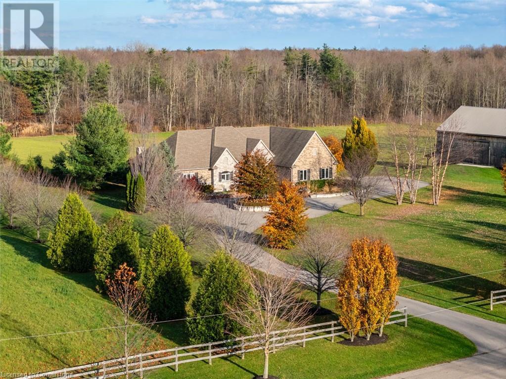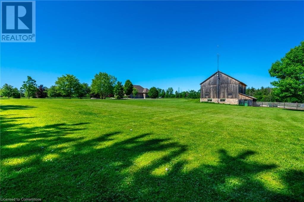 The perfect hobby farm does exist, and you’ll find it right at 1068 Wyatt Road in a prime east Flamborough locale. Here, you have the best of both worlds – a postcard worthy setting on a quiet country road yet just minutes to town and close to major highways. This gorgeous 27-acre parcel offers a true rare package – a custom executive bungalow, well-maintained barn, fenced paddocks, bush and a pond. Step inside the 2,800 square foot home, and you’ll immediately notice the private, stunning views from every side. The open concept floor plan offers large principal rooms with the details that luxury commands – soaring 9’ ceilings, in wall-sound system, crown molding, and engineered hardwood flooring. The kitchen is the hub of the home, with quartz counters, heated floors, a six burner Wolf gas stove and access to the study. The oversized primary bedroom has private views of the expansive property, and is complete with a walk in closet and large 5 piece bathroom – with a soaker tub and heated floors! The two secondary bedrooms are generous-sized and share a jack and jill bathroom. The fully finished lower level has two additional bedrooms, a full bathroom with steam shower and a second full kitchen. It also has a separate entrance through garage. Looking for peace and privacy – it has it all! Don’t be TOO LATE*! *REG TM. RSA. (id:55009)