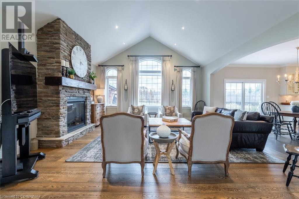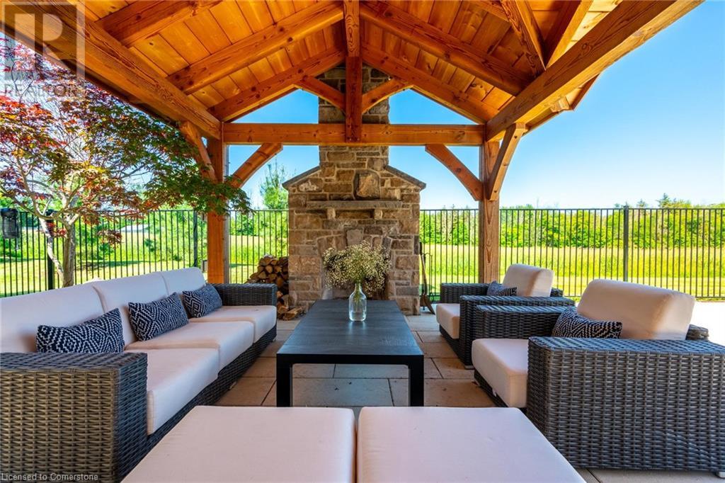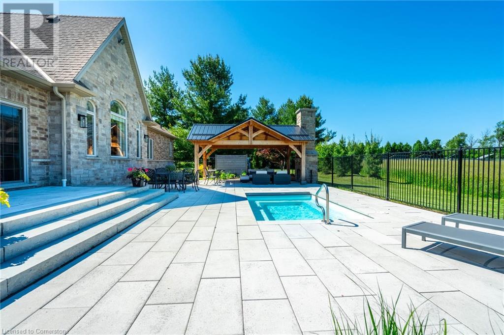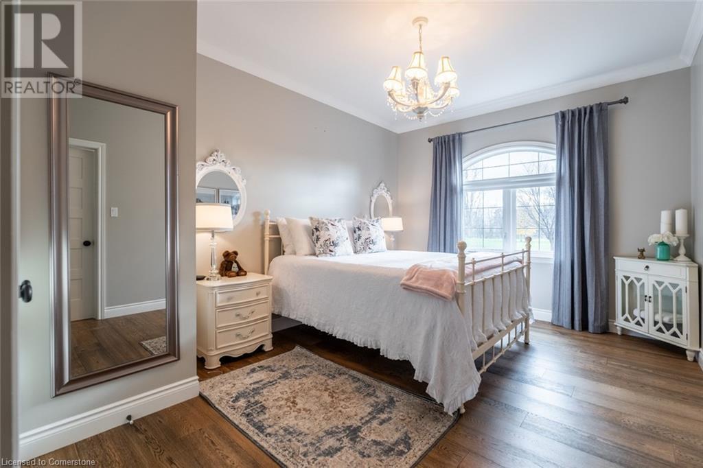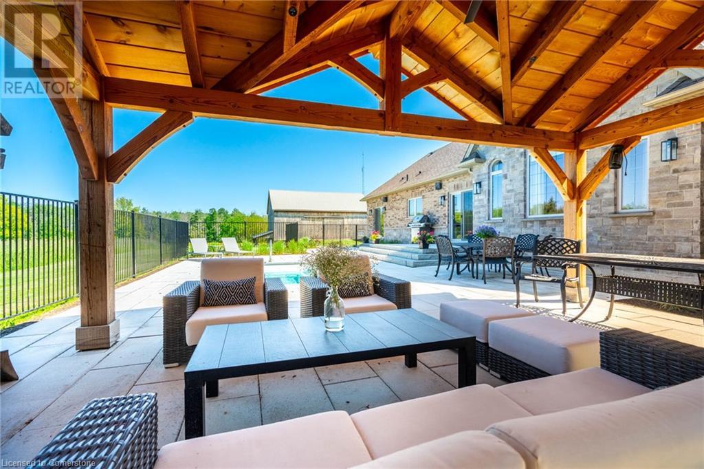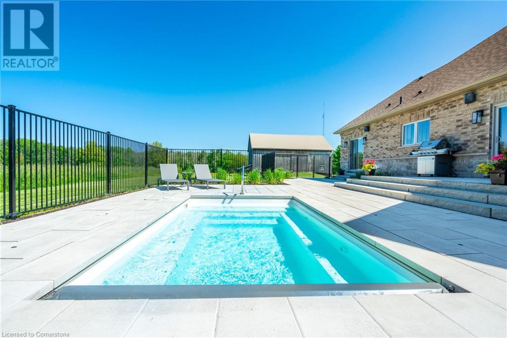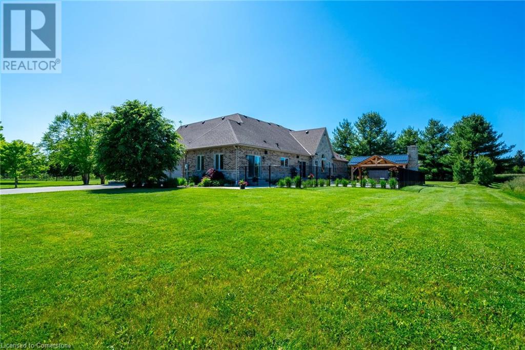 The perfect hobby farm does exist, and you’ll find it right at 1068 Wyatt Road in a prime east Flamborough locale. Here, you have the best of both worlds – a postcard worthy setting on a quiet country road yet just minutes to town and close to major highways. This gorgeous 27-acre parcel offers a true rare package – a custom executive bungalow, well-maintained barn, fenced paddocks, bush and a pond. Step inside the 2,800 square foot home, and you’ll immediately notice the private, stunning views from every side. The open concept floor plan offers large principal rooms with the details that luxury commands – soaring 9’ ceilings, in wall-sound system, crown molding, and engineered hardwood flooring. The kitchen is the hub of the home, with quartz counters, heated floors, a six burner Wolf gas stove and access to the study. The oversized primary bedroom has private views of the expansive property, and is complete with a walk in closet and large 5 piece bathroom – with a soaker tub and heated floors! The two secondary bedrooms are generous-sized and share a jack and jill bathroom. The fully finished lower level has two additional bedrooms, a full bathroom with steam shower and a second full kitchen. It also has a separate entrance through garage. Looking for peace and privacy – it has it all! Don’t be TOO LATE*! *REG TM. RSA. (id:55009)