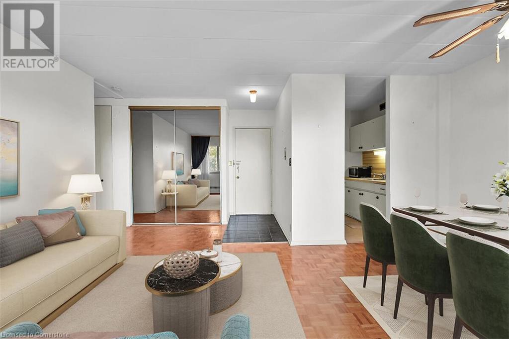 $281 MonthlyWelcome to Hillview Terrace Apartments Cooperative located in the Corktown Neighbourhood! Walking distance to the shops and restaurants of James St S, Augusta St, John St S. North facing views. This is an original owner Estate Sale being sold as is. The unit is 597' including the enclosed balcony. One owned covered parking spot included only suitable for a compact car. Includes storage locker. Laundry hookups in the apartment. Shared laundry in the basement at a low monthly fee of $10.00. $25.00 per month for garage fee. $281 per month for the unit fee. Traditional financing is not available for a cooperative style building. Cannot be purchased for rental purposes, must be owner occupied. No Pets. Subject to Board approval. Must have credit check and references available. (id:55009)
