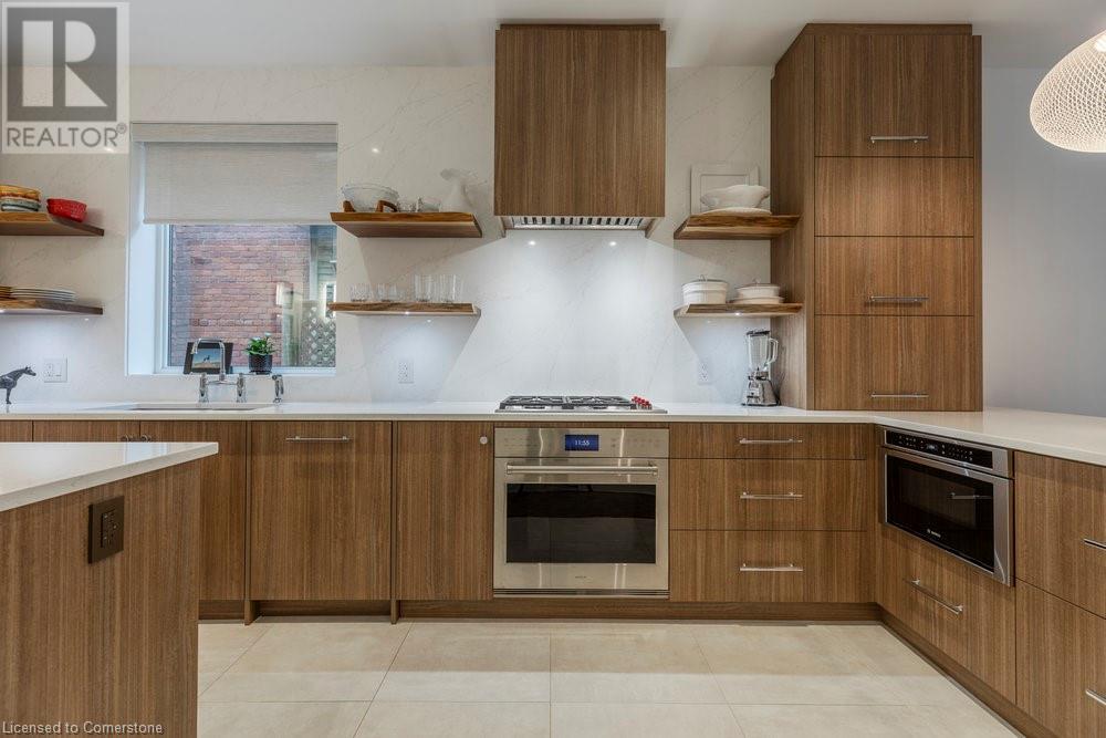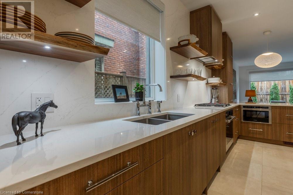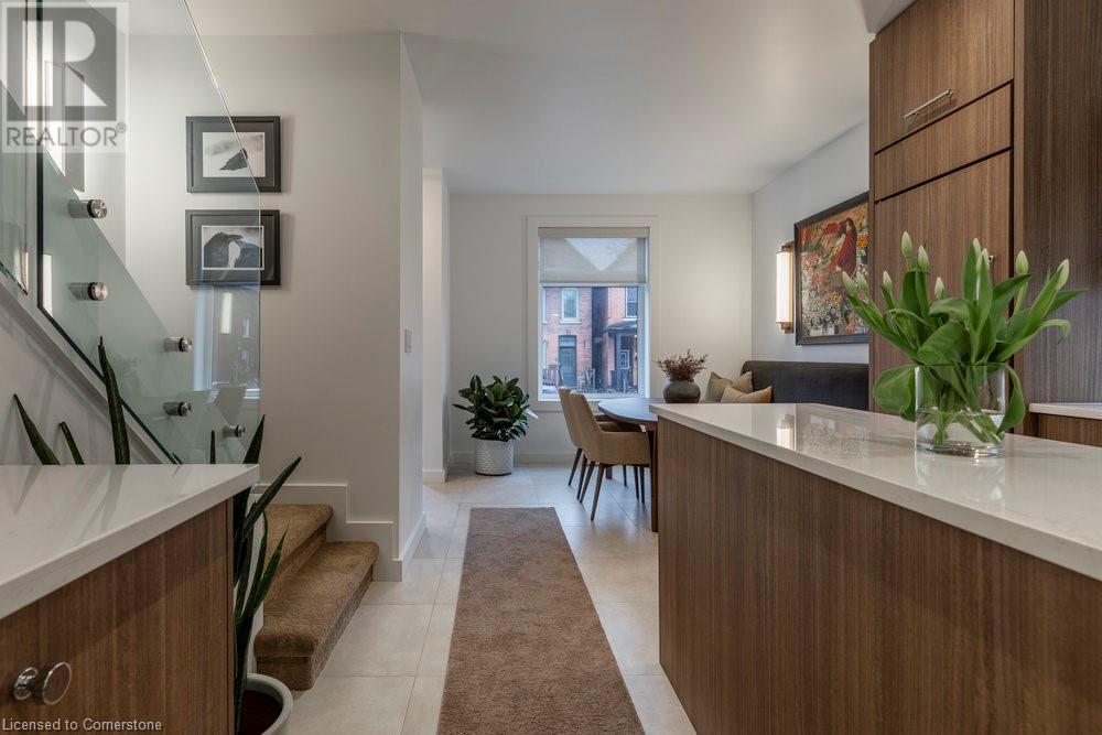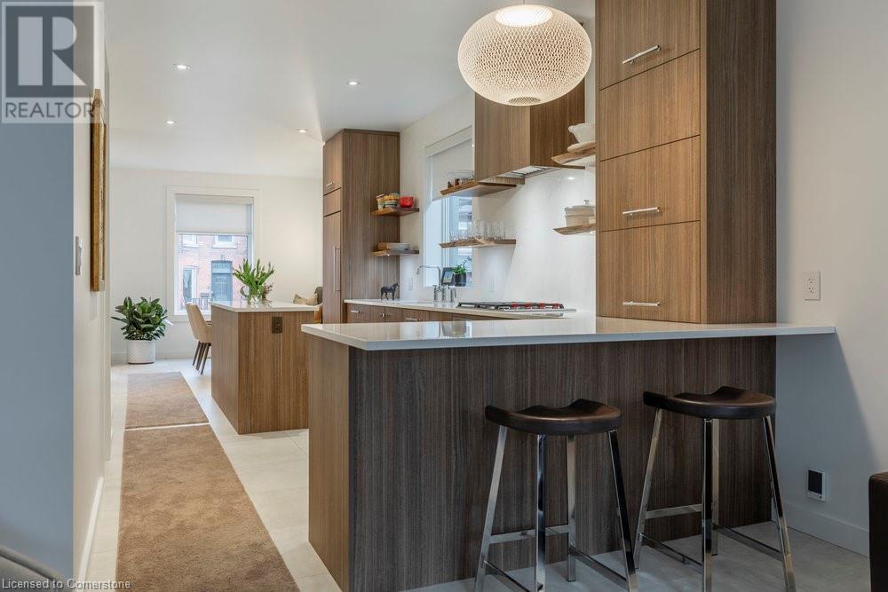 Situated amongst century-old homes within the Kirkendall South community, this 1902 house has been fully redesigned and reconstructed with high end finishes throughout. The home boasts a brand new custom, contemporary interior with a main floor addition for extra living space. A new stucco exterior clad over the original double brick gives the house a fresh new modern look. The house is approximately 2000 sq ft above grade with open plan living on the main floor providing an excellent setting for entertaining. The dining area with a custom banquette extends to a galley style kitchen which flows through to the living area to cozy up to on those cooler days and evenings. On the 2nd floor there are 2 bedrooms which share a 5-piece bathroom plus a finished loft space on the 3rd floor with a 3-piece bathroom. Every inch of this home has been thoughtfully designed and finished. All exterior hardscape and softscape is new including a custom iron front railing and side yard gate. The house is steps from Locke Street shops and restaurants, close to hiking trails, stair climbing, golf and much more to keep you busy. Schools and amenities within close proximity. Hwy 403 access is minutes away. This home is turnkey waiting for you to move in and enjoy living in your new neighbourhood! (id:55009)