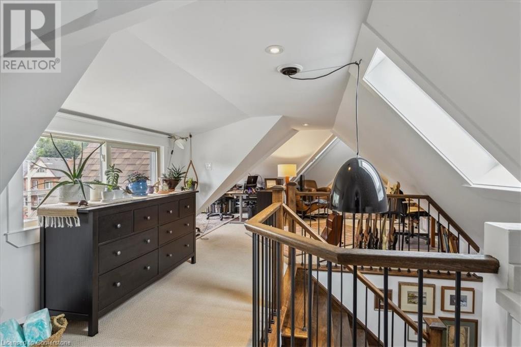 This is a truly unique and special home that combines the character and beauty of its past with exceptional updates, style and design. It was taken back to the studs in 2016 and updated with new electrical, plumbing, mechanical, insulation, windows, doors, floorings, shingles and more. Living space abounds both indoors and out. The impressive main level includes a custom kitchen with centre island, an inviting nook style living room gas fireplace, dining room with bay window, separate family room and powder room. An exquisitely laid out primary suite provides two separate expansive walk-in closets, a gorgeous ensuite with walk-in shower, stand-alone soaker tub, double sink vanity and cozy sitting area. A second bedroom, with accompanying four piece bathroom, invites guests to enjoy the view through custom picture windows. The full third level includes ample space for a second family room, office and entertainment areas or a third bedroom. Enjoy a relaxing morning coffee on the main level terrace or evening cocktails on the spacious upper level terrace while taking in the gorgeous views over the escarpment. Soaring ceilings, brushed hickory hardwood, tall baseboards, premium finishes, impeccable landscaping and parking for four plus vehicles add to the many features of this outstanding property. The Wentworth stairs and trails are at your doorstep while shops, excellent restaurants, transit and highway access are all within a short distance. (id:55009)