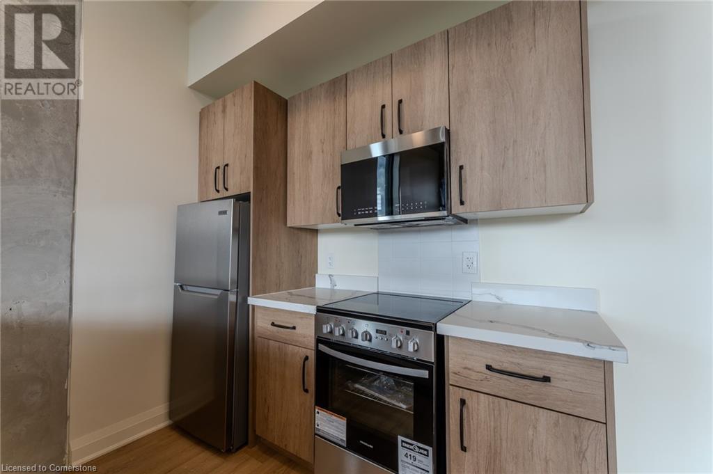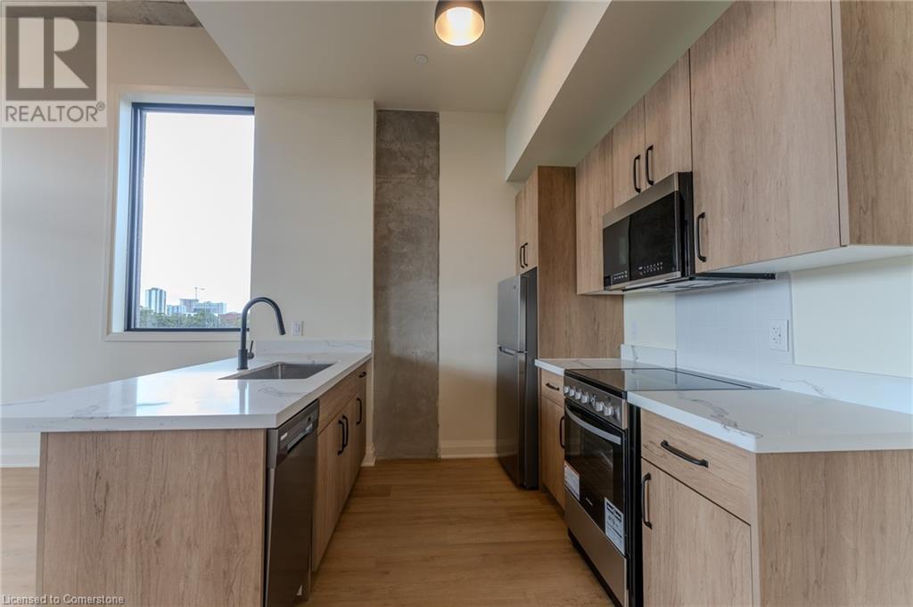 *GET TWO MONTHS OF FREE RENT AND A FREE LOCKER FOR A YEAR ON A 12-MONTH AGREEMENT* Live in the popular James Street North community at the brand new 11 Robert apartment building! This corner unit, known as 'The Cannon' offers North/East views with 535 square feet of living space plus a large balcony! This beautiful never-lived-in unit seamlessly blends contemporary design with top-of-the-line finishes. The kitchen comes fully equipped with stainless steel appliances, quartz countertops, and ample cabinet space—ideal for everyday living and entertaining. Only 28 units in the building total makes for a very quiet living experience, with the city’s best restaurants and shopping at your doorstep. Building features include an elevator, locker storage, bike storage, and Steel City Cycle (fitness club) on the ground floor! (id:55009)