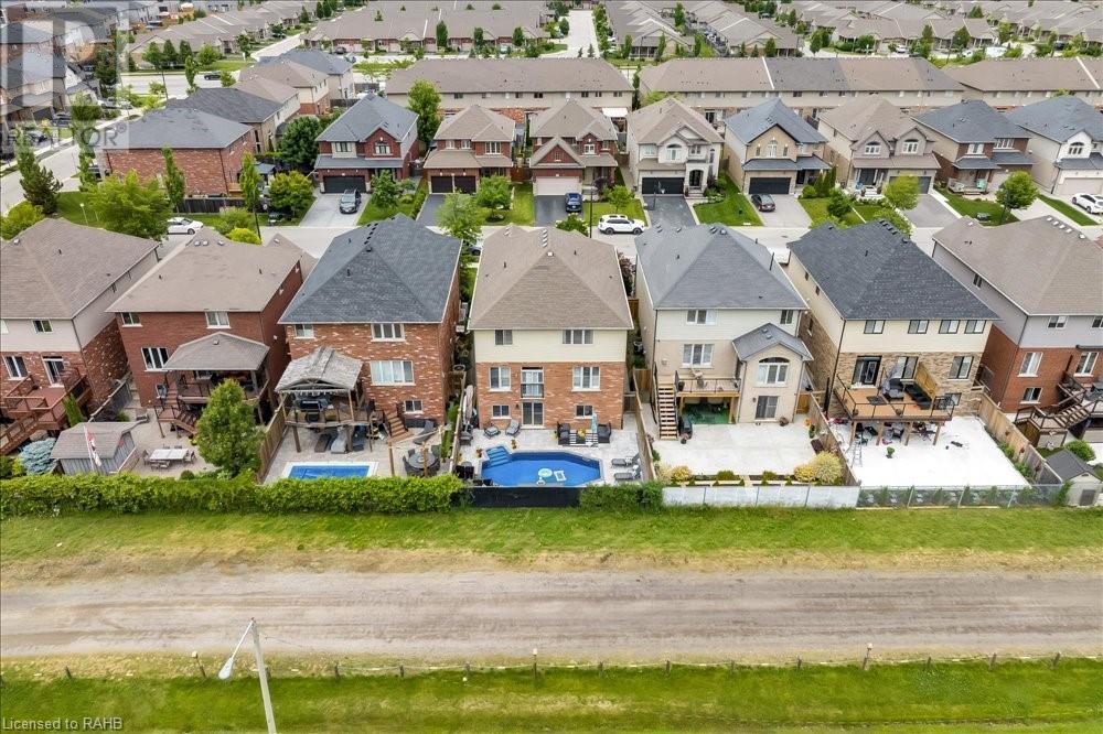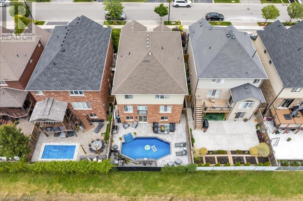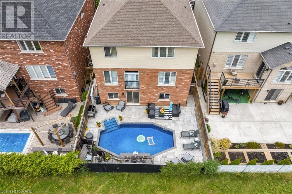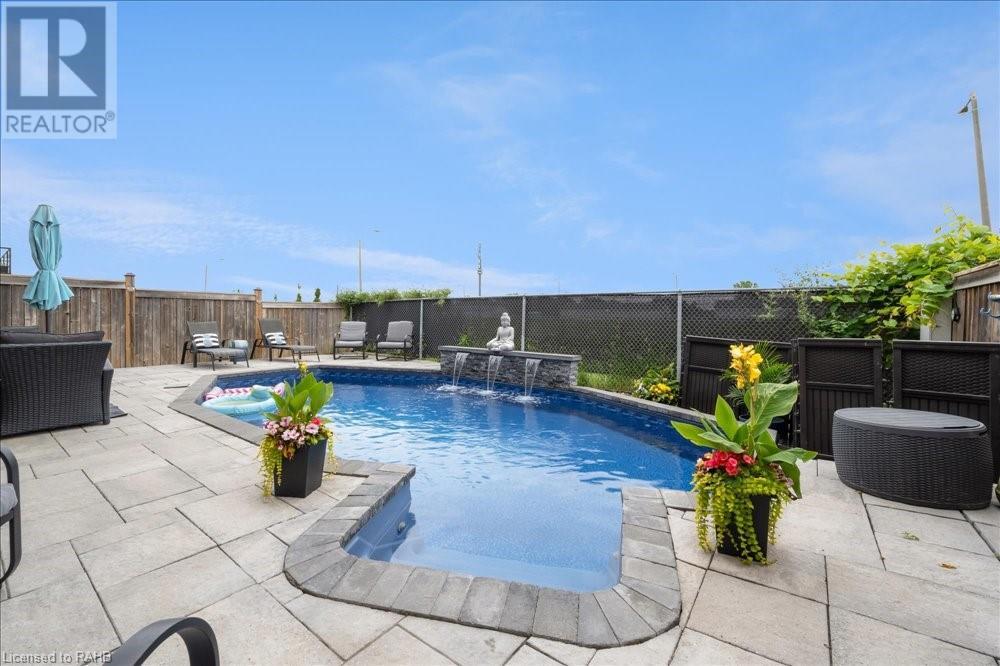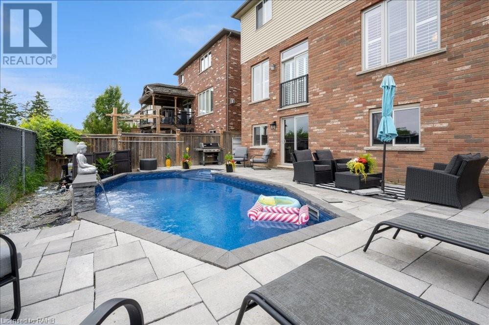 This spectacular home in Binbrook promises to delight. A double-wide stamped concrete drive and beautiful landscape add to the already fabulous curb appeal of this 4-bedroom home with over 3500 sq ft of living space. Walk into the spacious foyer followed by a separate dining room, kitchen, breakfast area, and living room a 2pc bathroom and laundry with garage access complete the main floor. The second level offers large bedrooms and a loft area. The master bedroom has a custom walk-in closet and ensuite. The lowest level is a blank canvas with a walk-out to your very own retreat, featuring an inground pool with a waterfall and lights all controlled by your phone. Backing onto the fairgrounds for added privacy. All this is located in a well-thought-out community filled with schools, parks, recreation and so much more. (id:55009)