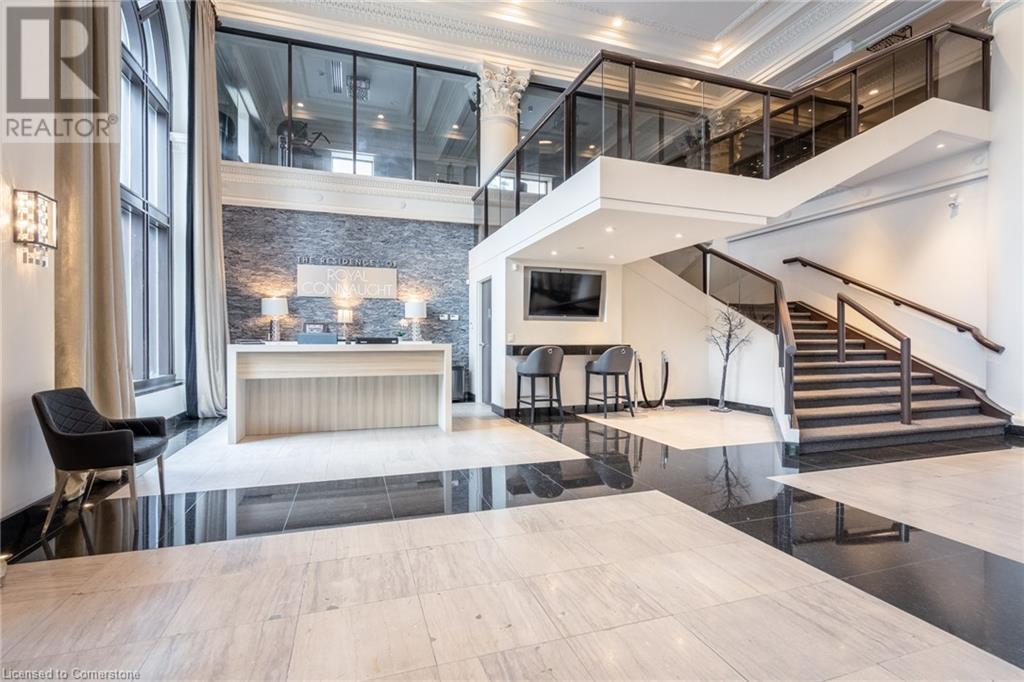 $787.10 MonthlyExperience unparalleled luxury in this exquisite 2-bedroom, 2-bathroom penthouse at the Royal Connaught Residence. Nestled in a prime location, just steps away from vibrant parks, premier shopping, delectable dining, lively bars, and a hospital, and with convenient proximity to McMaster University, this home perfectly blends convenience and sophistication. The penthouse boasts upscale enhancements, soaring ceilings, and stunning two-story windows that flood the space with natural light, creating a warm and inviting ambiance. Indulge in an array of top-notch amenities designed for an elevated lifestyle. Relax and entertain on the sky-deck patio with BBQ facilities, stay active in the fully-equipped gym, and enjoy cinematic experiences in the theater/media room. Host memorable gatherings in the amazing party room, and be welcomed home by the elegant lobby with security guard services for your peace of mind. Discover the epitome of refined living at the Royal Connaught Residence. (id:55009)