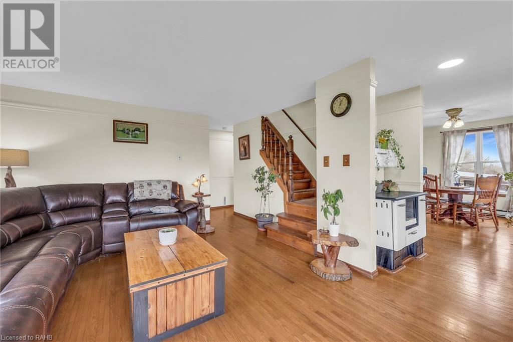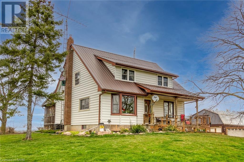 Beautifully Presented, Ideally situated 4 bedroom, 2 bathroom Custom Built 2 storey home on picturesque 2.86 acre lot on sought after Indiana Road E. Ideal hobby or horse farm (formally used for horses) or two family retreat with multiple driveway entrances. Great curb appeal on wide lot with no immediate neighbors, vinyl sided exterior, ample parking, wrap around porch, & perfect entertaining area with covered back deck leading to additionally covered concrete area. Desired 24 x 36 detached garage includes concrete floor, hydro, partially finished upper level loft with spray foam insulation, & 3 lean too for additional storage, workshop, & parking area. The flowing interior layout includes over 2000 sq ft of living space highlighted by eat in kitchen with oak cabinetry, dining area, bright living room, MF bedroom, & 2 pc bathroom. The upper level features 2 spacious bedrooms with ample light from custom dormers. The finished basement includes large rec room, 4th bedroom, laundry room, & storage. Upgrades & features include furnace – 2018, A/C – 2015, electrical panel – 2024, fibre optic internet at the house & natural gas available at the road. Ideal home for all walks of life. Conveniently located close to Cayuga, Binbrook, & easy access to 403, QEW, & GTA. Call today for more information & to Enjoy a viewing of this Perfect Country Package! (id:55009)