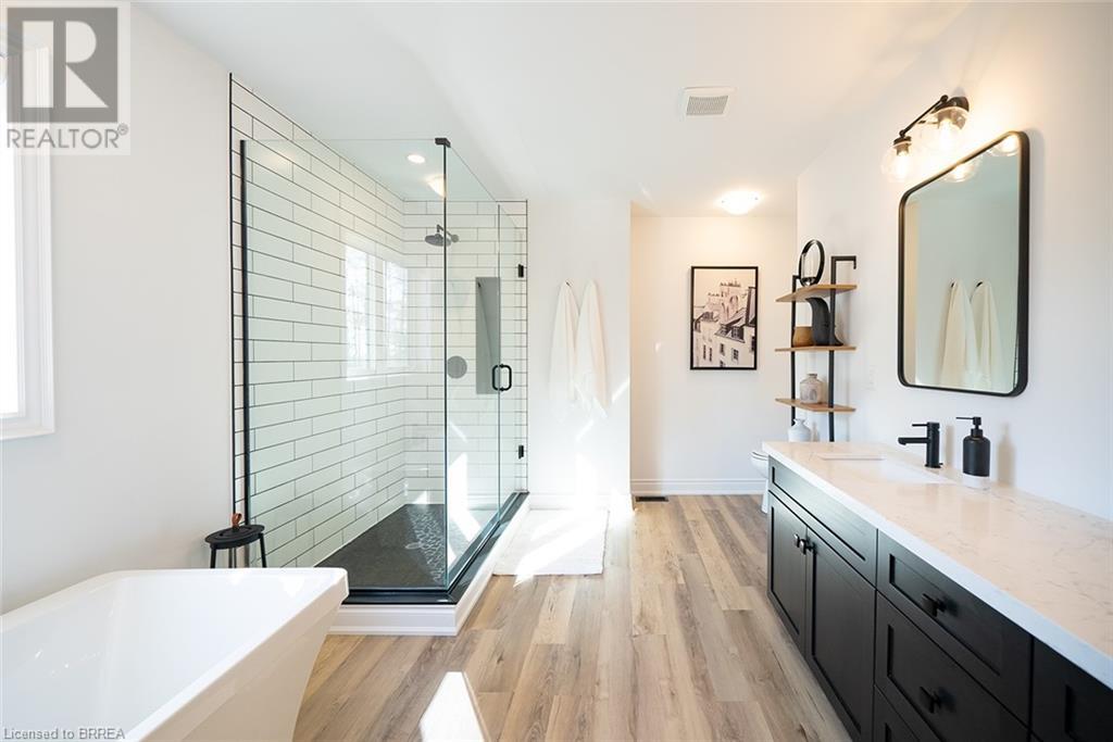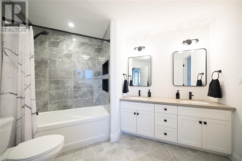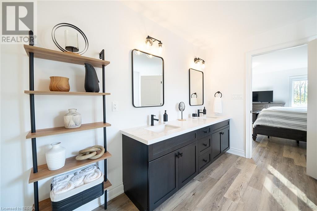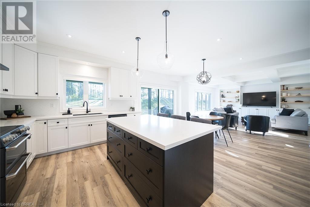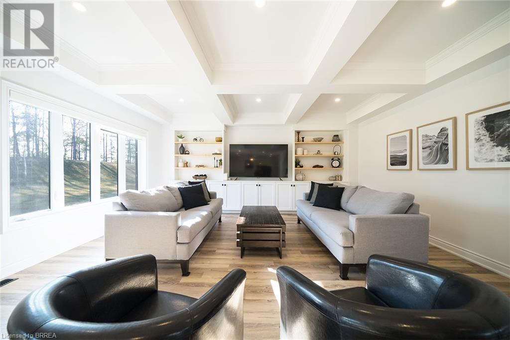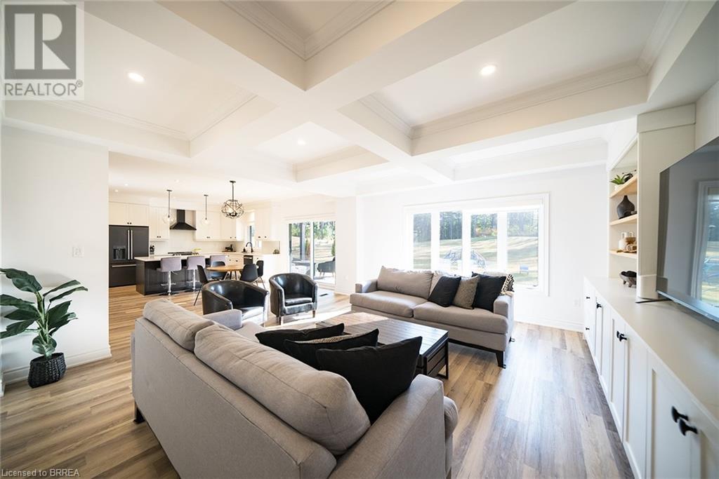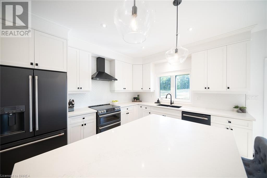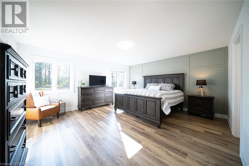 Welcome to your dream home! This spacious 3,300 square foot home offers the perfect blend of comfort and convenience, nestled on a serene half-acre lot right with a lush tree line and no backyard neighbours. Built in 2022 and over $250,000 worth of upgrades this home offers 4+1 bedrooms, 3.5 bathrooms, and a fully finished basement. The main level is bright and open with natural light and high-end finishes. The gourmet kitchen is a chef's dream, featuring an upgraded 6x4 island, extensive drawer and cupboard space, and extended-height cabinets, all topped with quartz countertops. You’ll go through the butler's pantry to the dining room which is perfect for entertaining. The living room is bright and cozy with built-in shelving and stunning coffered ceilings making it the ideal space to unwind. Upstairs you will find four large bedrooms, all with walk-in closets and ensuite privileges. The primary bedroom hosts a stunning ensuite with a full glass shower, stand-one tub and double sinks. The basement is fully finished with 48-inch windows flooding the space with natural light. A large recreation room with built-in shelving and a fifth bedroom complete this level of the home. The real showstopper is the backyard where you can sit and relax on the covered patio enjoying the view. Modern amenities include 200 amp electrical service, exterior pot lights, sleek black finishes and upgraded vinyl flooring throughout the home. Located just minutes from highway access, local parks, and schools, this home offers both tranquillity and accessibility. Don’t miss the chance to make this stunning property your own! (id:55009)