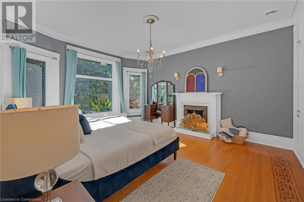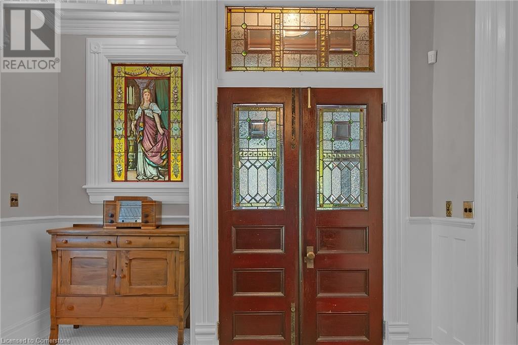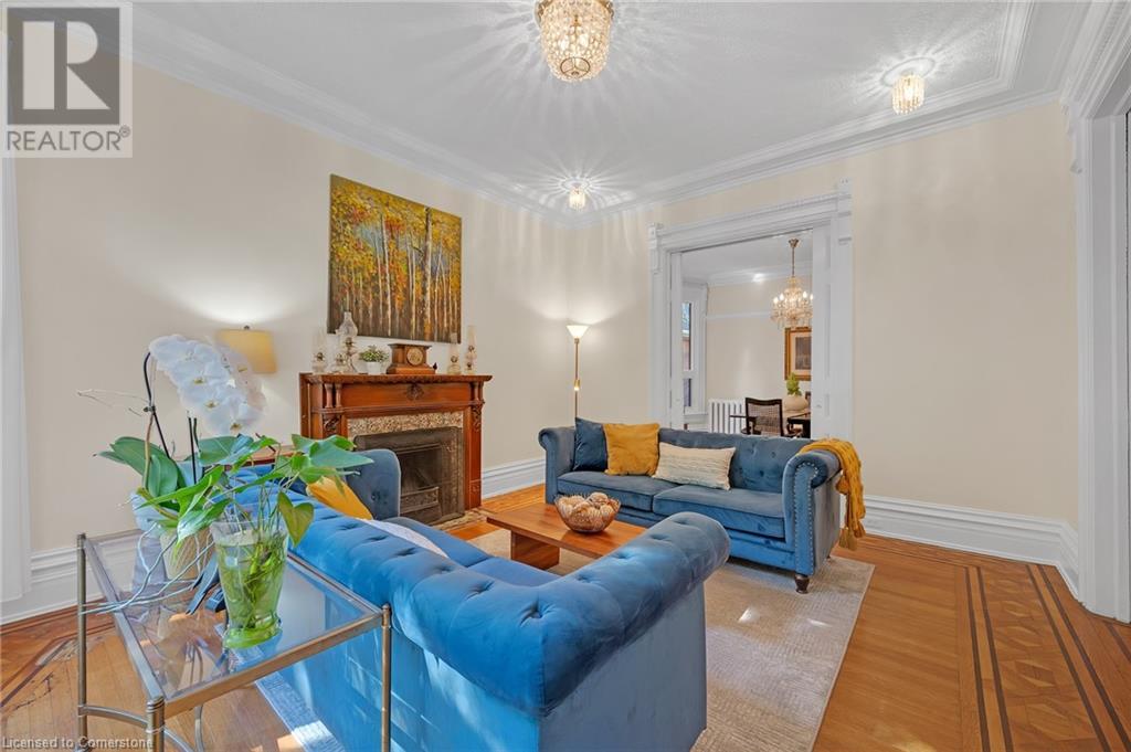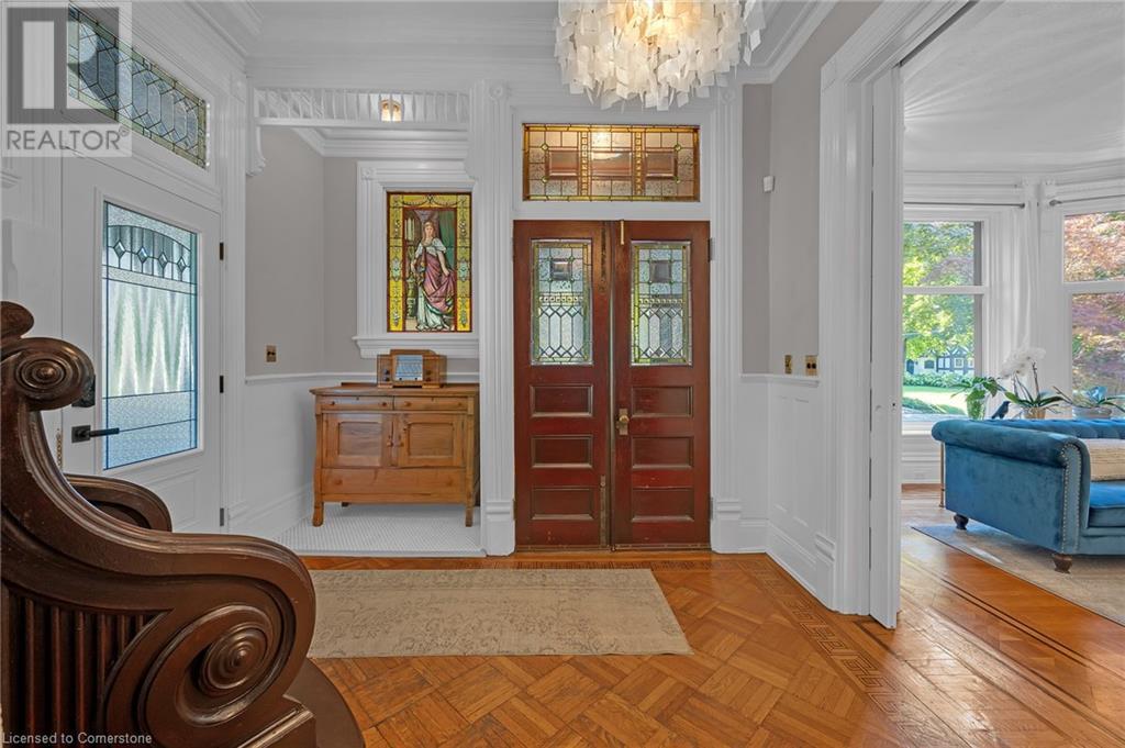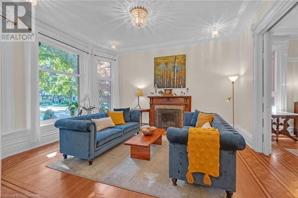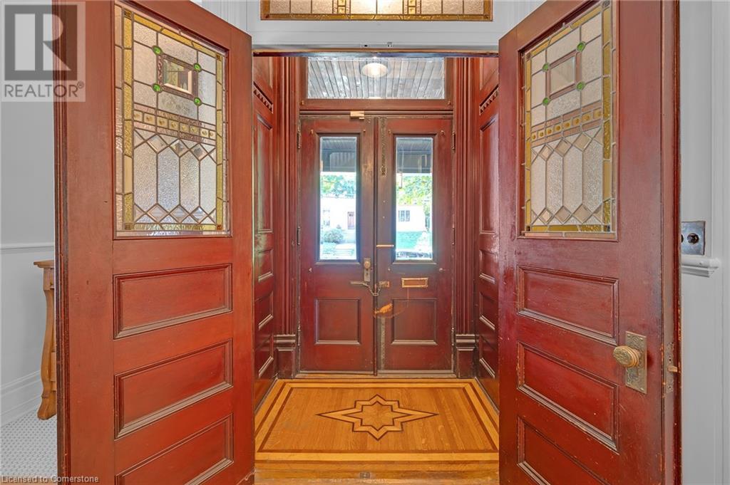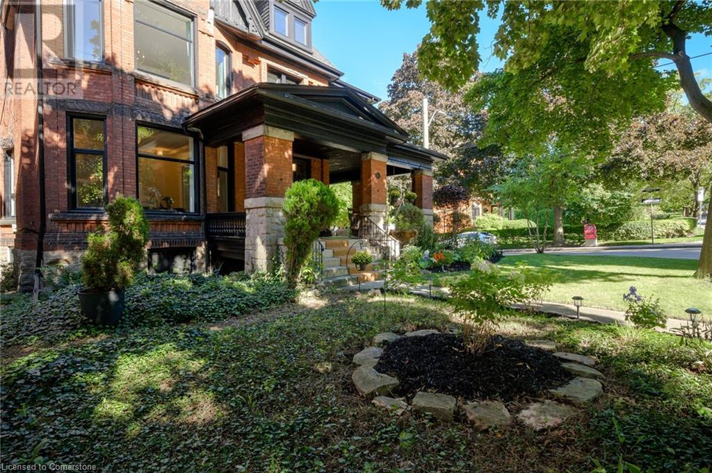 This Timeless, Elegant Residence with exceptional street presence is a remarkable blend of historic architectural design and opulent modern updates. This property is an ideal setting for a family and provides an incredible backdrop for entertaining and gatherings. Beautiful formal & informal living spaces are perfectly balanced for modern living. This stately 5 bedroom residence could easily be used as 7+bedrooms. Situated on a 50’ x 126.33’ corner lot with 2 addresses (also 30 Hilton St) it is a legal duplex currently used for single-family living. Main level features include a grand foyer with original stained glass windows and spectacular wood trim, a formal living room with wood fireplace, a family room with incredible inlay flooring, a formal dining room with original pocket doors, and an eat-in kitchen that walks out to the lush backyard with mature trees. The second level features 4 large bedrooms, laundry room with a walk-out to the upper deck, and 2 bathrooms. The third level features a primary bedroom overlooking the escarpment with built-in cabinetry and a 7-piece ensuite with oversized quartz slab shower, soaker tub, and double marble vanity. Additional highlights include hardwood floors, oversized mouldings, abundant trim-work, pocket doors, and multiple outdoor entertaining spaces. Updates include a high-efficiency Bosch boiler and tankless water heater (2017), central air (2024), windows and door (2023), 200 amp electrical service, and much more! The location is walking distance to Locke Street, parks, and offers easy access to McMaster University, Mohawk College, Hillfield Strathallan College, Hamilton's downtown core, local hospitals, nature trails, and highway connections. Come and find the secret room, hidden staircase, and get lost in the allure of this Grand Durand! Whether you're drawn by its historical charm or its modern conveniences, this residence promises an extraordinary living experience. (id:55009)