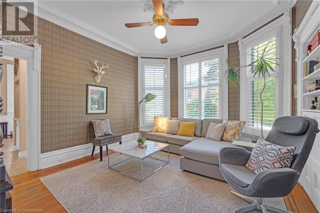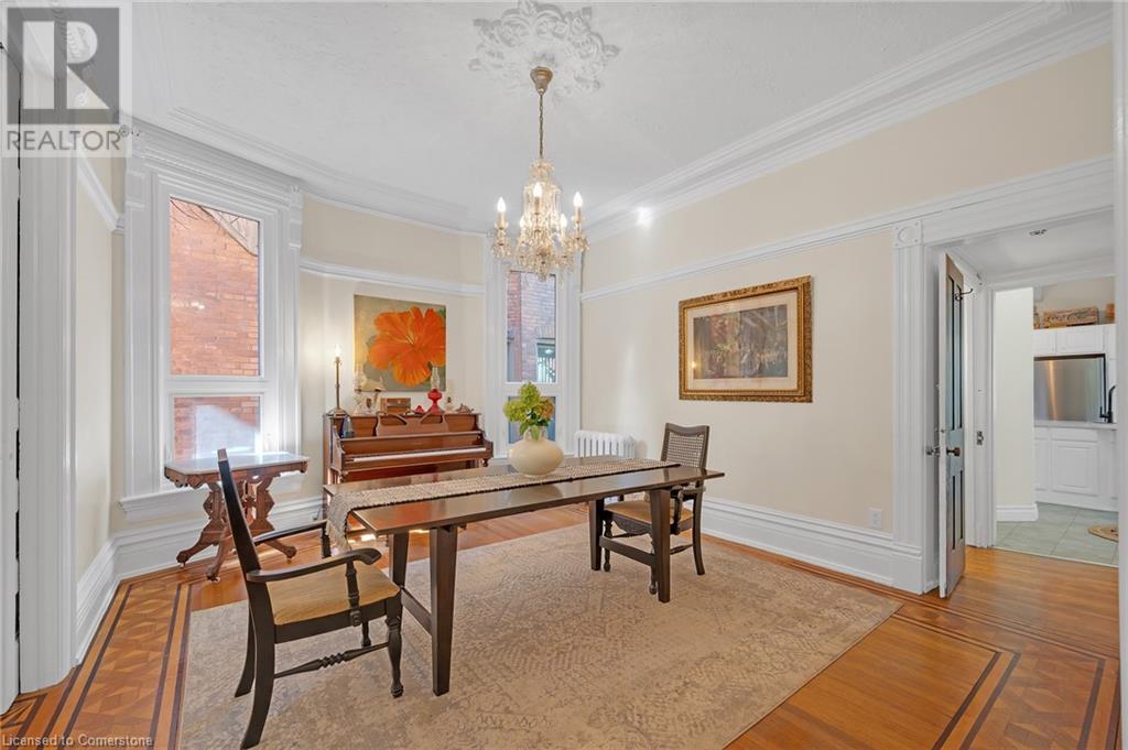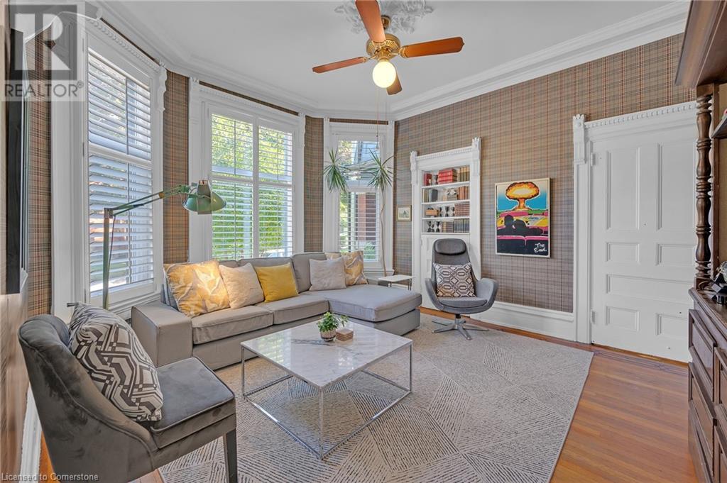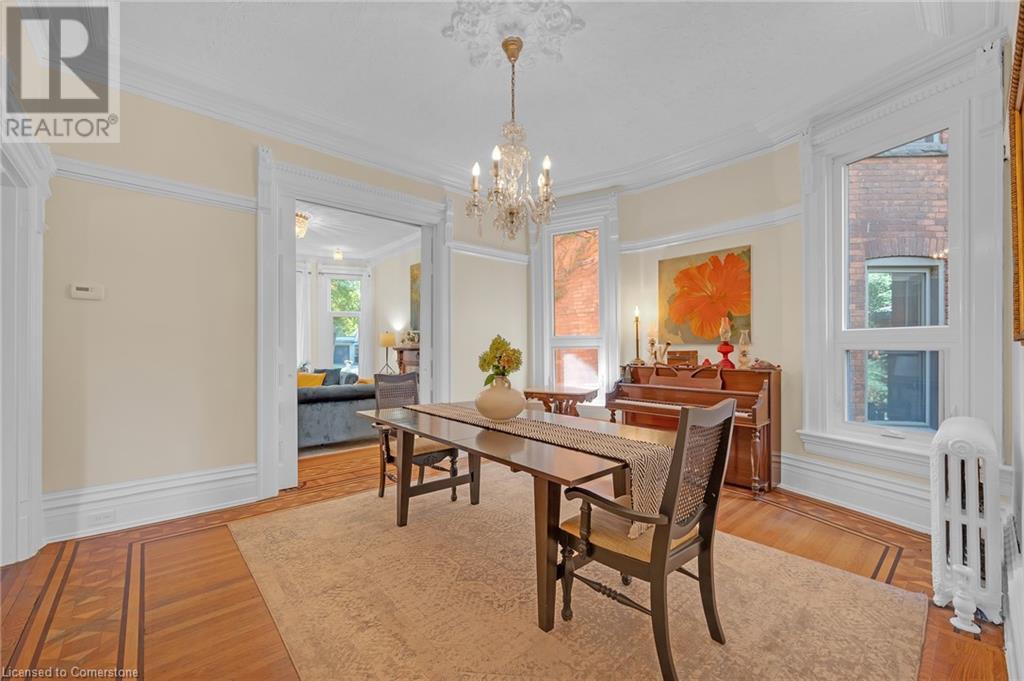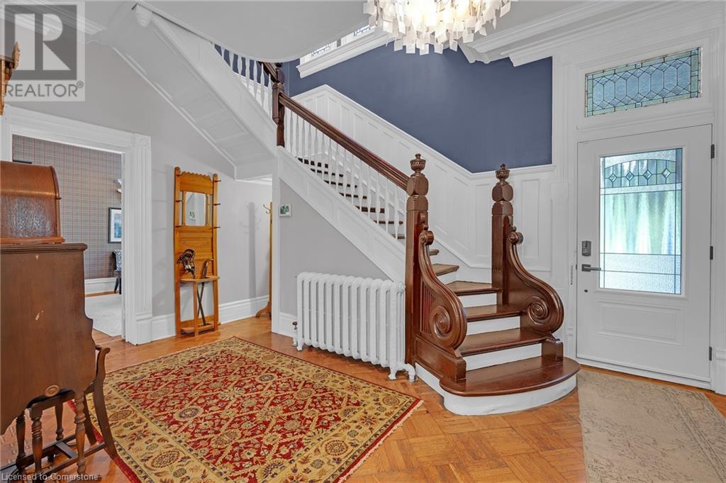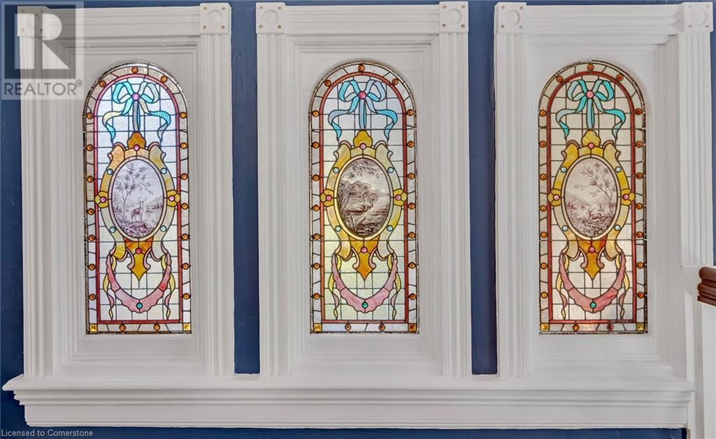 This Timeless, Elegant Residence with exceptional street presence is a remarkable blend of historic architectural design and opulent modern updates. This property is an ideal setting for a family and provides an incredible backdrop for entertaining and gatherings. Beautiful formal & informal living spaces are perfectly balanced for modern living. This stately 5 bedroom residence could easily be used as 7+bedrooms. Situated on a 50’ x 126.33’ corner lot with 2 addresses (also 30 Hilton St) it is a legal duplex currently used for single-family living. Main level features include a grand foyer with original stained glass windows and spectacular wood trim, a formal living room with wood fireplace, a family room with incredible inlay flooring, a formal dining room with original pocket doors, and an eat-in kitchen that walks out to the lush backyard with mature trees. The second level features 4 large bedrooms, laundry room with a walk-out to the upper deck, and 2 bathrooms. The third level features a primary bedroom overlooking the escarpment with built-in cabinetry and a 7-piece ensuite with oversized quartz slab shower, soaker tub, and double marble vanity. Additional highlights include hardwood floors, oversized mouldings, abundant trim-work, pocket doors, and multiple outdoor entertaining spaces. Updates include a high-efficiency Bosch boiler and tankless water heater (2017), central air (2024), windows and door (2023), 200 amp electrical service, and much more! The location is walking distance to Locke Street, parks, and offers easy access to McMaster University, Mohawk College, Hillfield Strathallan College, Hamilton's downtown core, local hospitals, nature trails, and highway connections. Come and find the secret room, hidden staircase, and get lost in the allure of this Grand Durand! Whether you're drawn by its historical charm or its modern conveniences, this residence promises an extraordinary living experience. (id:55009)