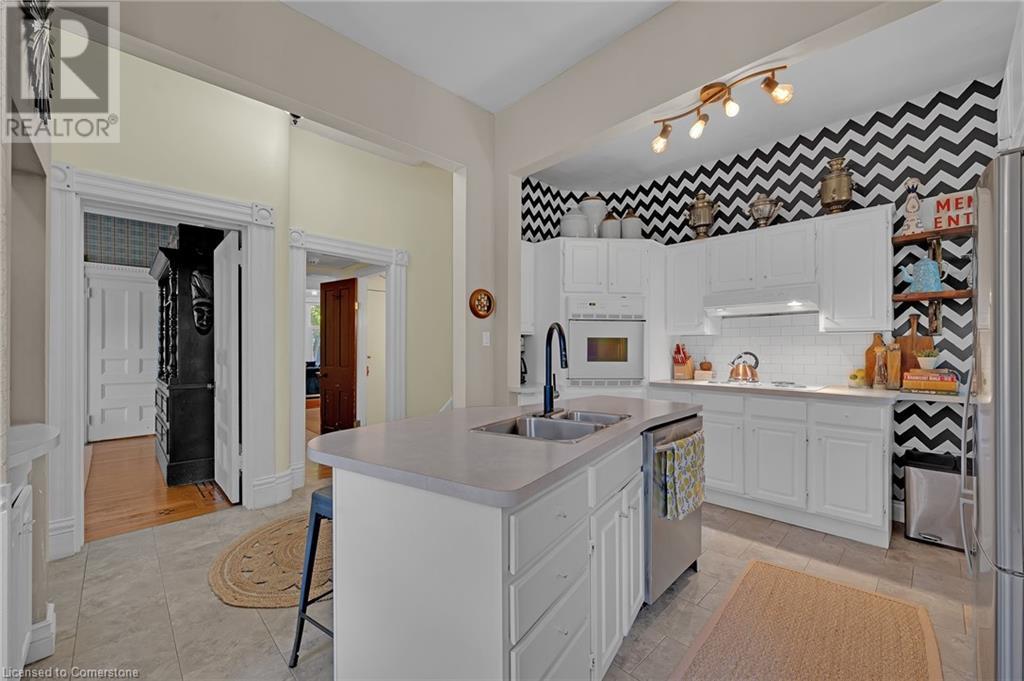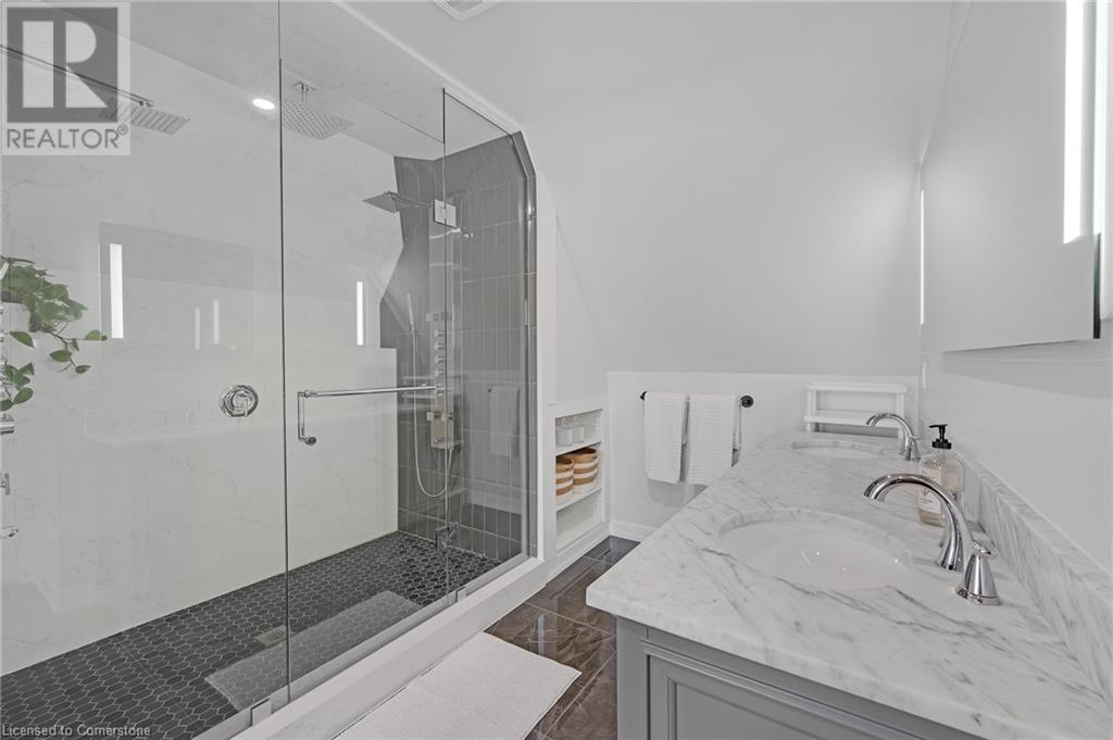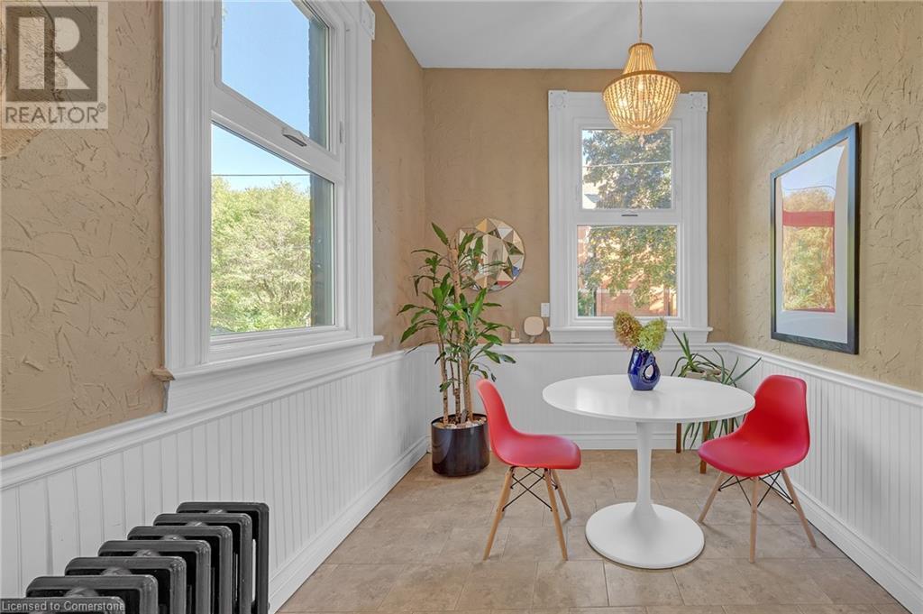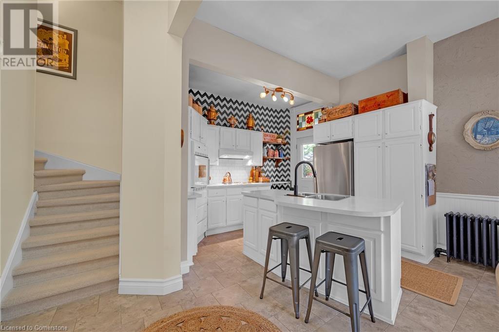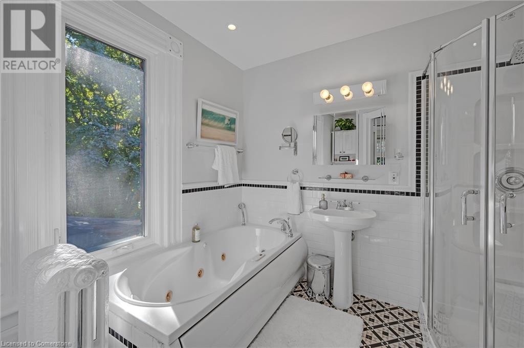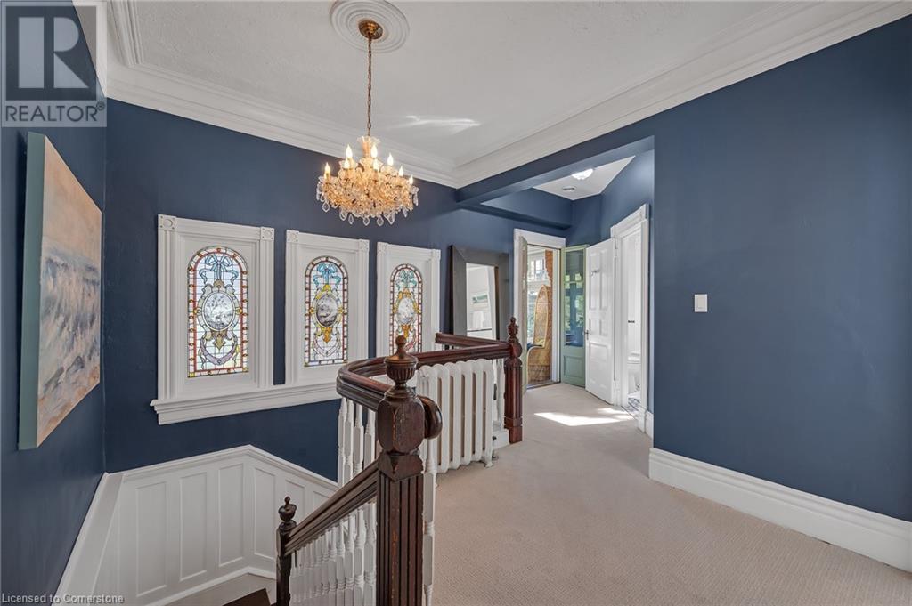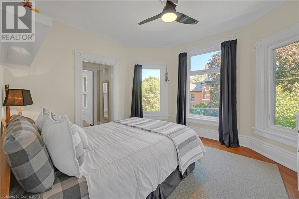 This Timeless, Elegant Residence with exceptional street presence is a remarkable blend of historic architectural design and opulent modern updates. This property is an ideal setting for a family and provides an incredible backdrop for entertaining and gatherings. Beautiful formal & informal living spaces are perfectly balanced for modern living. This stately 5 bedroom residence could easily be used as 7+bedrooms. Situated on a 50’ x 126.33’ corner lot with 2 addresses (also 30 Hilton St) it is a legal duplex currently used for single-family living. Main level features include a grand foyer with original stained glass windows and spectacular wood trim, a formal living room with wood fireplace, a family room with incredible inlay flooring, a formal dining room with original pocket doors, and an eat-in kitchen that walks out to the lush backyard with mature trees. The second level features 4 large bedrooms, laundry room with a walk-out to the upper deck, and 2 bathrooms. The third level features a primary bedroom overlooking the escarpment with built-in cabinetry and a 7-piece ensuite with oversized quartz slab shower, soaker tub, and double marble vanity. Additional highlights include hardwood floors, oversized mouldings, abundant trim-work, pocket doors, and multiple outdoor entertaining spaces. Updates include a high-efficiency Bosch boiler and tankless water heater (2017), central air (2024), windows and door (2023), 200 amp electrical service, and much more! The location is walking distance to Locke Street, parks, and offers easy access to McMaster University, Mohawk College, Hillfield Strathallan College, Hamilton's downtown core, local hospitals, nature trails, and highway connections. Come and find the secret room, hidden staircase, and get lost in the allure of this Grand Durand! Whether you're drawn by its historical charm or its modern conveniences, this residence promises an extraordinary living experience. (id:55009)