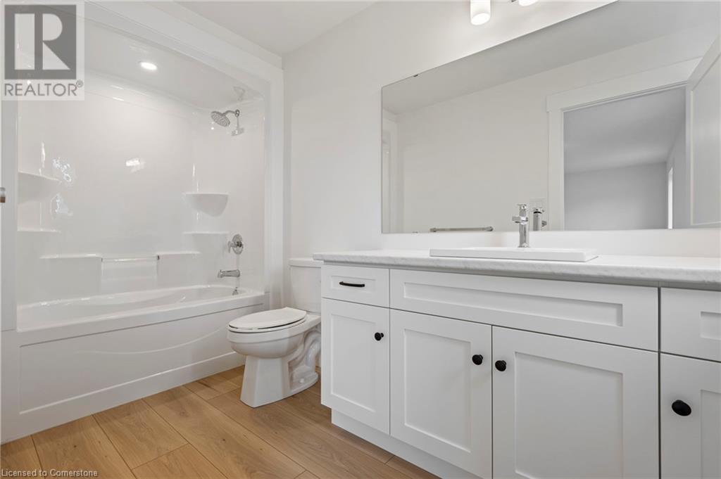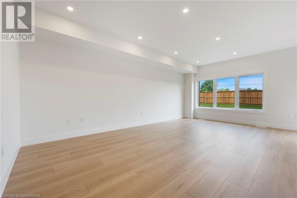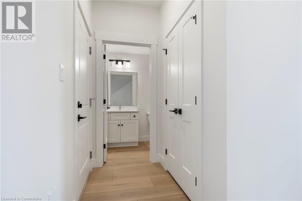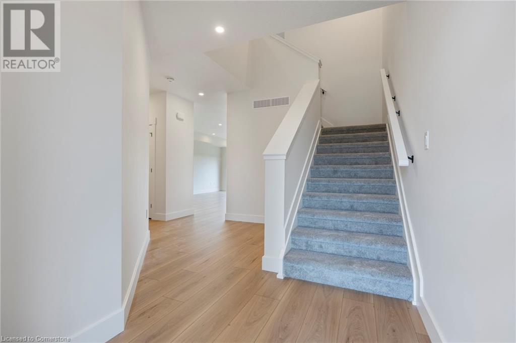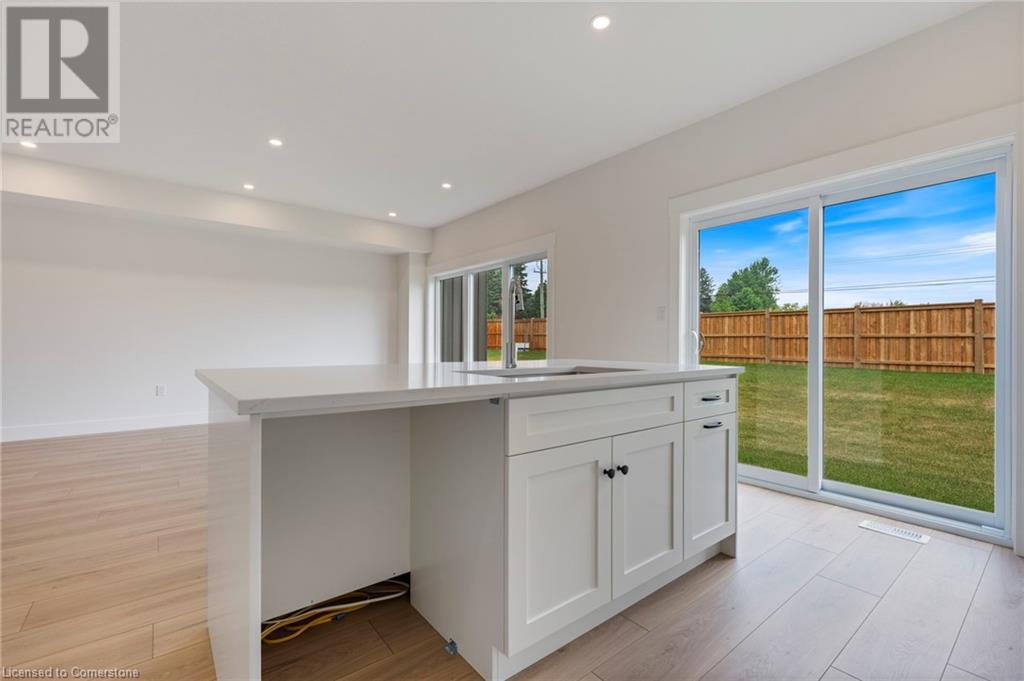 Get ready to fall in love with The AMBROSE-RIGHT, a stunning new semi-detached 2-storey home with an attached double-car garage & potential for a 1-bdrm legal suite in the basement. Located in the sought-after Villages of Waterford, this home offers 1,775 sqft of beautifully designed living space. Step inside from the covered front porch into a spacious foyer that leads to an open concept kitchen, dining nook & great room. The kitchen features custom cabinetry with pot/pan drawers, pull-out garbage & recycle bins, soft-close drawers/doors, quartz countertops, island with breakfast bar & pantry. The entire main floor, along with the upstairs bathrooms & laundry room, is finished with durable & stylish luxury vinyl plank flooring. This home boasts 3 bdrms, 2.5 baths & an upstairs laundry room complete with a sink for added convenience. The primary bedroom includes a 4-piece ensuite with a tub/shower combo & a walk-in closet. With 9 ft ceilings on the main floor & 8 ft ceilings in the basement, the home feels open & airy. The attached double-car garage offers an 8 ft high door & space for two additional cars in the driveway, providing ample parking. The undeveloped basement has in-floor heating and is ready for customization, with potential to create a 1-bdrm legal suite for rental income or multi-generational living. Enjoy the peace of mind that comes with new construction: landscaped front & rear yards, tankless hot water, forced air furnace & central air conditioning for the main & upper levels. The home also includes rough-ins for central vacuum, contemporary lighting & pot lights & durable brick, stone & vinyl exterior. Additional features include fibre optic internet, a programmable thermostat & NO rental equipment. Located close to elementary & high schools, shopping & grocery stores, perfect for families or investors. Licensed Salesperson in the Prov of Ont has interest in Vendor Corp. Interior & exterior photos are from a similar home with the same floor plan. (id:55009)