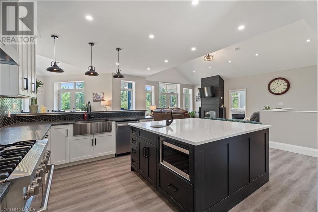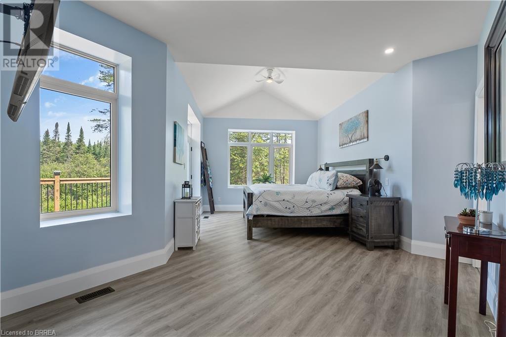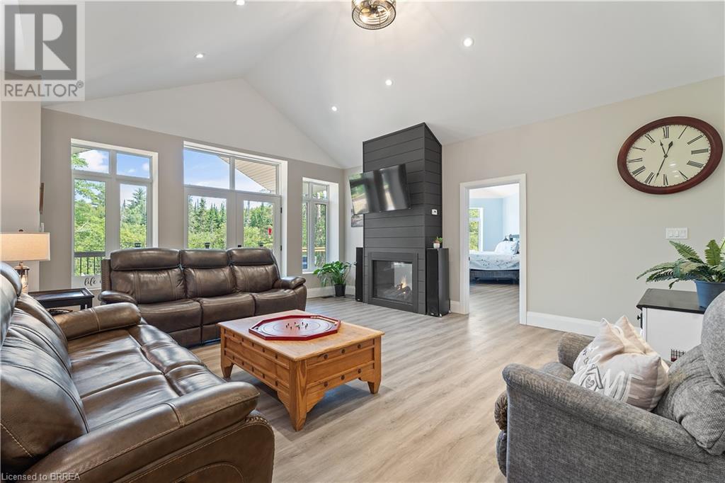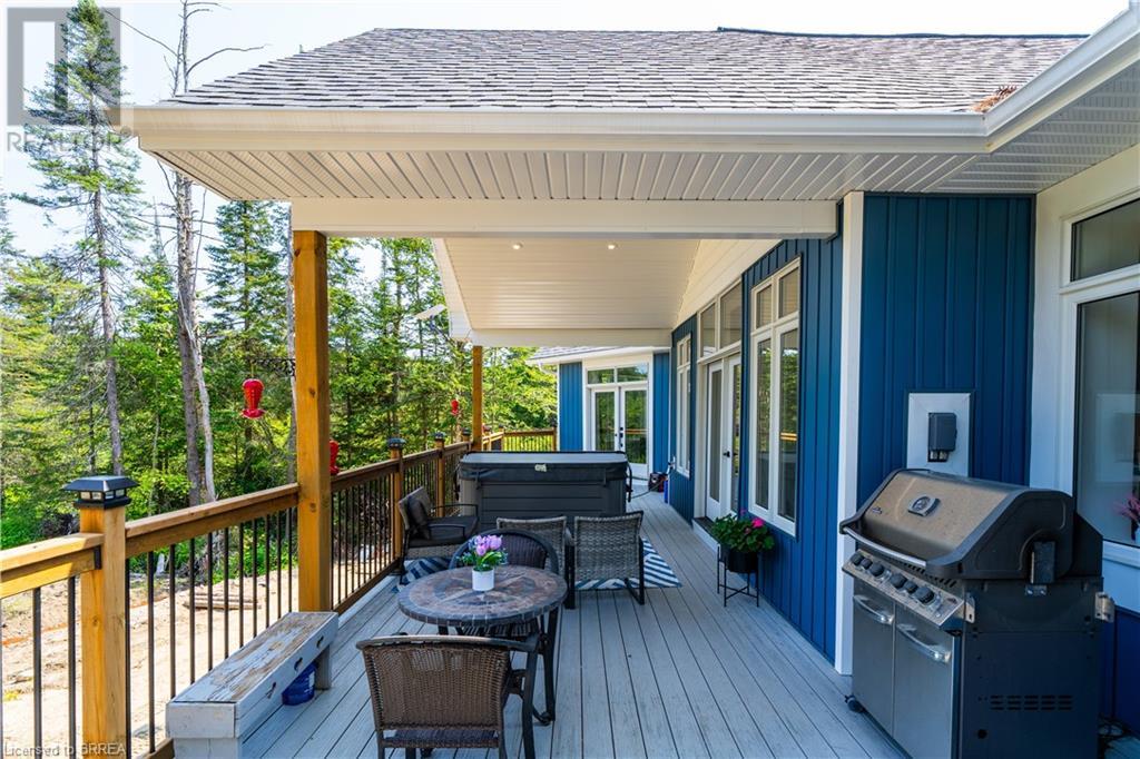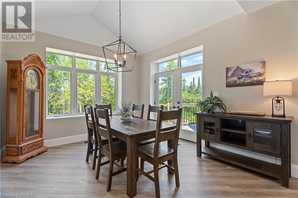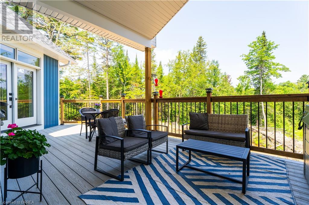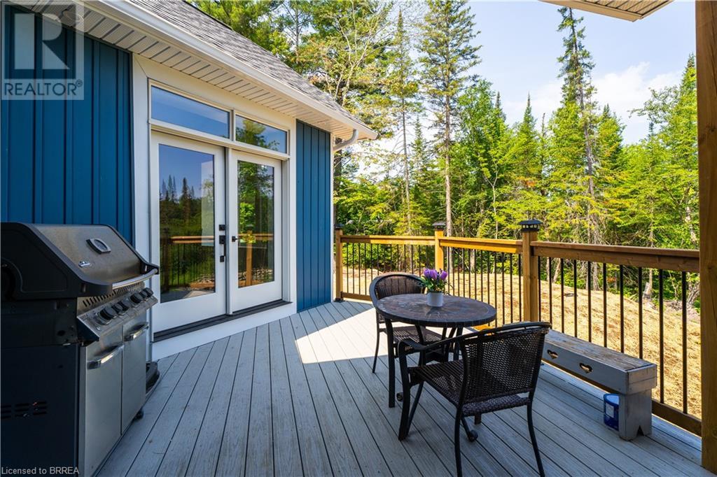 Welcome to your secluded sanctuary with this crafted custom-built home (23/24) set on a sprawling treed lot spanning 3.39 acres, and graced by a tranquil creek winding its way to Rainy Lake. Enjoy the peace and quiet of nature with Rainy Lake just up the road, offering a convenient boat launch for water enthusiasts. The main floor exudes elegance with an open concept design, vaulted ceilings, and abundance of pot lights illuminating the space. Revel in the sun-drenched interiors filled with natural light pouring in through numerous windows. The heart of the home is a chef’s delight, featuring a gourmet kitchen with floor-to-ceiling white cupboards, soft-close drawers, a chic black hexagon backsplash, pot filler, a large island with a prep sink, and premium stainless steel appliances. Prepare your morning coffee at the sleek coffee bar equipped with its own bar fridge and sink. With an open concept design, entertain effortlessly in the main living room and dining room, with direct access to the upper deck overlooking the serene property. The primary bedroom is a luxurious escape, boasting a spa-like 4-pc ensuite bath with a large walk-in shower, a deck walkout featuring a covered area with a hot tub, and a spacious walk-in closet with organizational bliss. A double fireplace connecting the main living room and primary bedroom, complemented by shiplap accents on both sides completes the main level. Lower level highlights a fully finished basement with a walkout perfect for multi generational family living, a 4-pc bath including a jetted tub, and a rough-in for a wet bar in the family room. Enjoy the remainder of the property complete with a bunkie, outhouse, and 400ft of owned water frontage, creating a true oasis for relaxation and entertainment. Additional features include vinyl flooring throughout, pot lights outside and inside, dog wash, propane BBQ hookup, ICF from foundation to roof, new septic, well, and propane systems, and rough-in for a Generac generator. (id:55009)
