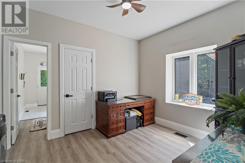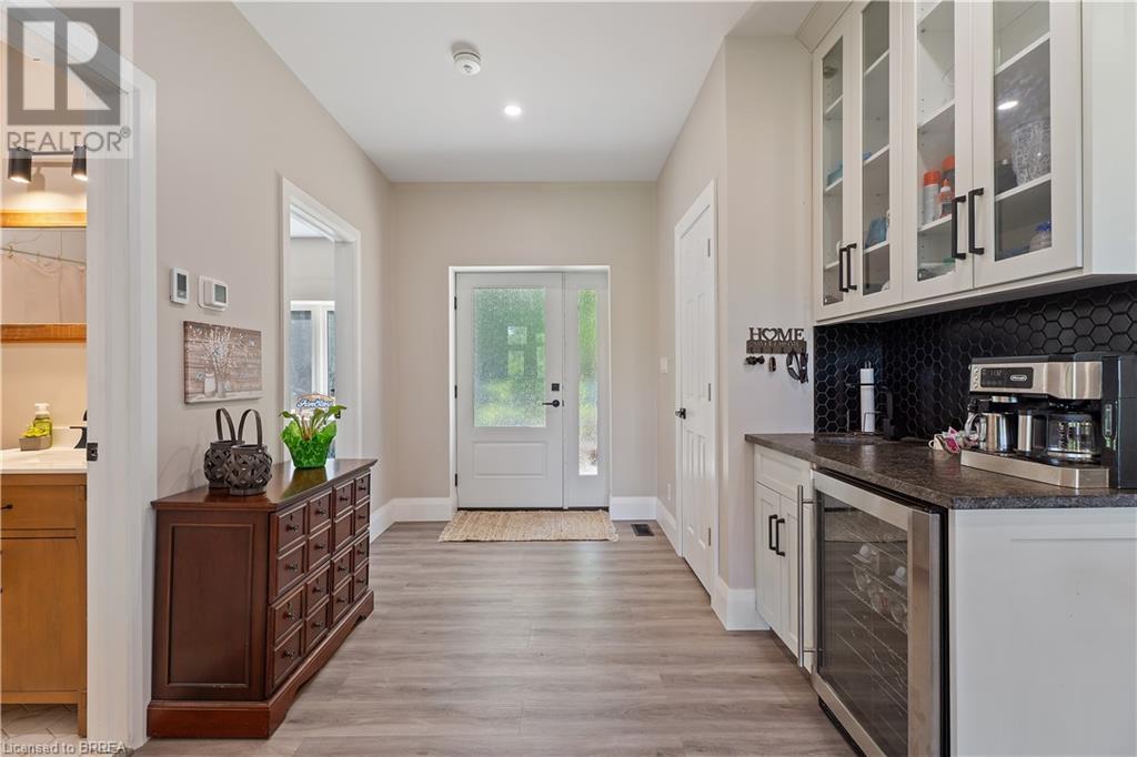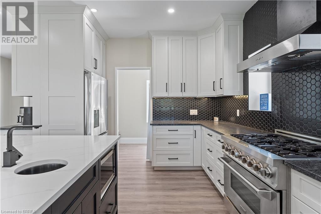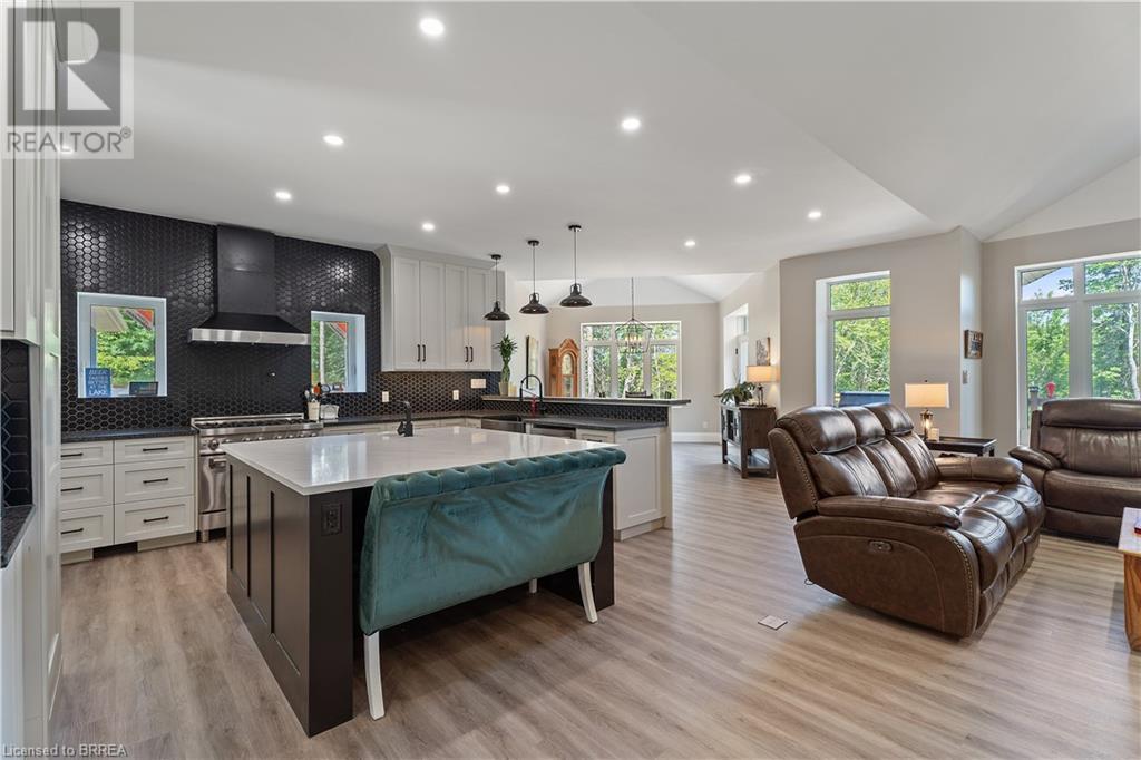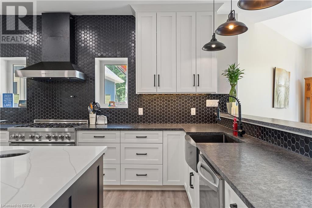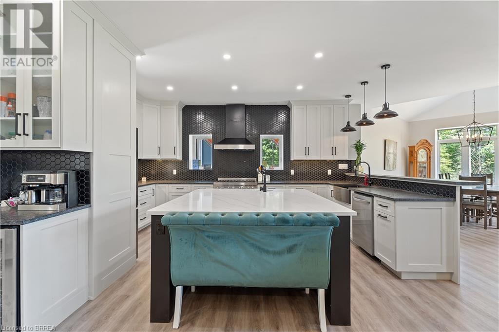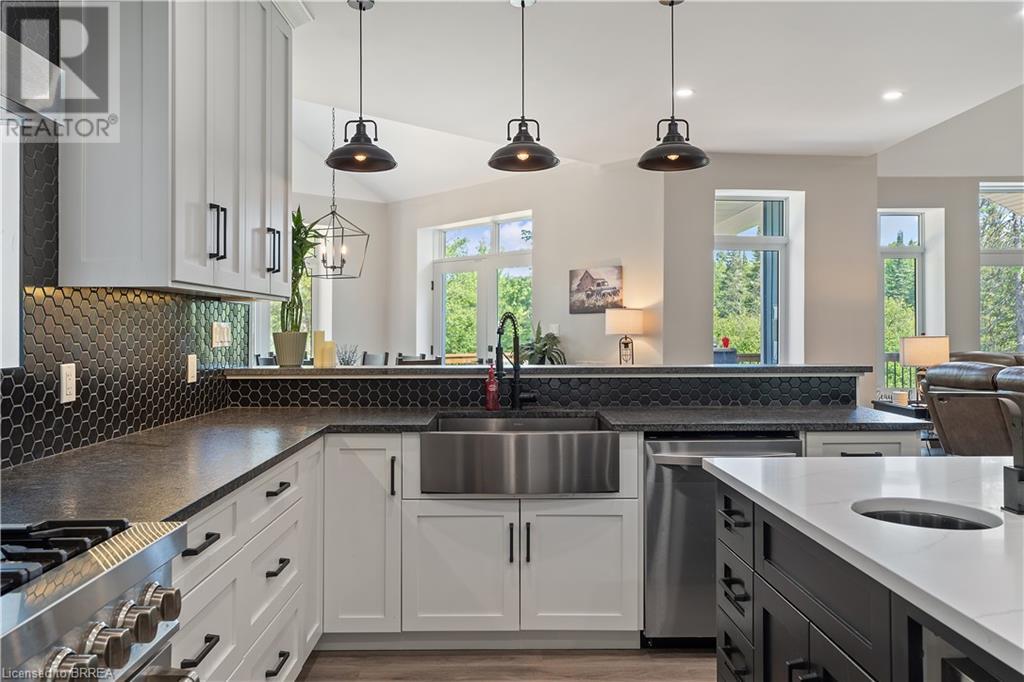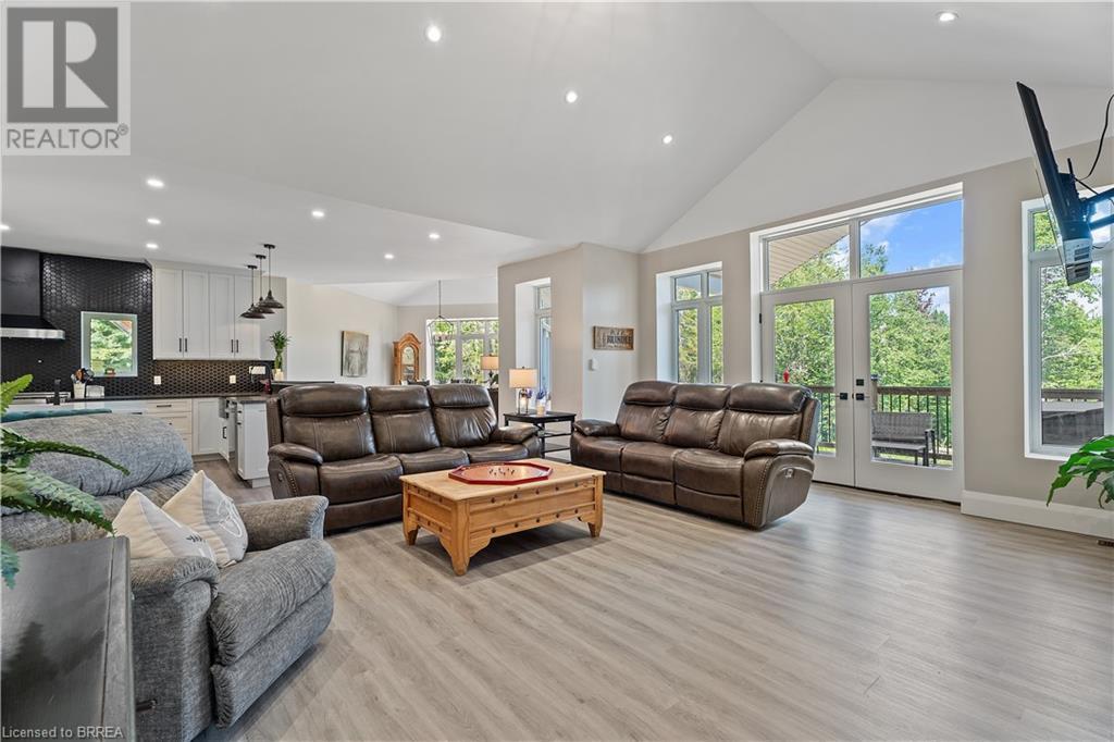 Welcome to your secluded sanctuary with this crafted custom-built home (23/24) set on a sprawling treed lot spanning 3.39 acres, and graced by a tranquil creek winding its way to Rainy Lake. Enjoy the peace and quiet of nature with Rainy Lake just up the road, offering a convenient boat launch for water enthusiasts. The main floor exudes elegance with an open concept design, vaulted ceilings, and abundance of pot lights illuminating the space. Revel in the sun-drenched interiors filled with natural light pouring in through numerous windows. The heart of the home is a chef’s delight, featuring a gourmet kitchen with floor-to-ceiling white cupboards, soft-close drawers, a chic black hexagon backsplash, pot filler, a large island with a prep sink, and premium stainless steel appliances. Prepare your morning coffee at the sleek coffee bar equipped with its own bar fridge and sink. With an open concept design, entertain effortlessly in the main living room and dining room, with direct access to the upper deck overlooking the serene property. The primary bedroom is a luxurious escape, boasting a spa-like 4-pc ensuite bath with a large walk-in shower, a deck walkout featuring a covered area with a hot tub, and a spacious walk-in closet with organizational bliss. A double fireplace connecting the main living room and primary bedroom, complemented by shiplap accents on both sides completes the main level. Lower level highlights a fully finished basement with a walkout perfect for multi generational family living, a 4-pc bath including a jetted tub, and a rough-in for a wet bar in the family room. Enjoy the remainder of the property complete with a bunkie, outhouse, and 400ft of owned water frontage, creating a true oasis for relaxation and entertainment. Additional features include vinyl flooring throughout, pot lights outside and inside, dog wash, propane BBQ hookup, ICF from foundation to roof, new septic, well, and propane systems, and rough-in for a Generac generator. (id:55009)