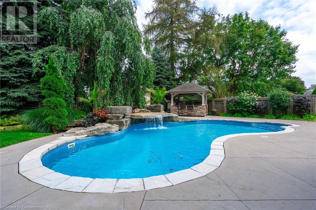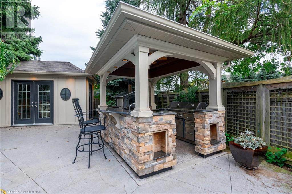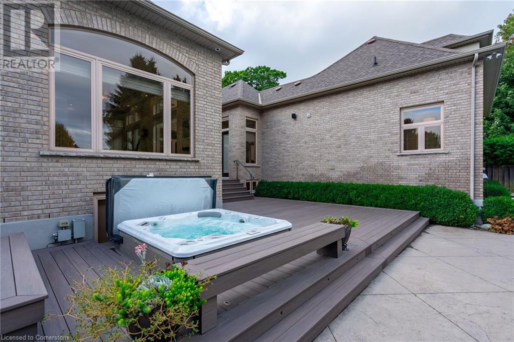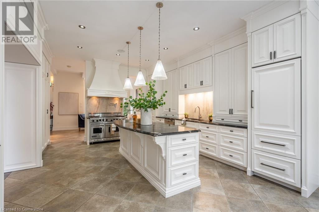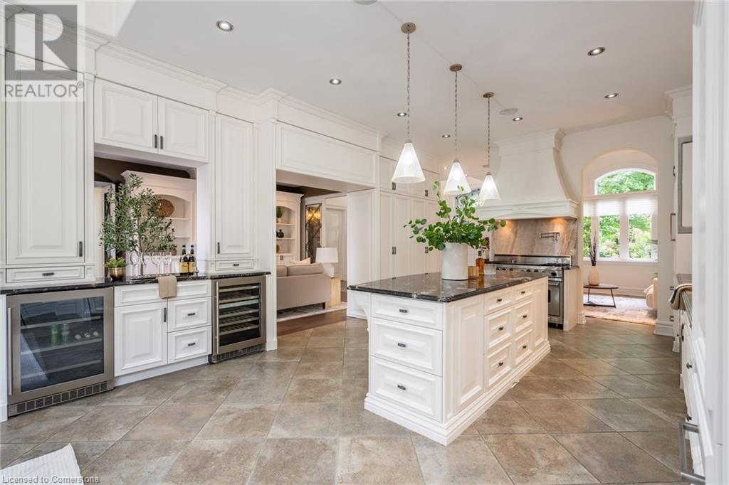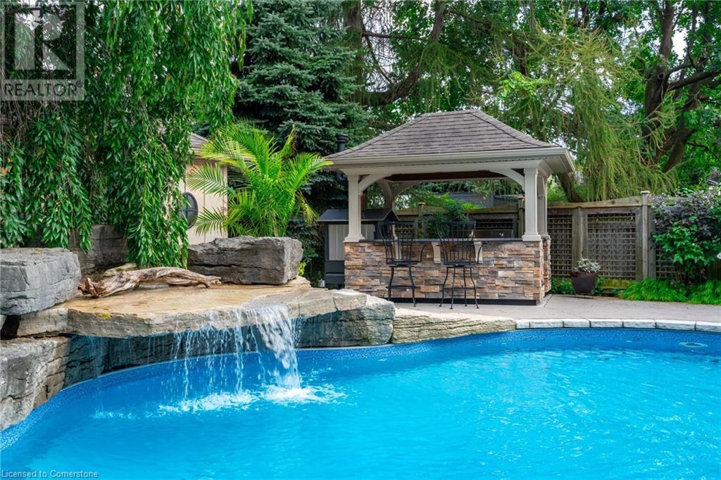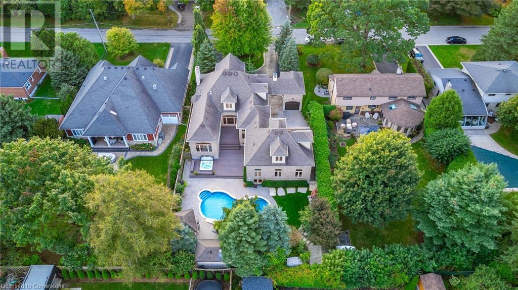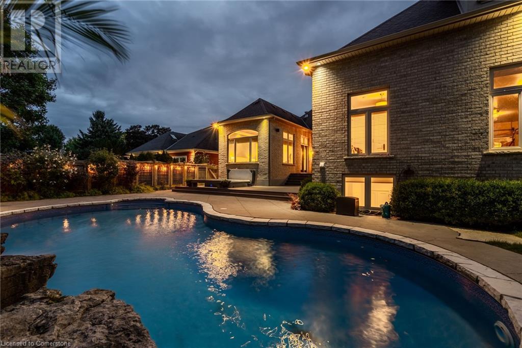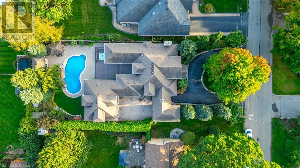 Welcome to this custom-built bungaloft, offering almost 6,500 sq. ft. of finished luxurious living space in the heart of Old Ancaster. Nestled among mature trees in a quiet neighborhood, this home is steps from the prestigious Hamilton Golf and Country Club, has easy highway access and is walkable to fantastic restaurants, shopping, & other amenities. Inside, the attention to detail is remarkable, with 10-foot ceilings on the main floor and hand-finished wood floors throughout, giving the home an open and airy feel. The gourmet kitchen is sure to impress with high-end appliances including a Viking professional stove, granite countertops, a spacious island, ample cupboards and so much more. The main-floor primary suite offers a retreat with custom California closets and a spa-like ensuite with rain shower, soaker tub, and double vanity. The approximately 500 sq. ft. loft space offers endless possibilities including an additional bedroom, exercise room, or creative space. The finished basement is an entertainer’s paradise, featuring a custom bar, wine fridges, Dimplex fireplace, and a fully equipped kitchen with Sub-Zero fridge drawers and Bosch appliances. With the second kitchen, full bathroom, great sized bedroom + ample light and living space, this space would make a great in-law set up/nanny suite if needed. Outside, escape to your own private oasis complete with a heated saltwater pool, beautiful landscaping, an outdoor covered kitchen featuring a Pantana pizza oven imported from Italy and Nexium BBQ featuring both gas and propane. A 2-piece bathroom + outdoor shower make pool days easier for kids. Newer 30 x 40 Wolf composite deck and Hydropool hot tub provide the perfect outdoor relaxation space. Three indoor garage spaces, with the potential for a fourth if you add a car lift. This extraordinary home blends luxury, comfort, and practicality in one of Ancaster’s most sought-after neighborhoods. Come see this exceptional home for yourself. RSA. (id:55009)