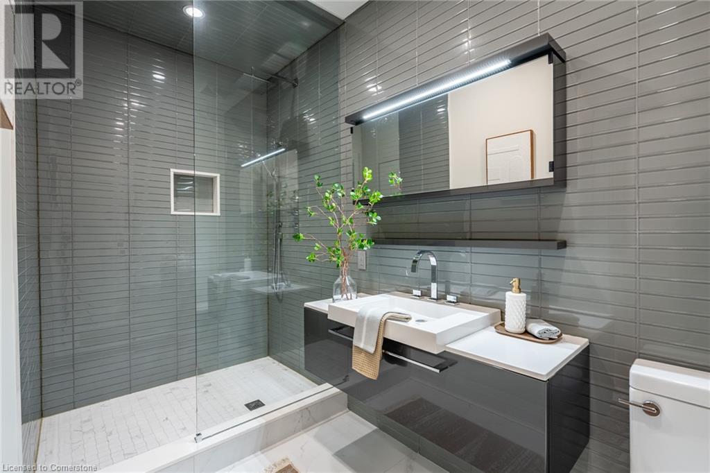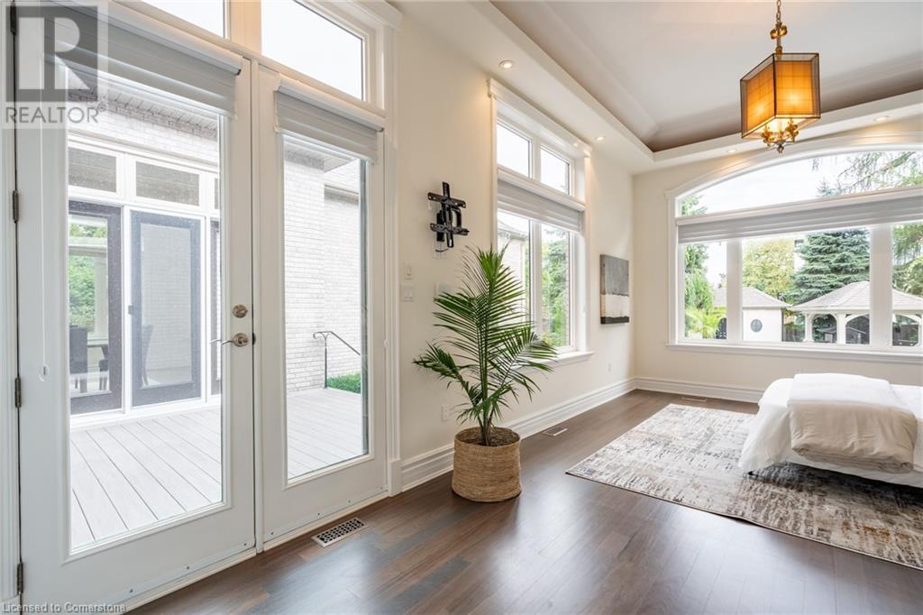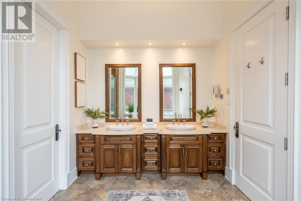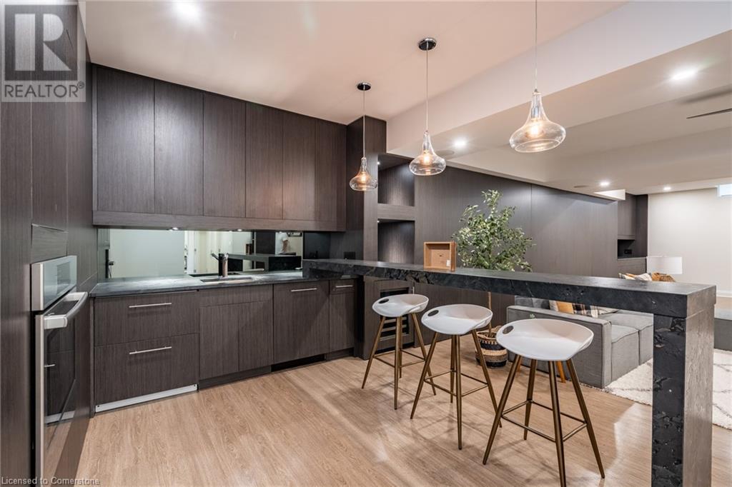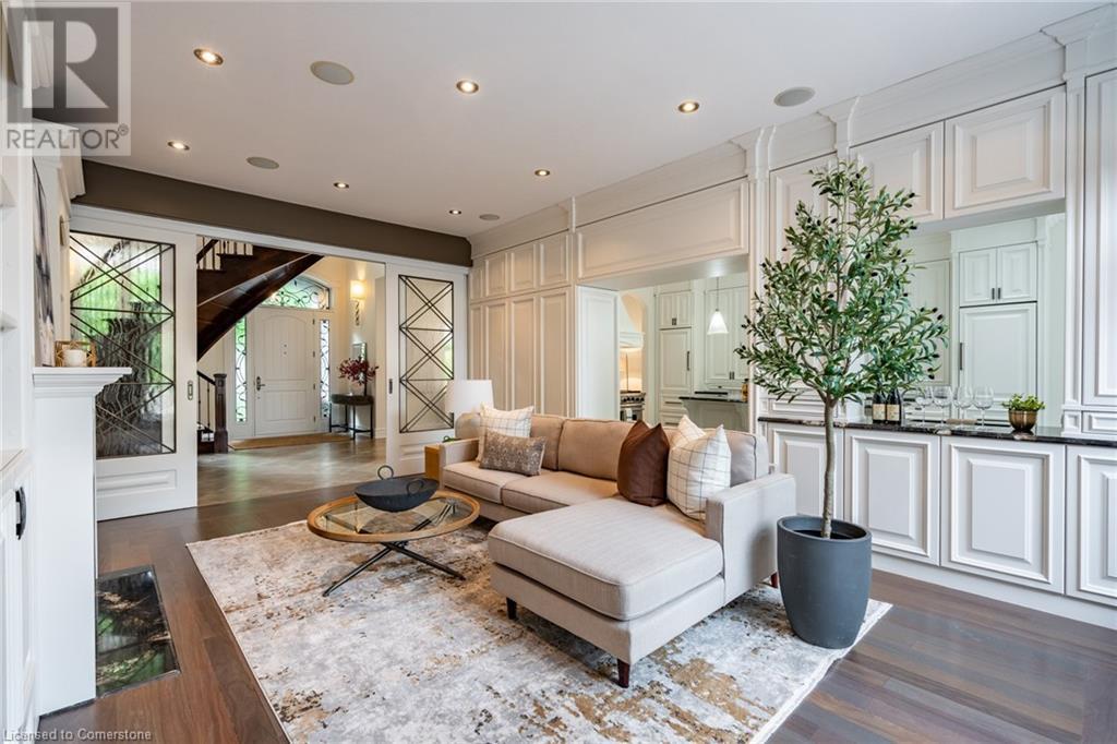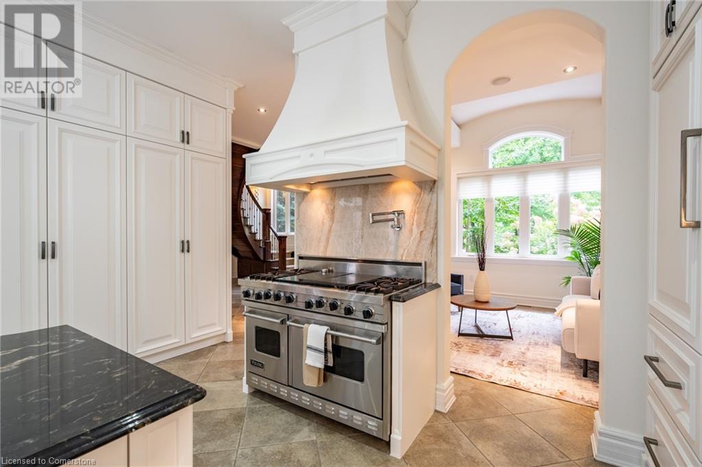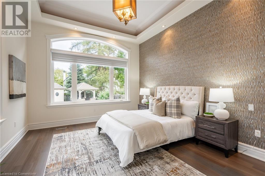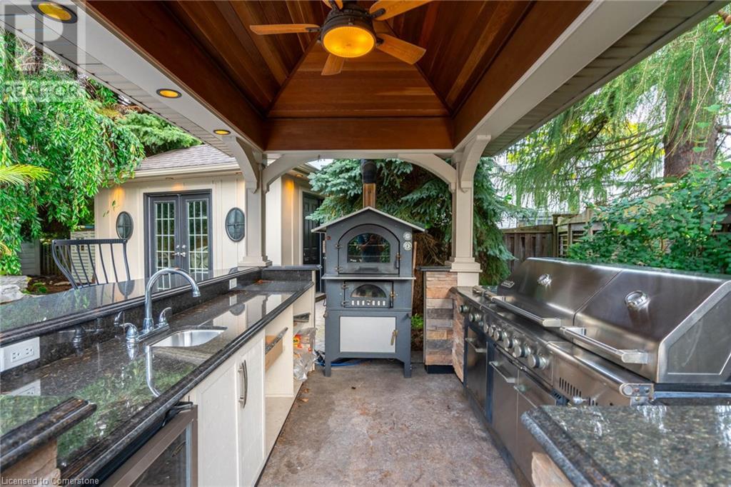 Welcome to this custom-built bungaloft, offering almost 6,500 sq. ft. of finished luxurious living space in the heart of Old Ancaster. Nestled among mature trees in a quiet neighborhood, this home is steps from the prestigious Hamilton Golf and Country Club, has easy highway access and is walkable to fantastic restaurants, shopping, & other amenities. Inside, the attention to detail is remarkable, with 10-foot ceilings on the main floor and hand-finished wood floors throughout, giving the home an open and airy feel. The gourmet kitchen is sure to impress with high-end appliances including a Viking professional stove, granite countertops, a spacious island, ample cupboards and so much more. The main-floor primary suite offers a retreat with custom California closets and a spa-like ensuite with rain shower, soaker tub, and double vanity. The approximately 500 sq. ft. loft space offers endless possibilities including an additional bedroom, exercise room, or creative space. The finished basement is an entertainer’s paradise, featuring a custom bar, wine fridges, Dimplex fireplace, and a fully equipped kitchen with Sub-Zero fridge drawers and Bosch appliances. With the second kitchen, full bathroom, great sized bedroom + ample light and living space, this space would make a great in-law set up/nanny suite if needed. Outside, escape to your own private oasis complete with a heated saltwater pool, beautiful landscaping, an outdoor covered kitchen featuring a Pantana pizza oven imported from Italy and Nexium BBQ featuring both gas and propane. A 2-piece bathroom + outdoor shower make pool days easier for kids. Newer 30 x 40 Wolf composite deck and Hydropool hot tub provide the perfect outdoor relaxation space. Three indoor garage spaces, with the potential for a fourth if you add a car lift. This extraordinary home blends luxury, comfort, and practicality in one of Ancaster’s most sought-after neighborhoods. Come see this exceptional home for yourself. RSA. (id:55009)