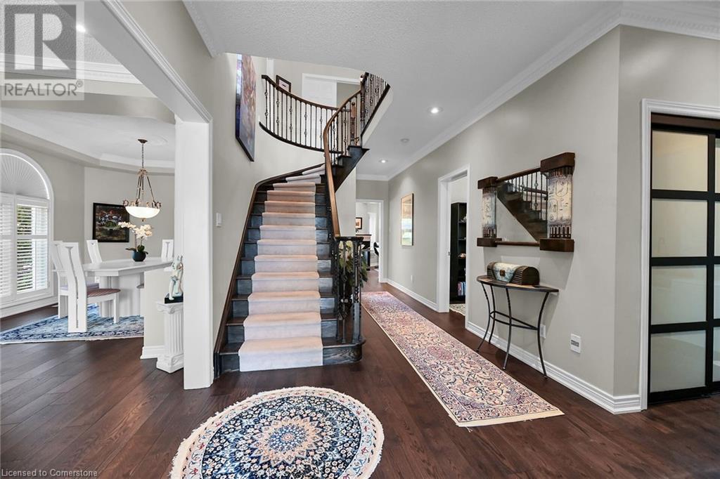 Beautiful one owner home consistently maintained & updated. This 4 bedroom, 4 bath home is elegant from the moment you pull into the driveway. Enter the double doors to open foyer of lovely centre hall plan with winding staircase. Left you enter the separate living room which extends into the separate dining room, hardwood floors, pot lights, crown molding, cali shutters. The eat-in kitchen has loads of counterspace, centre island, large pantry, 3-sided fireplace between kitchen & huge family room. Main floor also has a large office, a laundry room with garage entry & 2 piece washroom. Upstairs double door master bedroom retreat with 5 piece ensuite, walk-in shower, free standing tub & bidet, separate walk-in closet. 2nd large bedroom with 3 piece updated ensuite & two other large bedrooms & fully updated 4 piece bathroom.The patio doors off kitchen lead to a premium size backyard with perennial gardens, patio, sprinkler system, pool sized lot. The unfinished basement with roughed-in washroom awaits your design: recroom, more bedrooms, kids retreat or simply use the space for loads of storage. This lovely home is located on a dead end street within walking distance to Spencer Smith Park, downtown, the lakefront walking trails & is a short drive/bike ride to Burlington Golf & Country Club, LaSallle Marina, the Burlington Beach. This home is also ideally situated to the highway 403/QEW & two GO stations. Commute Niagara bound or Toronto bound but make Burlington your home town. (id:55009)