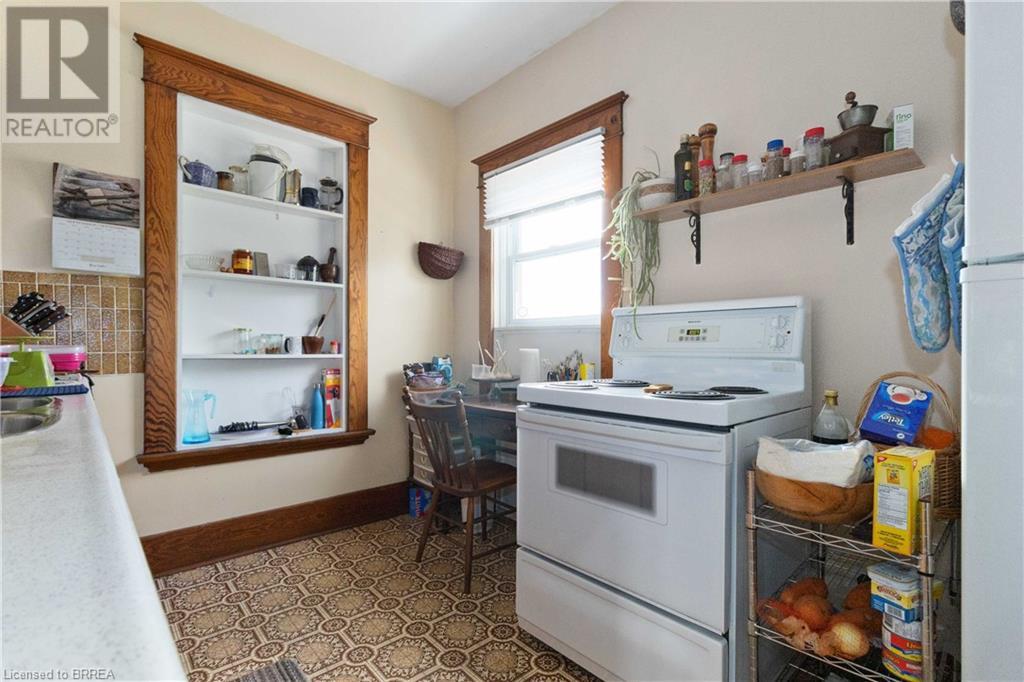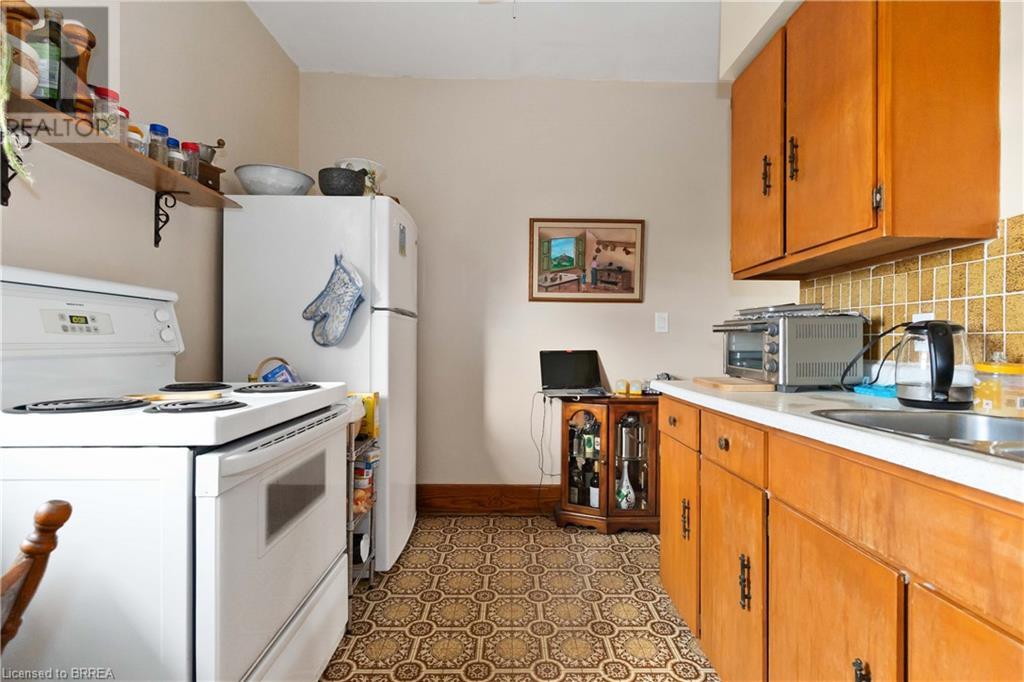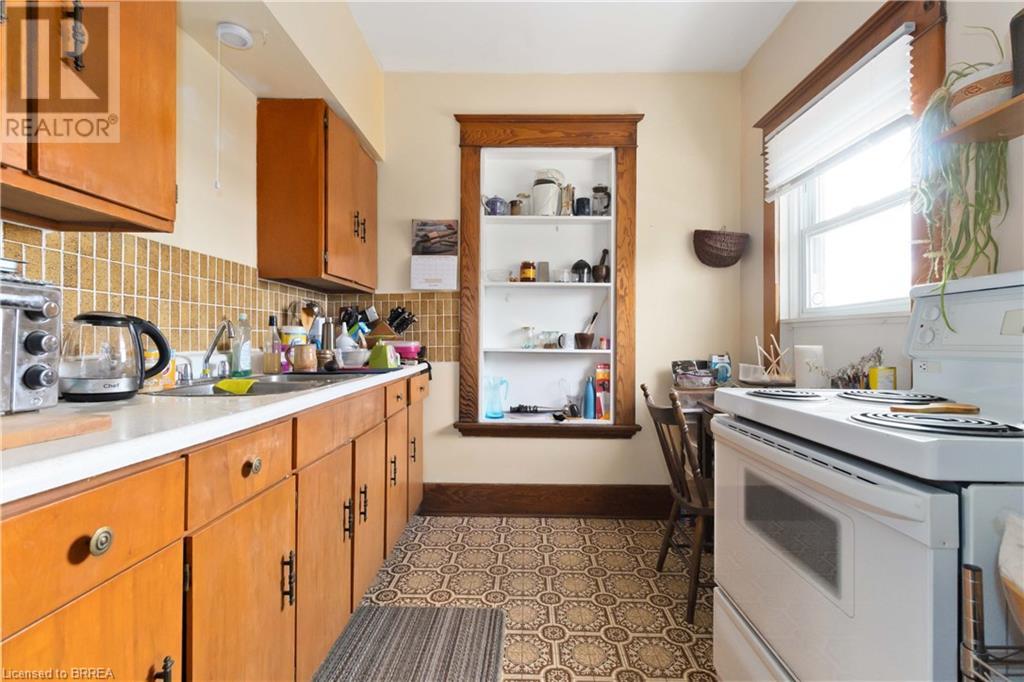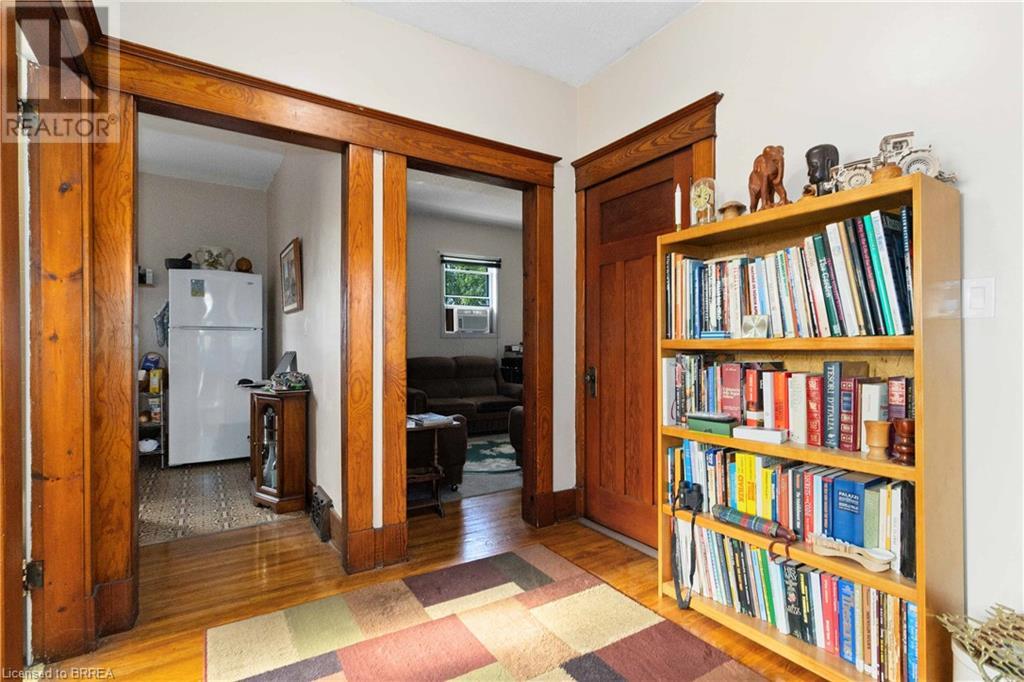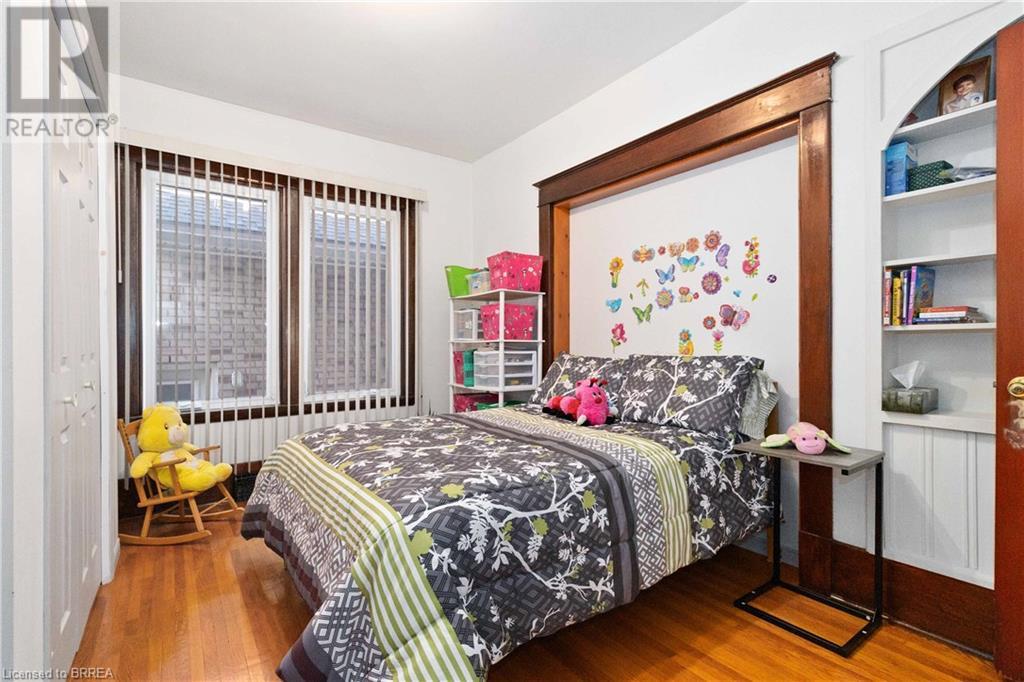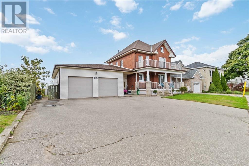 If you are looking for a large home with multi family/inlaw potential on a huge lot then this is the property for you! This one of a kind home is located in the desirable Terrace Hill area of Brantford. Potential for a third unit to make a Tri-plex. Situated on a 70 foot wide lot with a view of the city from the back yard. This 2 storey home boasts over 3000 sq feet of finished living space on three levels with a unfinished attic that offers additional potential. The home consists of 2 separate units. The owner's main floor unit has a spacious entry way with access to a oversized double car garage (30.7x24.8 feet). The living rm, dining rm and kitchen spans the back of the home and is a very large with loads of oak cabinetry, expansive counter space, eating area and patio door walk out to the deck overlooking the well manicured yard. There are 3 generous bedrooms, 4 piece bath and a Den. There are two staircases to the basement as there was an addition to this home 25 years ago. The lower level offers a 2nd kitchen, cold cellar, 3 piece modern bath, mechanical room, laundry room and a recreation room. The upper unit is currently rented out and is immaculate condition with gleaming hardwood flooring, historical woodwork and trim accenting every room. Boasting 2 bedrooms, a 4 piece bathroom, kitchen, living room and a walk up staircase to an unfinished attic perfect for storage. The large private driveway could accommodate up to 5 vehicles. Roof reshingled in 2013. Hi-efficiency f/air gas furnace (2024), C/air and recently updated railings on the sprawling covered front porch. This is truly a unique home with so much to offer for a large family or someone looking to have an amazing income property. Very central location close to the BGH, schools, parks, shopping and Hwy 403. (id:55009)