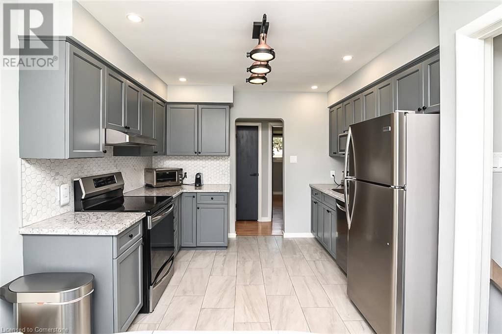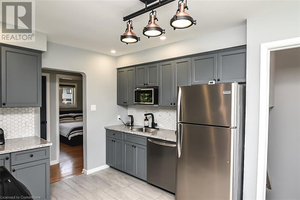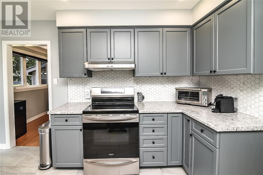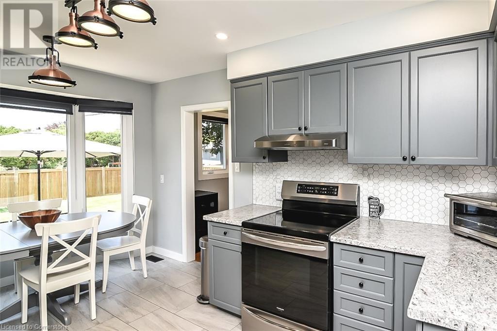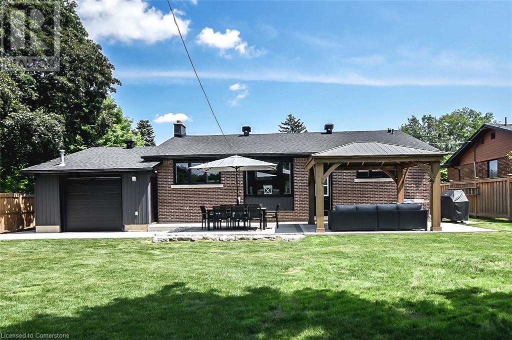 Welcome to 118 Seneca Drive located in the desirable Mohawk Meadows neighborhood! This beautiful bungalow was completely renovated in 2020 with 4 bedrooms, 2 full bathrooms, new electrical and panel, complete with new duct work and high efficiency furnace, new plumbing, new windows, new roof (shingles and plywood) new soffit, fascia and eavestrough, all new exterior siding, drive through garage insulated and heated with natural gas. New R60 attic insulation, all new exterior concrete and interlock. New fence, all basement exterior walls spray foamed. This home is close to all shopping, schools, highways, bus route, trails and much more. Don't miss the opportunity to make this your home. 24 Hours irrevocable. Some of the photos are Virtually Staged (id:55009)