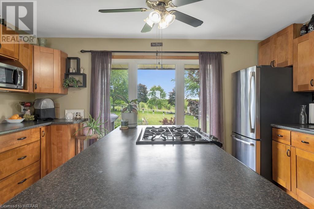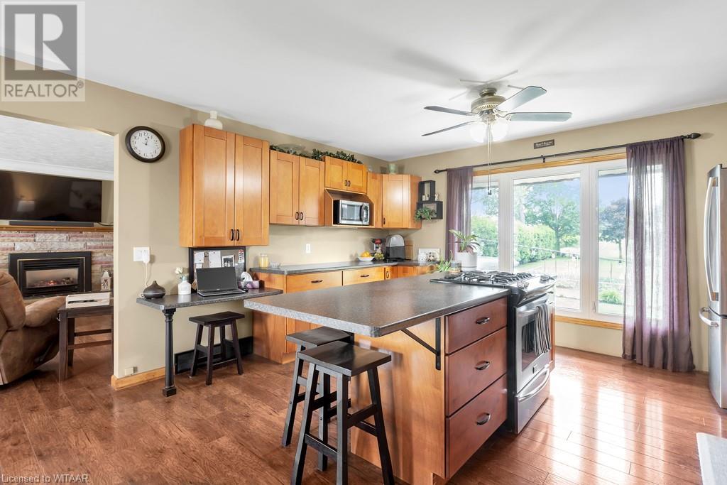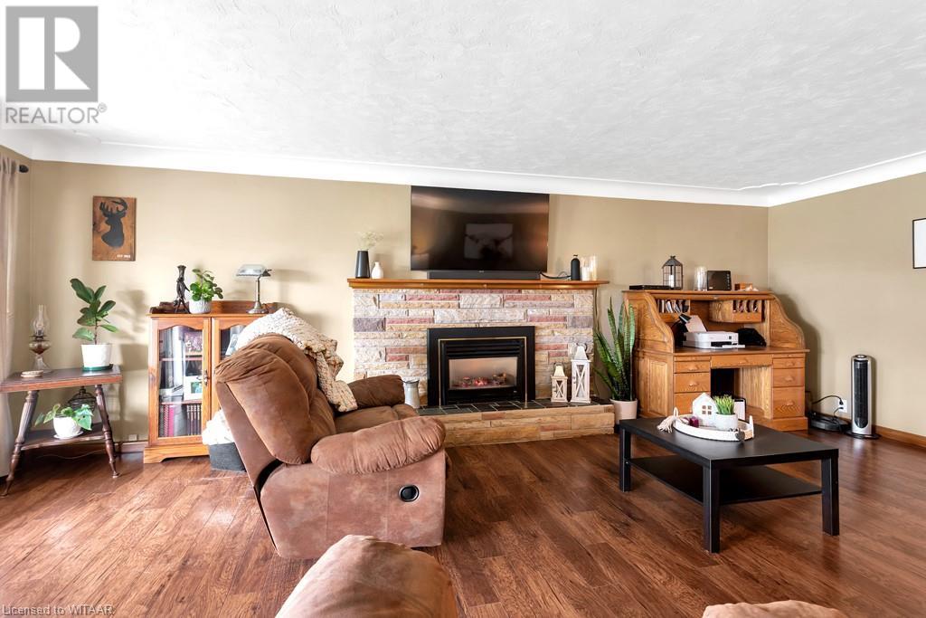 Welcome to your dream home! This beautifully updated family residence offers a perfect blend of modern convenience and rural tranquility. Nestled on a spacious lot, this property provides the ideal setting for a comfortable and serene lifestyle. The main floor boasts an open layout, seamlessly connecting the living spaces for effortless entertaining and everyday living. A large kitchen with ample counter tops is the heart of the home, featuring stainless steel appliances and plenty of storage. Adjacent to the kitchen, the dining area is perfect for family meals and special occasions. Cozy up to the gas fireplace in the living room perfect for evenings and relaxation. This home offers three comfortable bedrooms including an oversized primary bedroom with abundant closet space. The fully finished basement includes a rec room with gas fireplace, 3 piece bathroom and a unique feature - a hair salon, ideal for anyone looking to operate a home-based business. Enjoy the large private backyard complete with a patio area, gazebo, shed (roof 2024), garden and an underground manual irrigation system. A bonus feature is the large private driveway and 2 car attached garage. Roof was replaced in 2018. All measurements approx taken by IGuide. (id:55009)