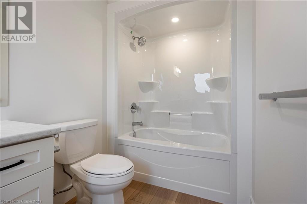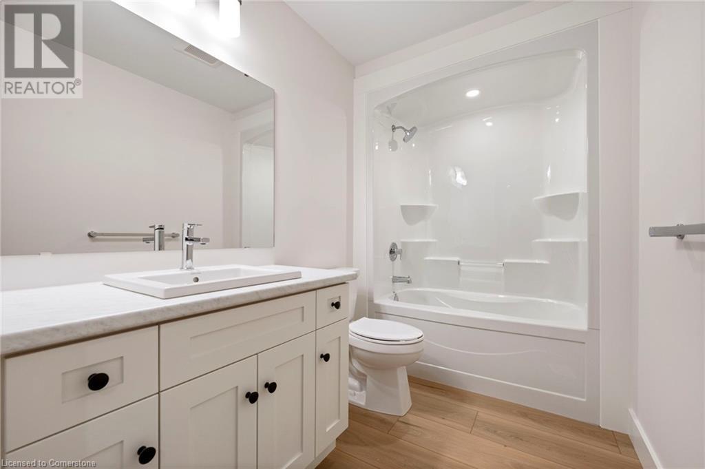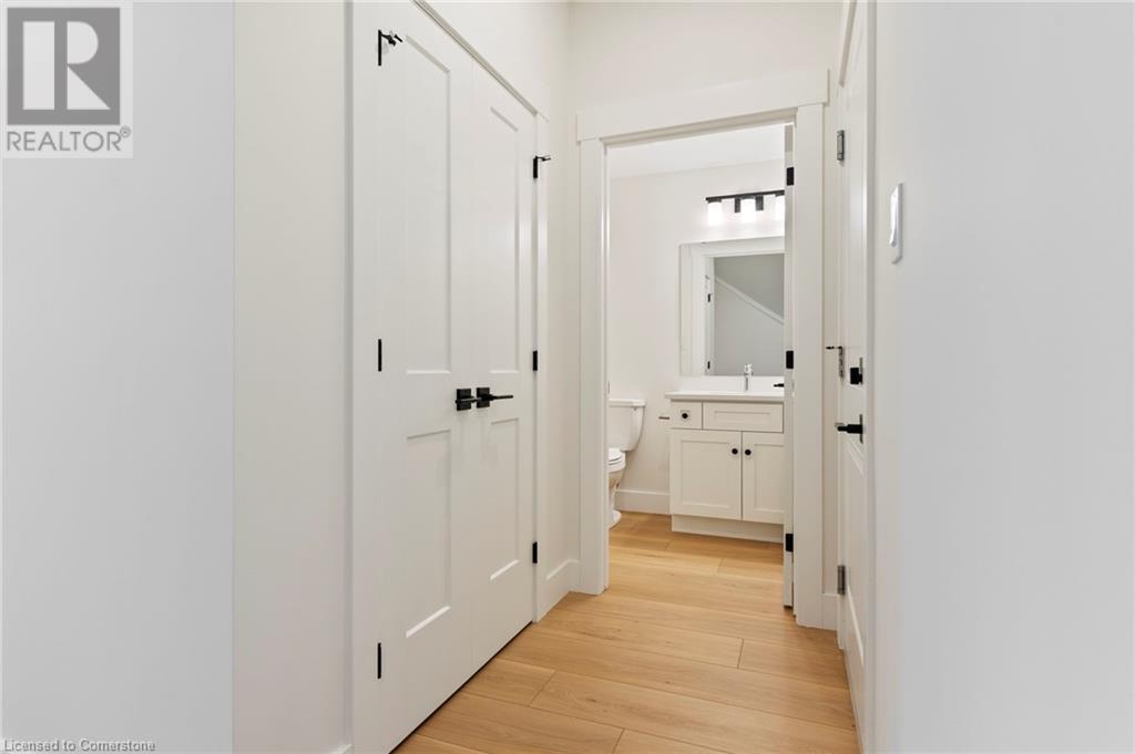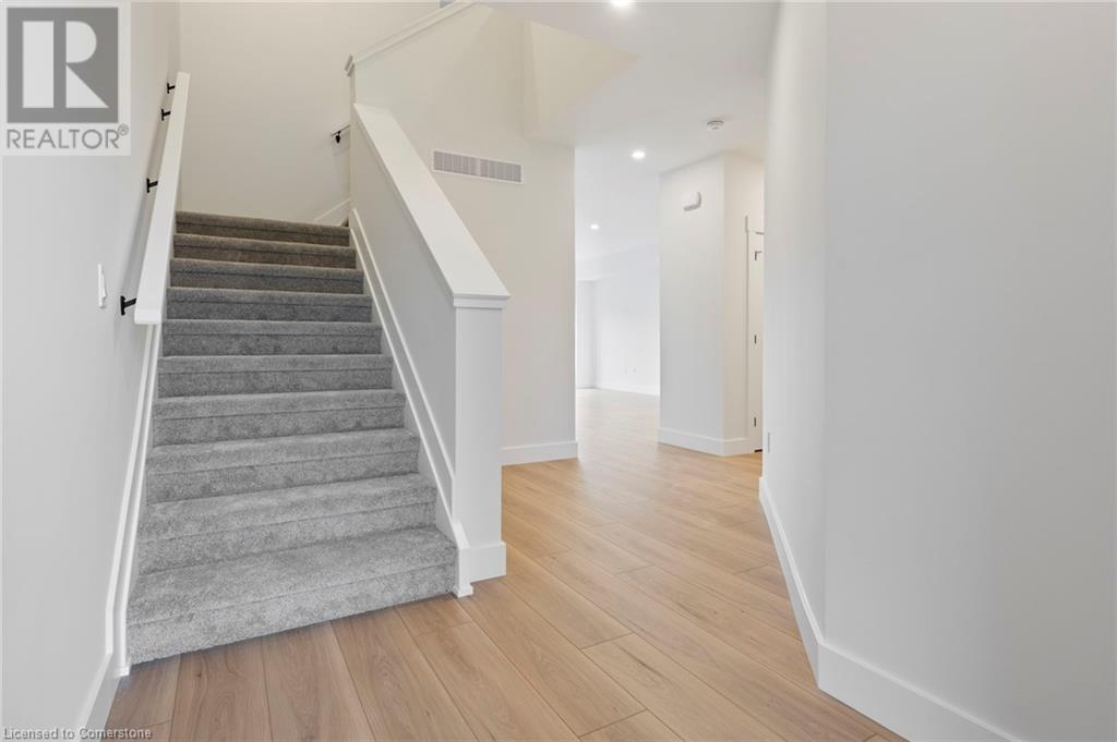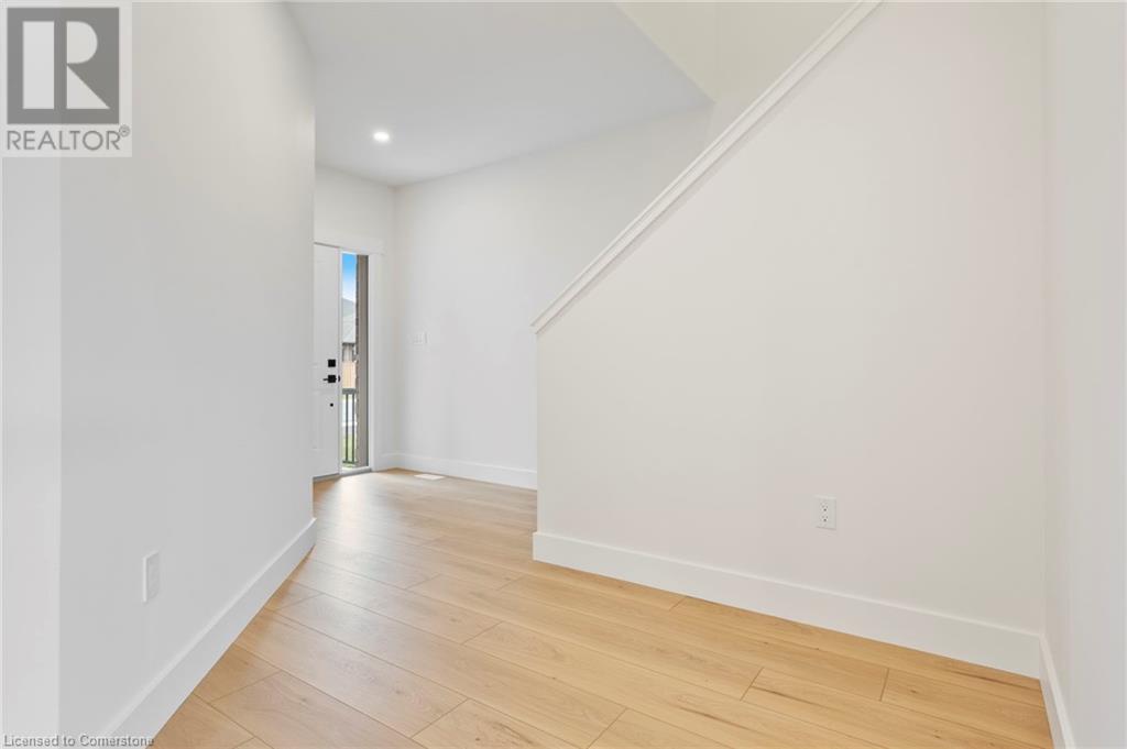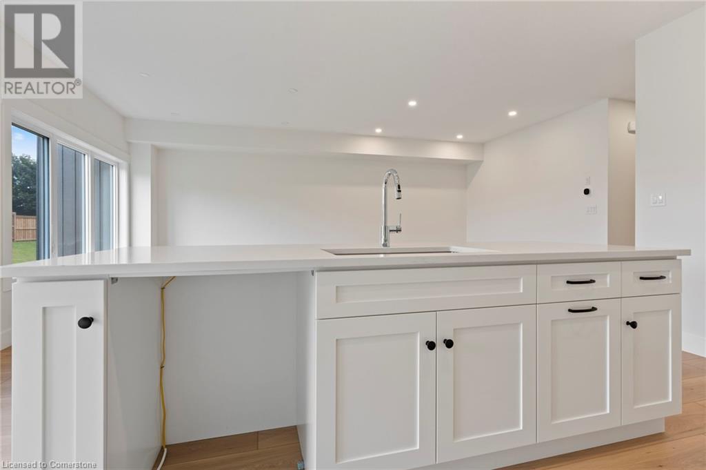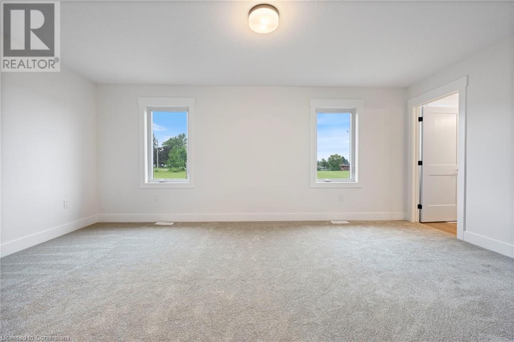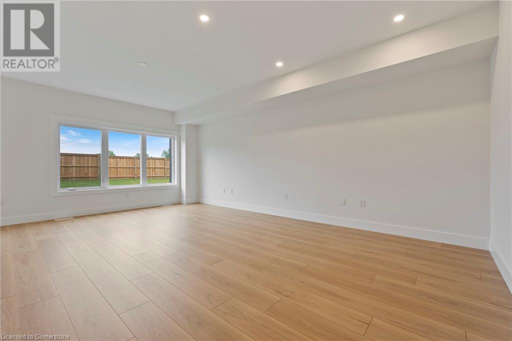 Get ready to fall in love with The AMBROSE-LEFT, a stunning new semi-detached 2-storey home with an attached double-car garage in the beautiful Villages of Waterford! Offering 1799 sqft of modern living space, this home is perfect for families seeking comfort & style. The home welcomes you with a covered front porch leading to a spacious foyer that opens to an open concept kitchen, dining nook & great room. The kitchen features custom cabinetry with pot & pan drawers, pull-out garbage & recycle bins, soft-close drawers & doors, quartz countertops, a breakfast bar island & a pantry. Luxury vinyl plank flooring is featured throughout the main floor, upper-level bathrooms & the upstairs laundry room, which comes complete with a sink. The second floor features 3 spacious bedrooms, including the large primary bedroom with a 4-piece ensuite (tub/shower combo) & a walk-in closet. With 9 ft ceilings on the main floor & 8 ft ceilings in the basement, the home is airy & open, providing plenty of space for your family to enjoy. The attached double-car garage comes with an 8 ft high door, & there’s room for 2 more cars on the driveway. The undeveloped basement features large windows, a bathroom rough-in, & offers plenty of potential for customization. The home includes front & rear landscaping, central air conditioning tankless hot water, & rough-ins for central vacuum. Thoughtful details such as contemporary lighting, pot lights, & a brick, stone, & vinyl exterior add to the home's charm & durability. Enjoy the peace of mind that comes with new construction & the New Home Warranty. Additional perks include fibre optic internet, a programmable thermostat, & no rental equipment. The home is conveniently located near schools, the library, shopping, & grocery stores, making it ideal for families and investors. Licensed Salesperson in the Province of Ontario has an interest in Vendor Corp. ** ALL EXTERIOR & INTERIOR PICTURES ARE FROM COMPLETED HOME THAT IS THE SIMILAR FLOORPLAN** (id:55009)