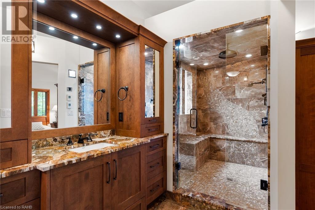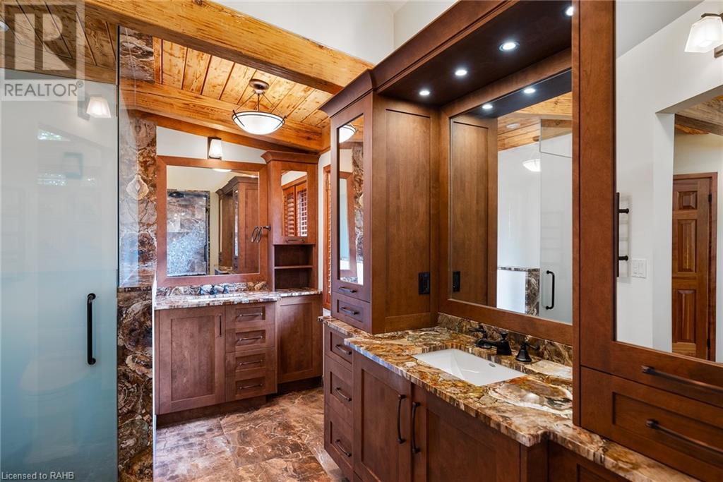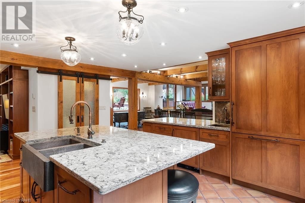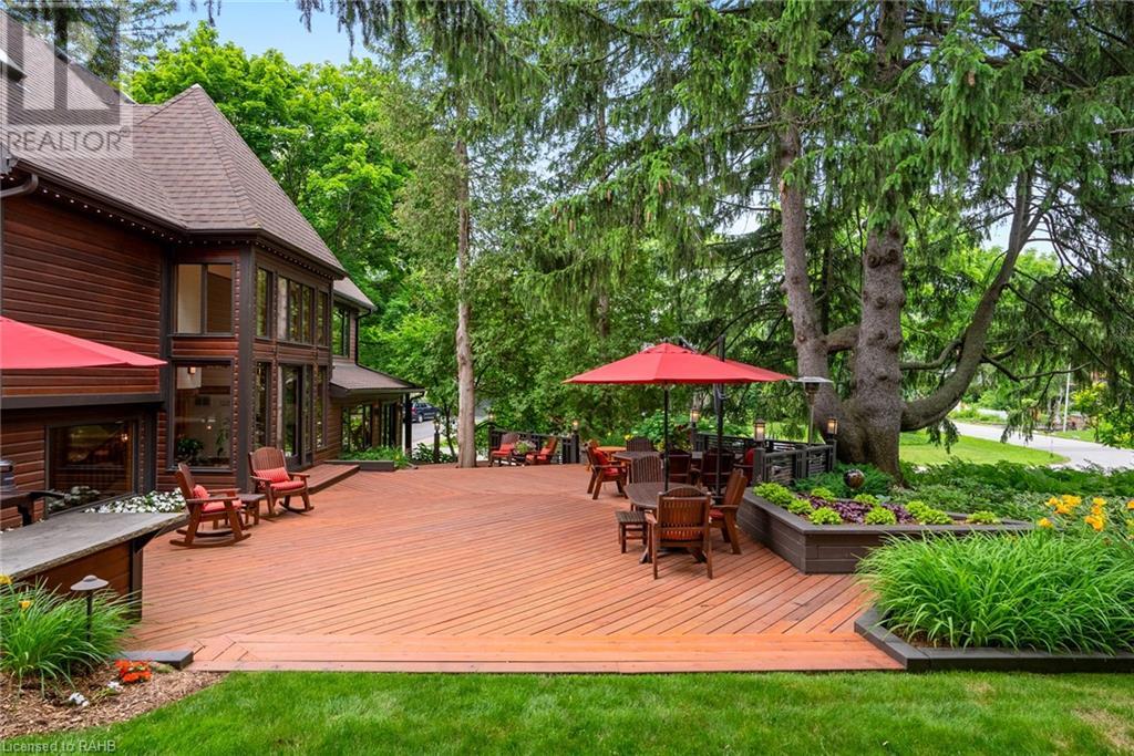 Experience the refined elegance of 1194 Stirling Drive, where luxury and comfort blend seamlessly to create an exquisite retreat. This stunning residence offers 4,294 sqft of above-grade living space with 4 beds and 3.5 baths. Enjoy partial lake views and indulge in the tranquility of luxury cottage living while having the amenities of city life. This spectacular home features seamless indoor-outdoor living with 6 exterior doors leading to a 1,500+ sqft deck, landscaped grounds, a pergola w/ hydro, and a custom Gib-San Gunite pool (2022), perfect for relaxation and extravagant gatherings. Inside, a symphony of opulence unfolds w/ stone gas fireplaces casting a warm glow upon the expansive open concept living space. The kitchen, a culinary enthusiast's dream, is replete with top-tier Miele appliances, a warming drawer, heated countertops, two copper sinks, and a copper pot filler with heated tile floors throughout. The primary bedroom features vaulted ceilings and a luxurious spa-like ensuite including a steam shower, heated floor and bench, jets, double vanities, a towel warmer, and a Toto bidet toilet. Located in desirable SW Oakville, minutes from Old Downtown, Bronte Harbour, Appleby College, parks, trails, and all amenities, 1194 Stirling Drive offers the epitome of luxurious living tailored to every lifestyle. Whether you seek a cozy family home, peaceful retreat, or unique space for entertaining, this impressive residence is sure to exceed your expectations. (id:55009)