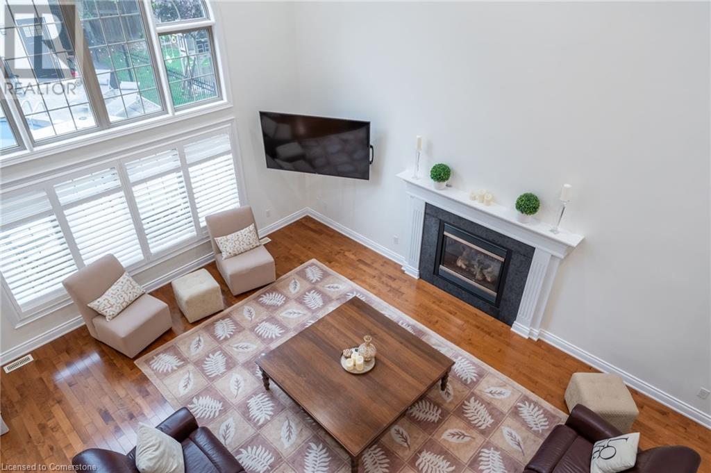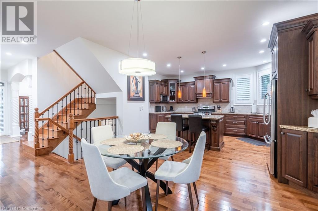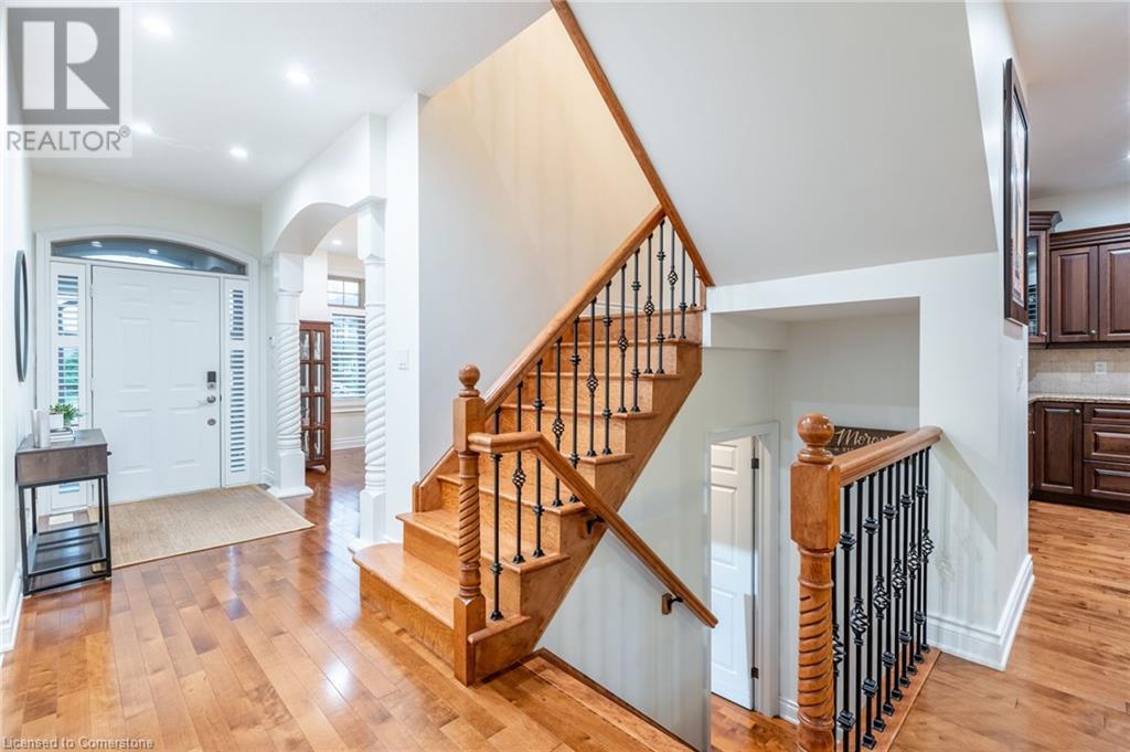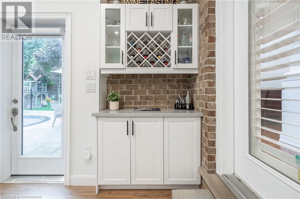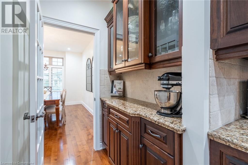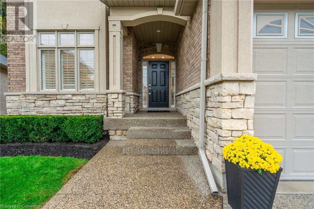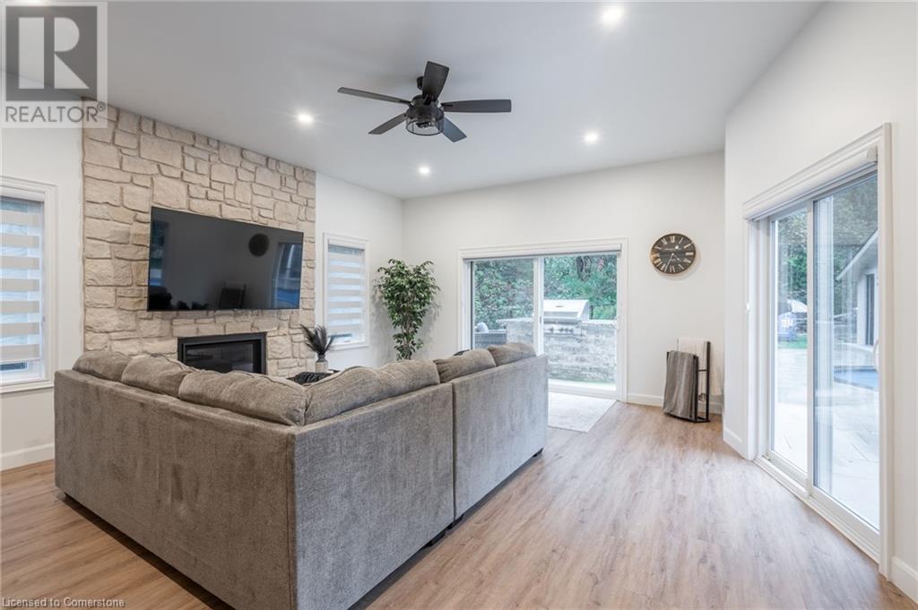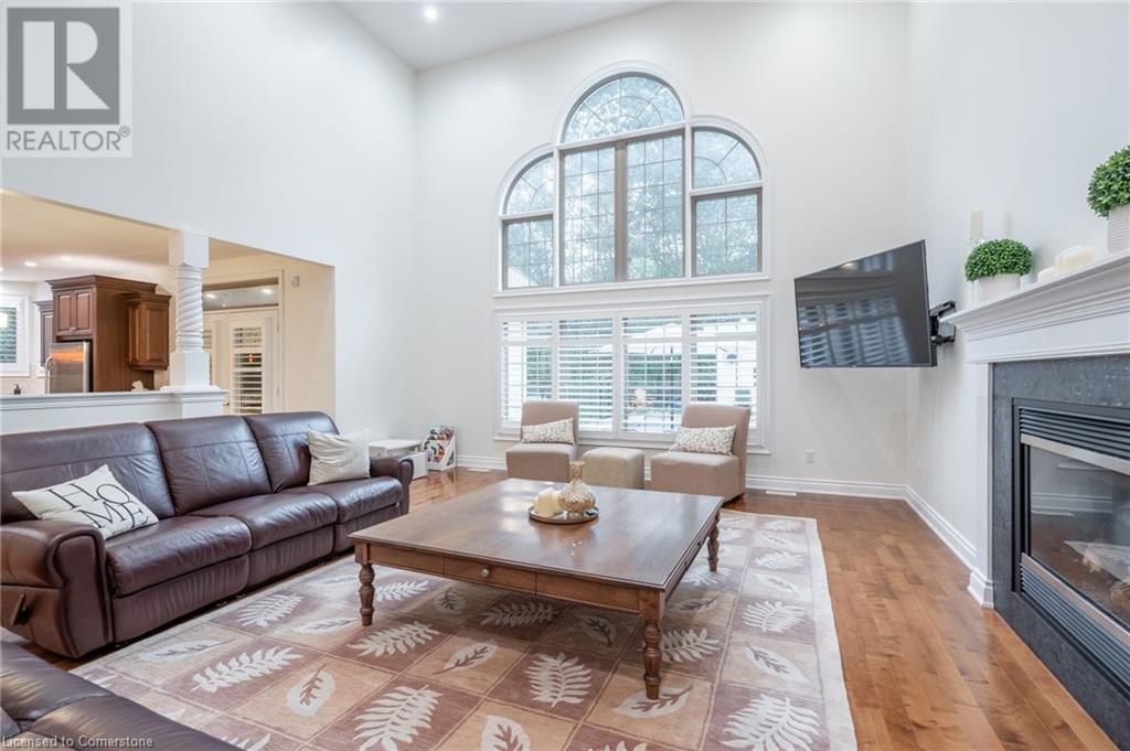 Custom-built home backing onto Dundas Conservation lands, offering a true backyard oasis. It features a new saltwater pool with custom paving stones, a pool house with a 2-piece bath, an outdoor shower, and a built-in BBQ. The newly built addition includes patio doors leading to the backyard, which boasts a wet bar, exposed brick, a TV, and a gas fireplace. Inside, this stunning, well-kept home offers over 3,400 sq. ft. of living space with hardwood floors on both the main and bedroom levels, pot lights, 9 ft ceilings, and vaulted 19 ft ceilings in the family room. The home also includes California shutters, an upgraded staircase and railings, a custom gourmet kitchen with stainless steel appliances, 3 bedrooms, bedroom-level laundry, a 5-piece primary ensuite, and a 4-piece guest bath. Located in a quiet court location with a 3-car garage (1 tandem space) , the property also features an aggregate concrete driveway and walkway. 200 AMP service. Enjoy leisurely walks to the nearby Dundas Conservation Area or tee off at the Dundas Valley Golf Course . (id:55009)