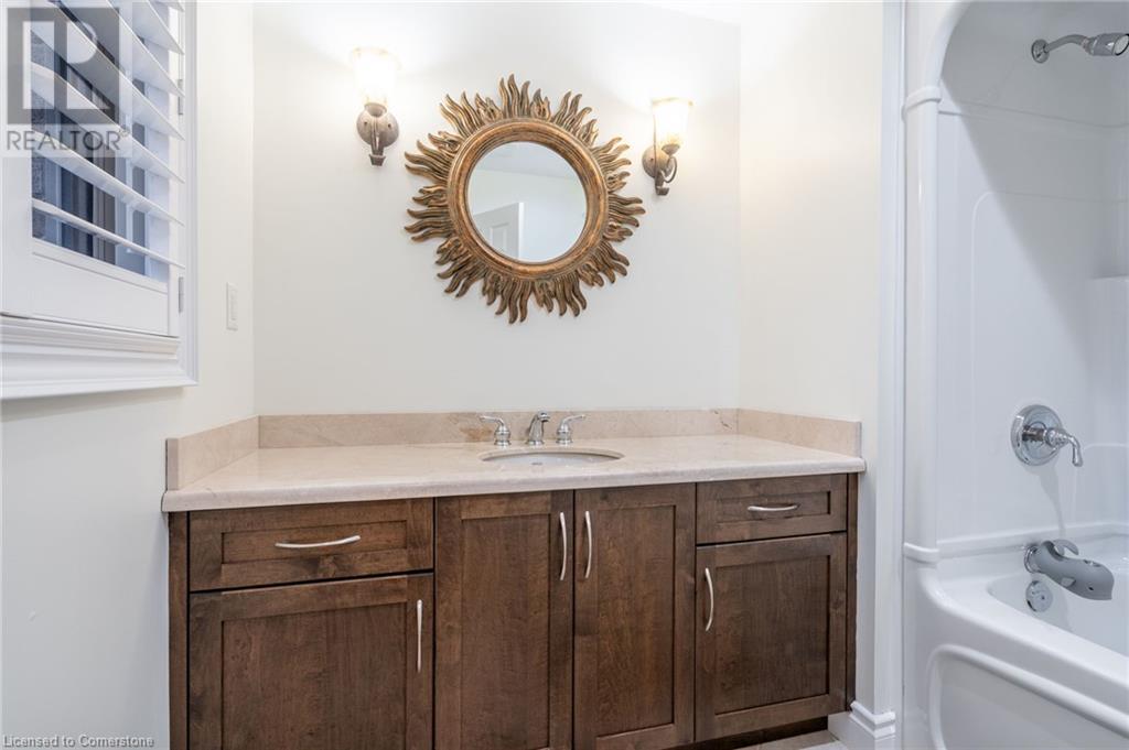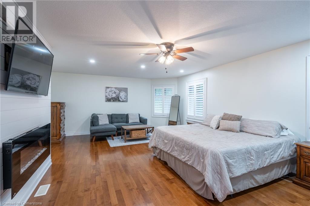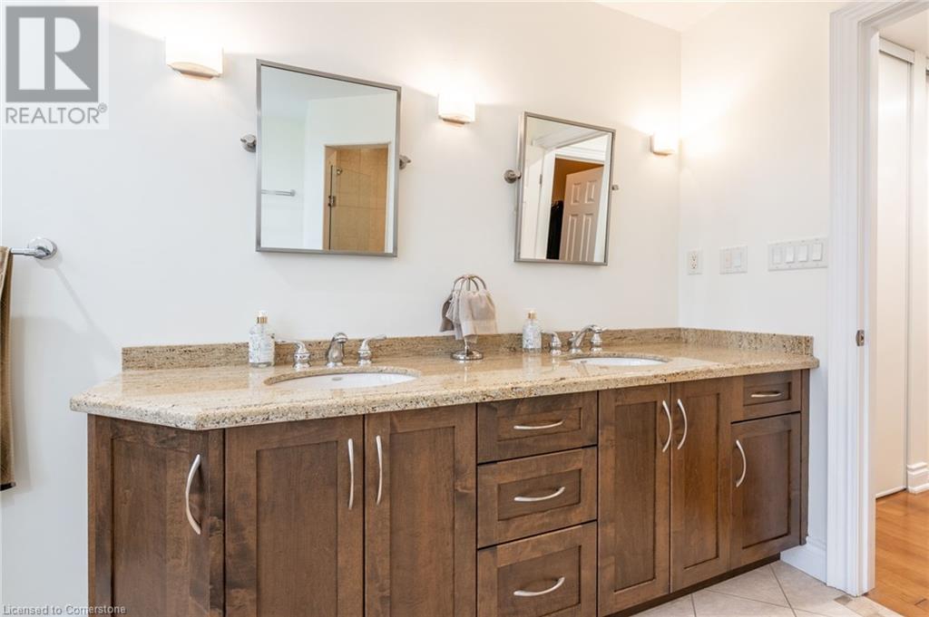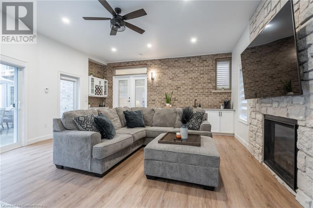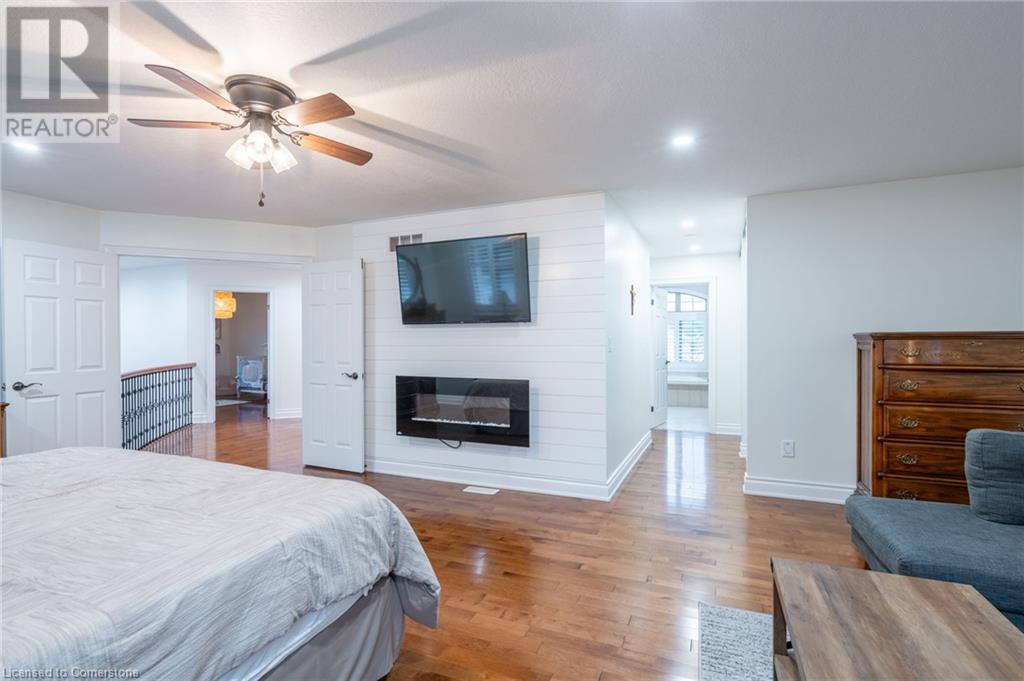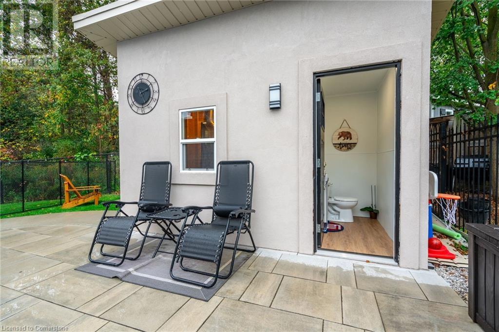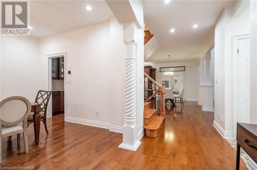 Custom-built home backing onto Dundas Conservation lands, offering a true backyard oasis. It features a new saltwater pool with custom paving stones, a pool house with a 2-piece bath, an outdoor shower, and a built-in BBQ. The newly built addition includes patio doors leading to the backyard, which boasts a wet bar, exposed brick, a TV, and a gas fireplace. Inside, this stunning, well-kept home offers over 3,400 sq. ft. of living space with hardwood floors on both the main and bedroom levels, pot lights, 9 ft ceilings, and vaulted 19 ft ceilings in the family room. The home also includes California shutters, an upgraded staircase and railings, a custom gourmet kitchen with stainless steel appliances, 3 bedrooms, bedroom-level laundry, a 5-piece primary ensuite, and a 4-piece guest bath. Located in a quiet court location with a 3-car garage (1 tandem space) , the property also features an aggregate concrete driveway and walkway. 200 AMP service. Enjoy leisurely walks to the nearby Dundas Conservation Area or tee off at the Dundas Valley Golf Course . (id:55009)