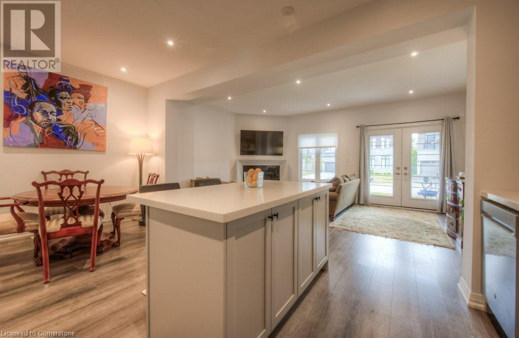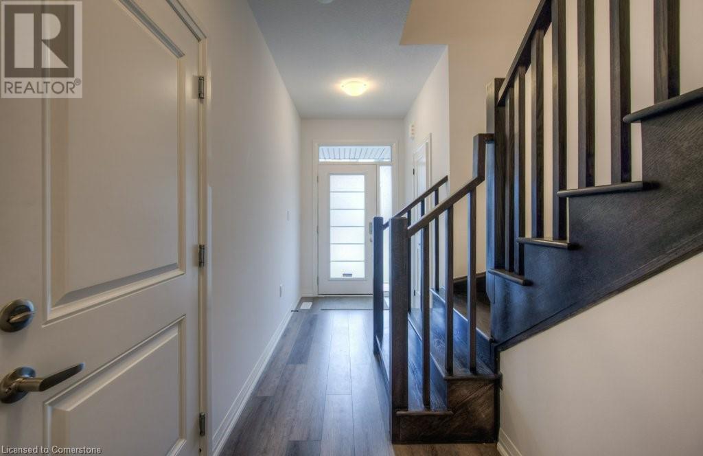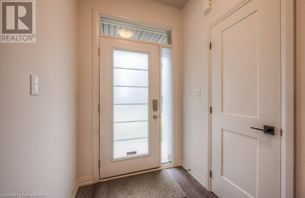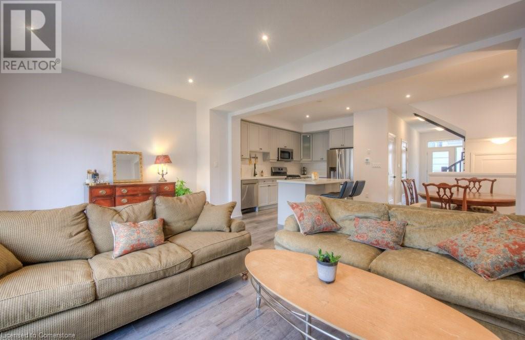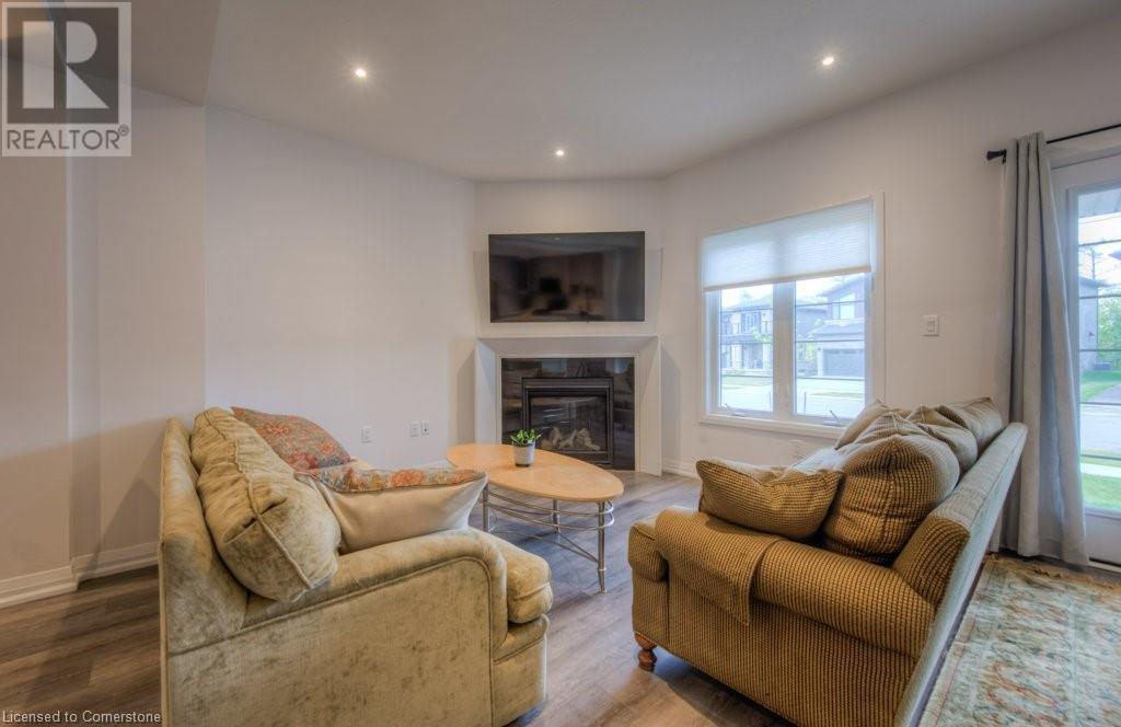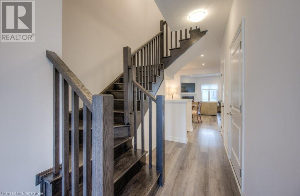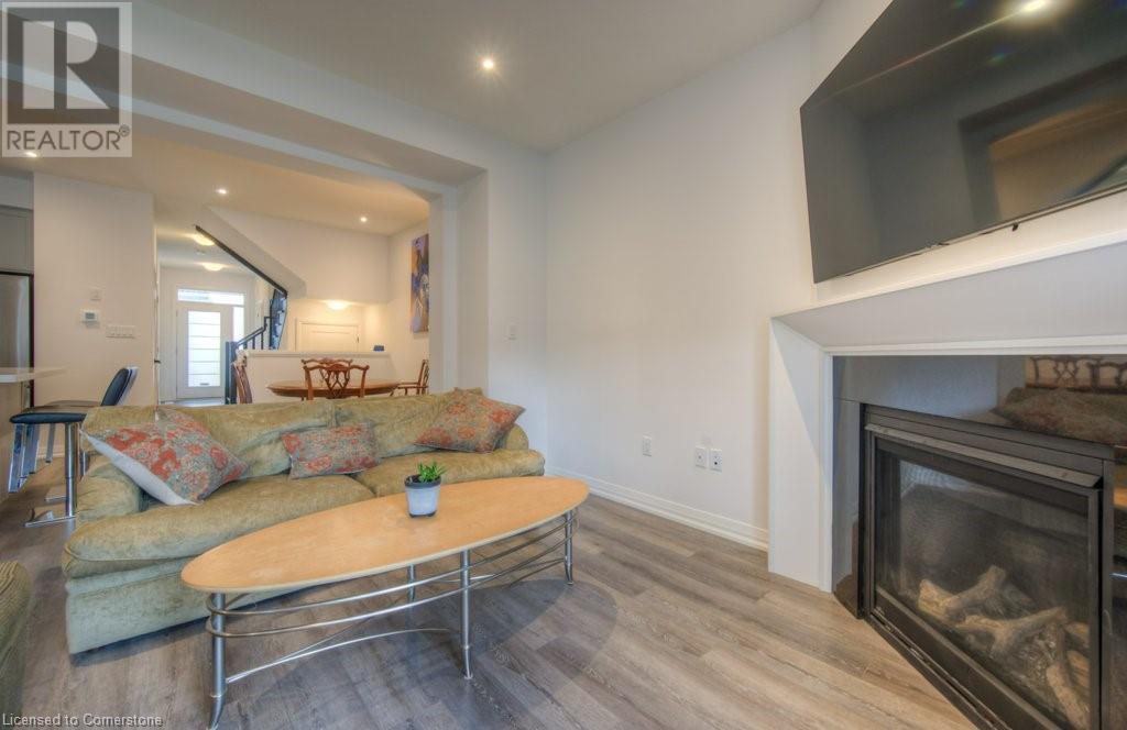 $82 MonthlyCarpet free, spacious 3 bed, 2.5 bath townhome features large windows, luxury vinyl plank flooring and 9' ceilings throughout main floor. Great room features cozy gas fireplace. Kitchen features quartz countertops, backsplash, island with extended breakfast bar, undermount sink, pot lights, extended height upper cabinets, pot and pan drawer. Double doors from great room to covered porch and backyard. Gas line for future BBQ. Continue up the oak stairs to main bedroom with walk-in closet and luxury ensuite with quartz countertops, walk-in tiled shower and soaker tub. Convenient 2nd floor laundry. Main bathroom also features quartz countertops. Bed 3 features a walk- in closet. Other upgrades include garage door opener, fruit cellar, A/C and 3pc basement rough in. Minutes from 403. Steps to shopping center and schools nearby. (id:55009)