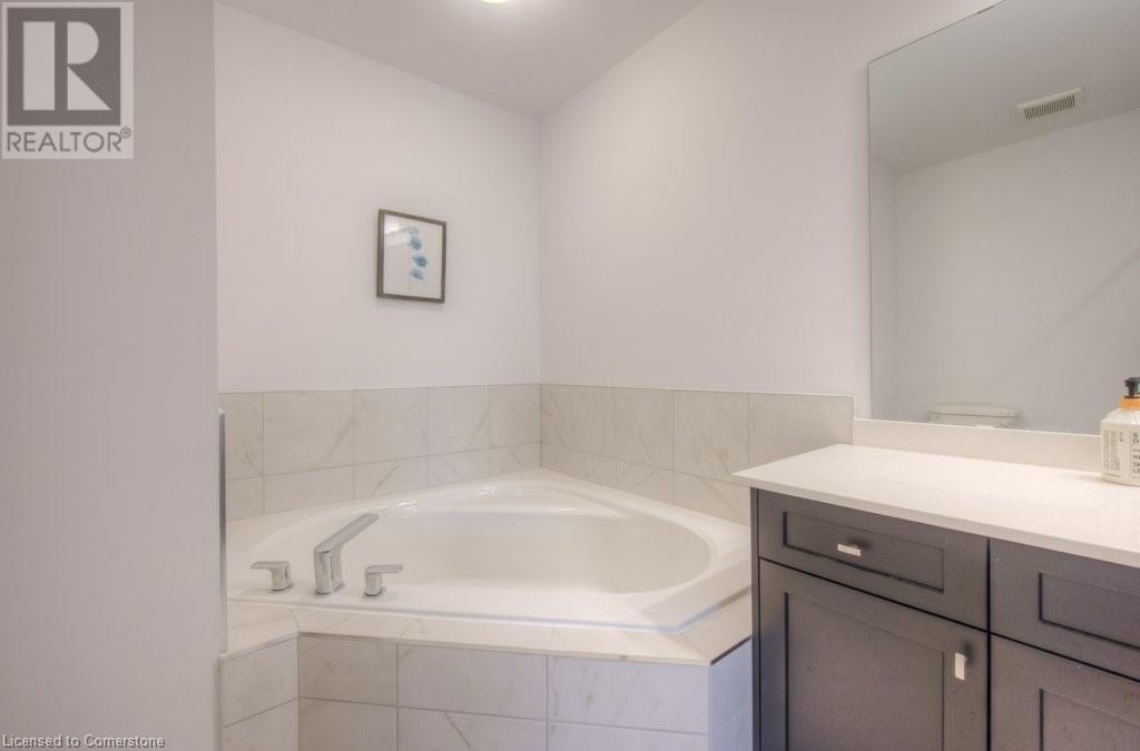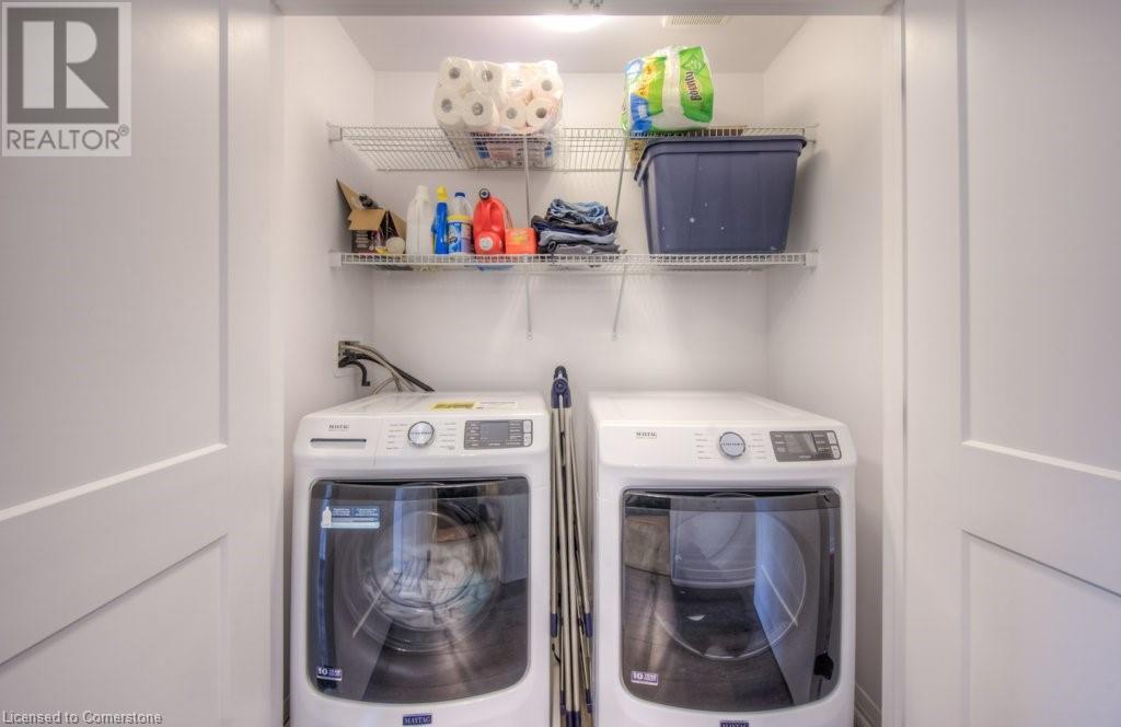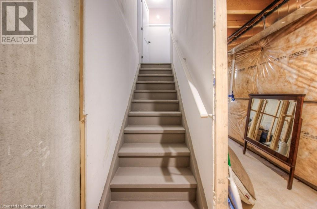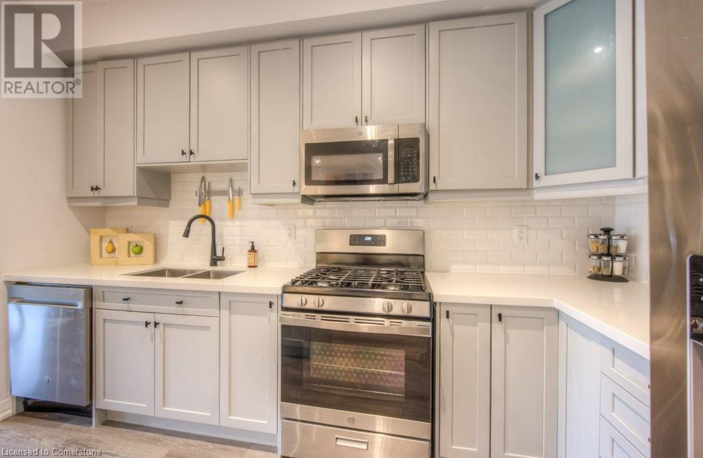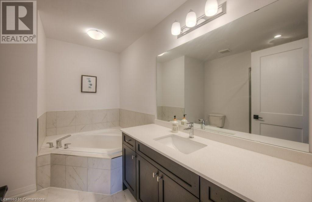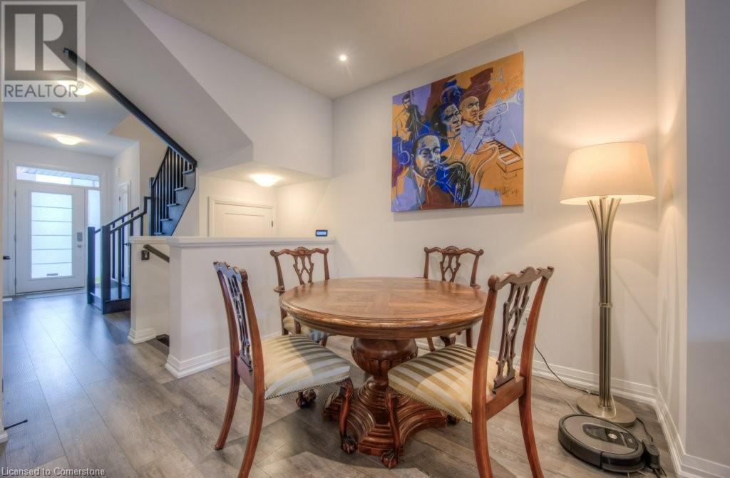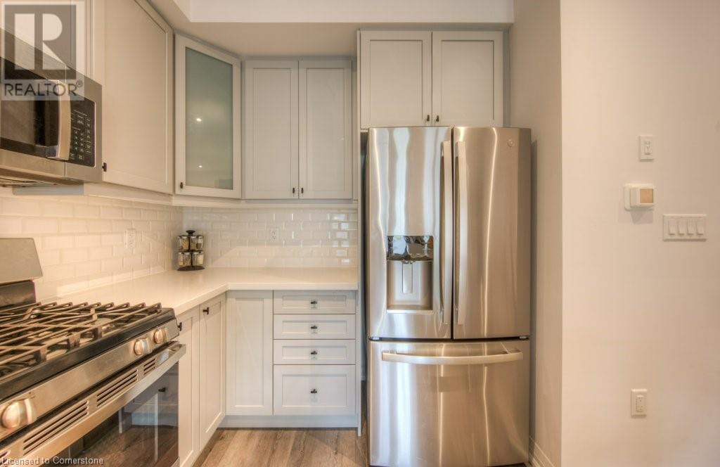 $82 MonthlyCarpet free, spacious 3 bed, 2.5 bath townhome features large windows, luxury vinyl plank flooring and 9' ceilings throughout main floor. Great room features cozy gas fireplace. Kitchen features quartz countertops, backsplash, island with extended breakfast bar, undermount sink, pot lights, extended height upper cabinets, pot and pan drawer. Double doors from great room to covered porch and backyard. Gas line for future BBQ. Continue up the oak stairs to main bedroom with walk-in closet and luxury ensuite with quartz countertops, walk-in tiled shower and soaker tub. Convenient 2nd floor laundry. Main bathroom also features quartz countertops. Bed 3 features a walk- in closet. Other upgrades include garage door opener, fruit cellar, A/C and 3pc basement rough in. Minutes from 403. Steps to shopping center and schools nearby. (id:55009)