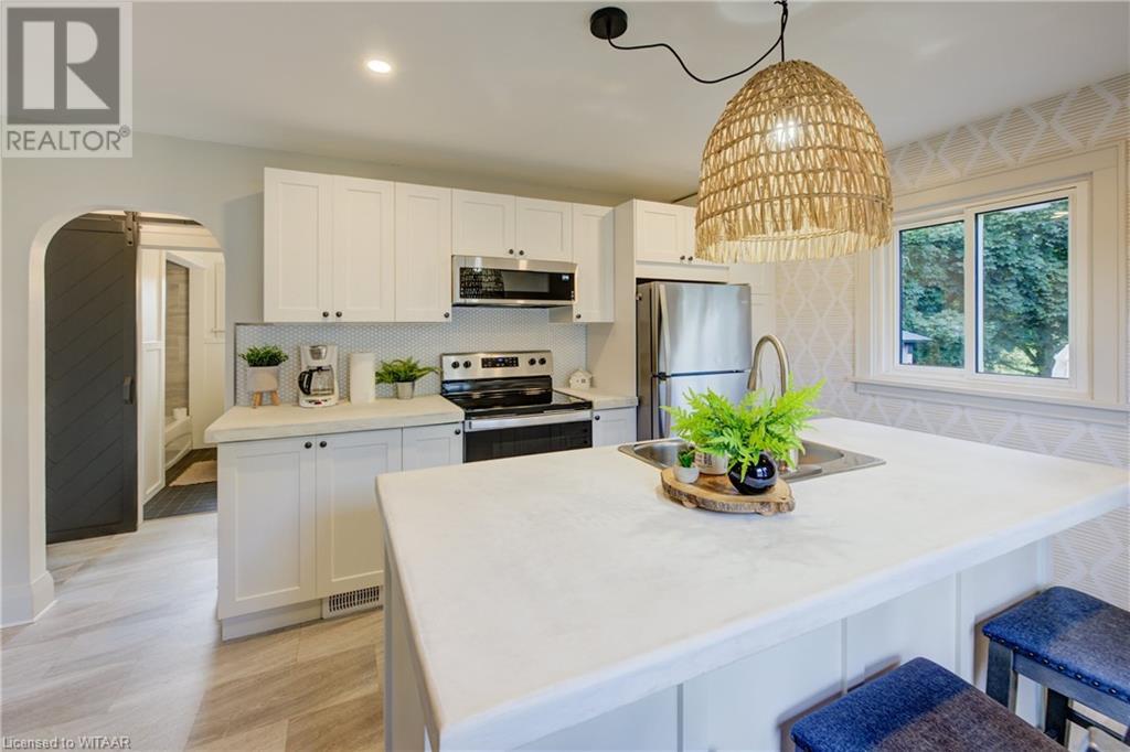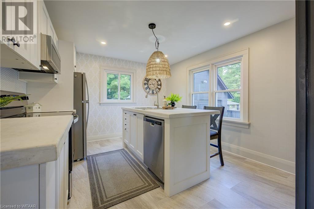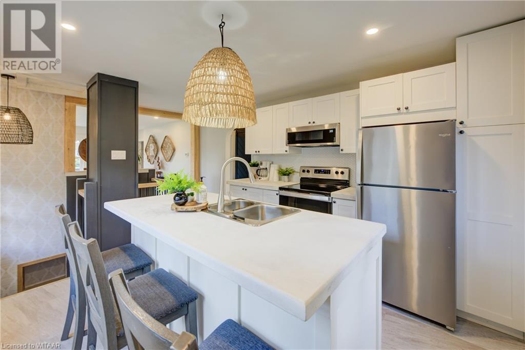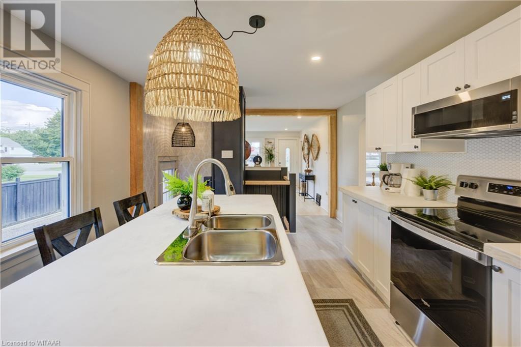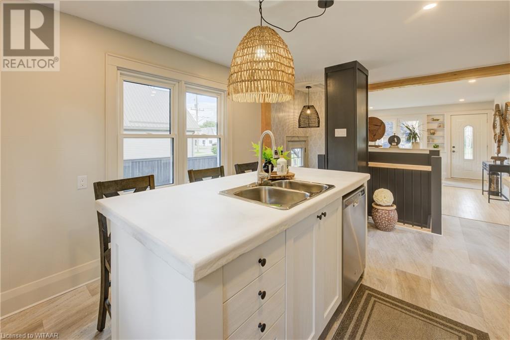 Located in the quaint town of Norwich, this stunning fully renovated bungalow awaits. Upon arrival, you're greeted by a beautifully landscaped front yard leading up to a charming concrete front porch, perfect for savouring your morning coffee. Opening the front door, natural light floods into the spacious family room through large windows, making this inviting space ideal for cozy gatherings. Moving into the heart of the home, you'll fall in love with this modern kitchen. Imagine preparing meals on the sleek concrete countertops, surrounded by pristine white cabinets that offer ample storage. The central island beckons, its smooth surface perfect for chopping vegetables or chatting with guests while you cook. Continuing through the home, two spacious bedrooms await, along with a 4-piece family bathroom. Step downstairs to find a large rec-room, guest accommodations, and an additional bathroom. But that's not all, the ultimate backyard oasis is just outside. This large stamped concrete patio extends the living area, offering the perfect place for family bbq's outdoor dining, and relaxing. With a single-car shop, and a long driveway, you'll find everything you've been looking for at 120 Main St W. Don't miss this amazing opportunity, book a showing today! (id:55009)
