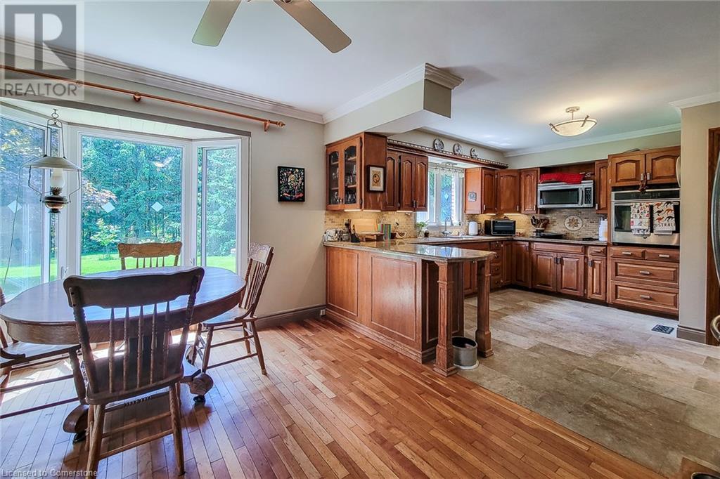 Lovely 10.2 acre property with approx 3 acres of fenced paddocks backing onto Fairchild's Creek. 3 minutes from Ancaster. Custom built 3 bedroom 2 bath brick bungalow with Brazilian Cherry hardwood, ensuite, open kitchen with cherry cabinets, granite counters, built in oven, stove, microwave & dishwasher. Double attached garage with electric car charging station. 1.5 detached garage. 42 x 36 workshop/barn with hydro & water ready for your at home business. Updates: 2015 Paddock Fencing with Water to barn and Drinking post in the Run/in Shed ready for your pasture buddies to move in! Tiled LR and Epoxied Basement floors to look like copper. 2017 Roof and Septic redone 2020 Back Deck, Generator, Lr, Dr and Fam Rm Windows and Sliding Dr Redone. Roughed in bath plumbing in basement with sewage pump. 2021 Converted from oil to New Propane Fce and C/A 2023 Water Heater owned, Eavestroughs with Gutter Guards. Retiled Kitchen (id:55009)