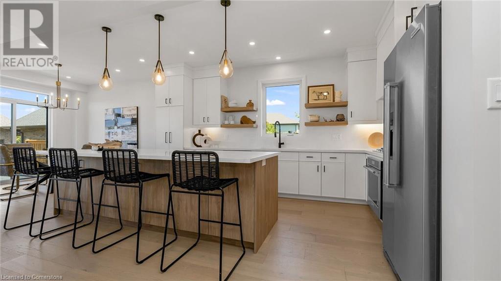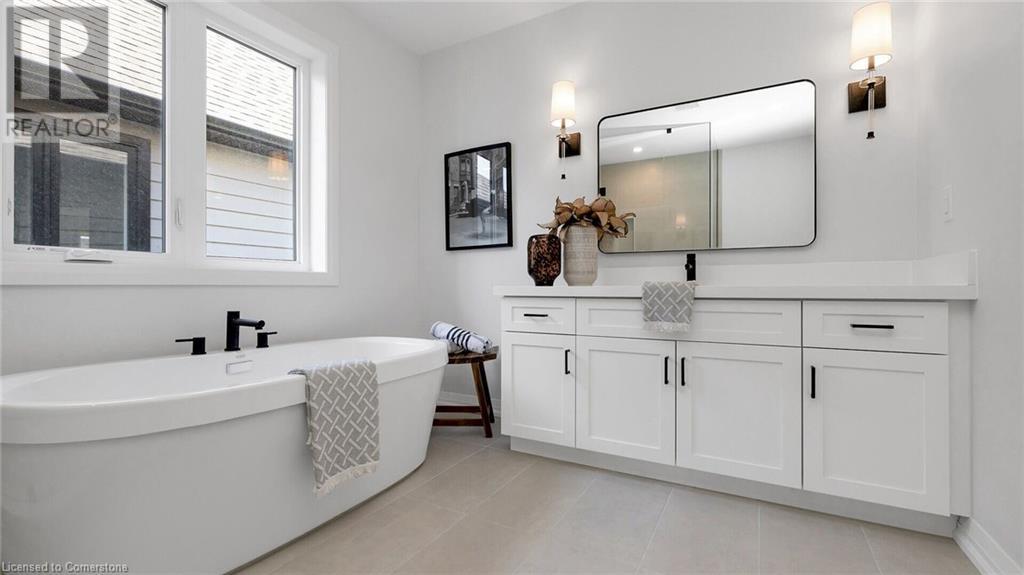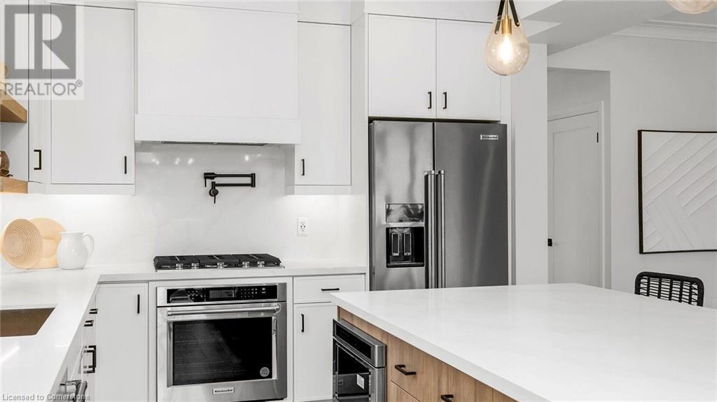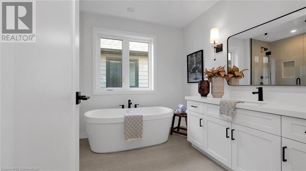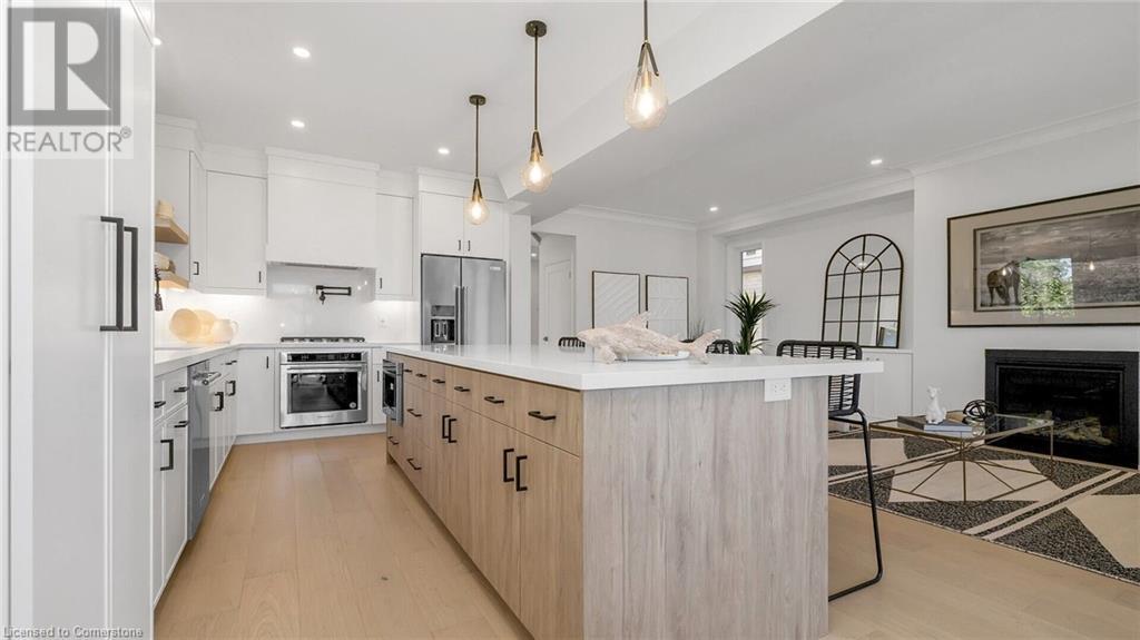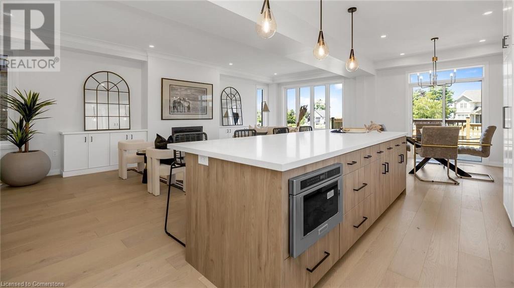 Welcome to the Custom Luxury Model Home at Seabreeze Estates by Peter DeSantis. This exquisite home offers four spacious bedrooms and three and a half bathrooms, providing ample space for comfort and relaxation. The gourmet kitchen is a chef's dream, featuring a 5-piece appliance set, a convenient pot filler above the stove, stylish floating shelves, and a custom hood fan. The extra-large island with beautiful quartz countertops is perfect for meal prep and casual dining. The open concept living room boasts built-in cabinets and large windows, creating a bright and inviting space. A main floor office offers the perfect environment for remote work or managing household tasks. High-end oak floors throughout the main floor and elegant oak stairs add a touch of sophistication. The home features 9 ft ceilings throughout including extra height in the basement. The double car garage provides ample parking and storage. This home includes two primary suites, each with a luxury bathroom that features a free-standing soaker tub for ultimate relaxation. The upstairs also features an additional bathroom, 2 bedrooms and a conveniently located 2nd floor laundry room. Located just steps from the lake and Seabreeze Park, this home offers serene views and access to outdoor activities. It is also conveniently close to the QEW and local amenities, ensuring easy access to everything you need. Welcome to Seabreeze Estates, where luxury and convenience meet in a stunning lakeside setting. (id:55009)