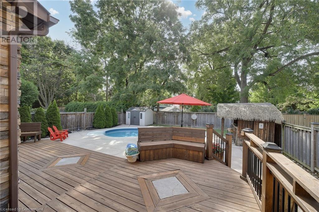 Welcome to your dream home in the serene Maple neighborhood of Burlington! This stunning 4+1 bedroom residence offers unparalleled comfort and luxury, with a fully finished basement featuring an additional bedroom, bathroom, spacious living room, and wet bar. The main floor boasts a seamless transition to a large deck overlooking your private backyard oasis, complete with a pool, tiki bar cabana, and hot tub hook-up. Recent updates include modern appliances, a new air conditioner, and updated windows. Don’t miss this opportunity to own a meticulously maintained home with everything you need for ultimate relaxation and convenience. (id:55009)