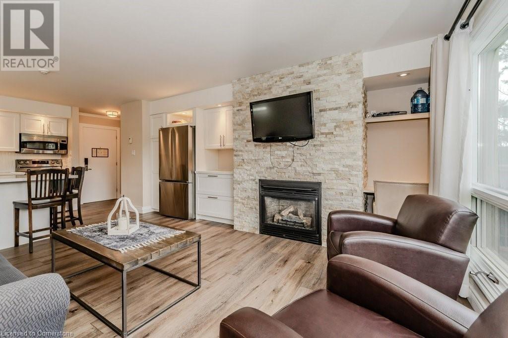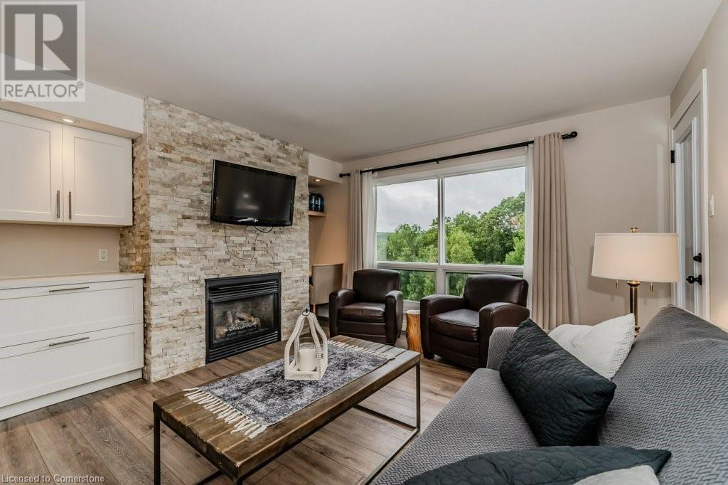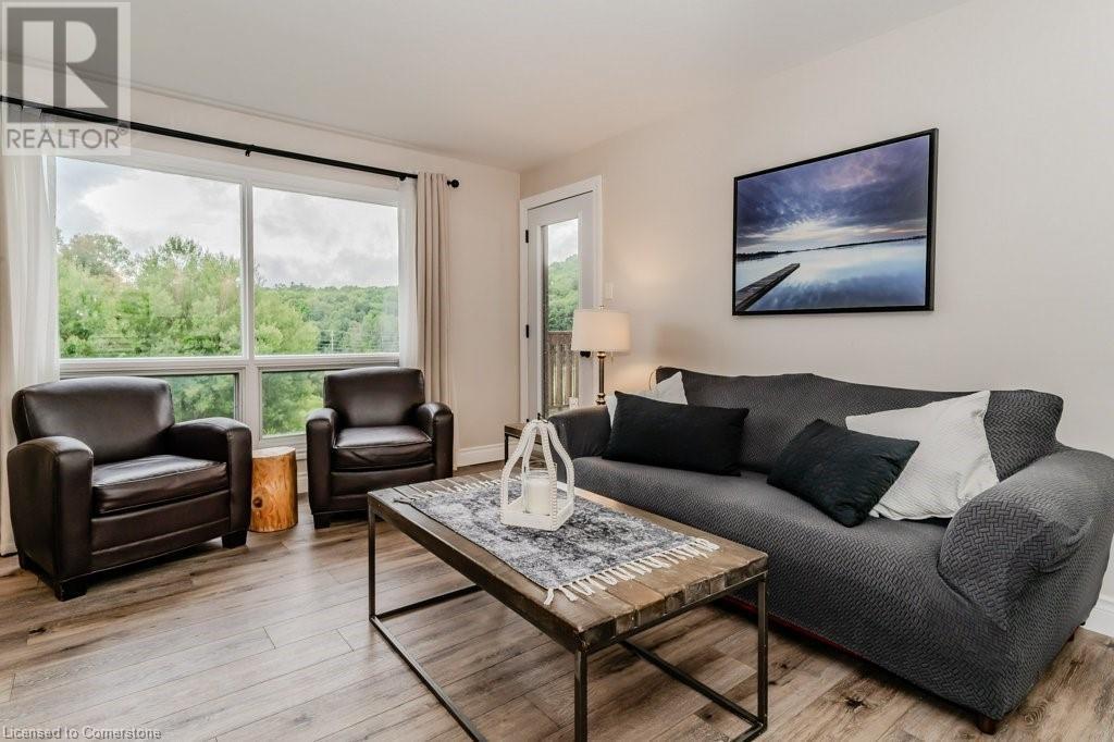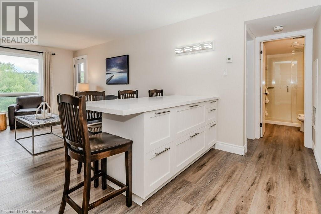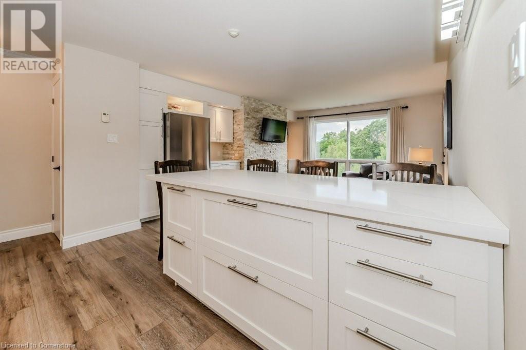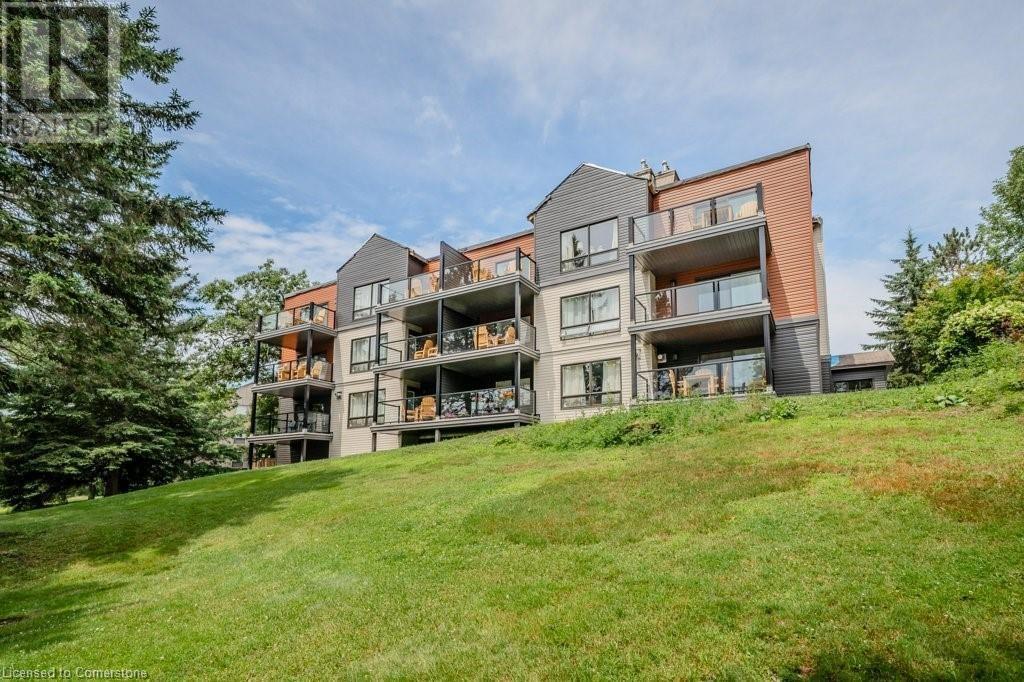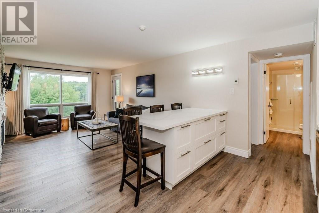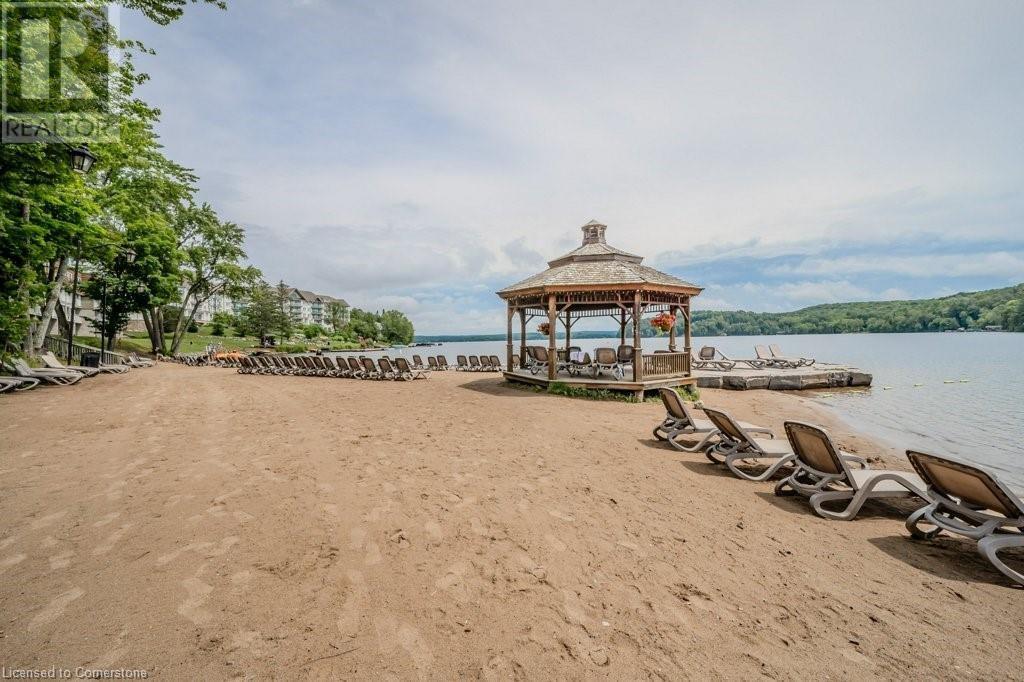 $899.91 MonthlyWelcome to Deerhurst Resort and the Summit Lodges! Be amazed at the high end renovations completed featuring full size fridge, stove and dishwasher. Custom kitchen and oversized peninsula/island perfect for entertaining. High end flooring installed and updated bathroom. By far the best unit in all Summit buildings. Renovations to the exterior are planned to begin spring/summer of 25. Both assessments to be paid in full on or before closing. Exterior finish to be similar to 52 Summit. This spacious 1 bedroom condo with all of the amenities of Muskoka right at your doorstep - beaches, tennis, pickle ball, hiking, world class golf, treetop trekking and so much more. As an owner of a condo at Deerhurst you are welcome to use the entire resort as your own backyard. This unit is turn key. The views from this top floor unit balcony are beautiful with a stunning view of the golf course. Quiet and serenity are waiting for you (id:55009)