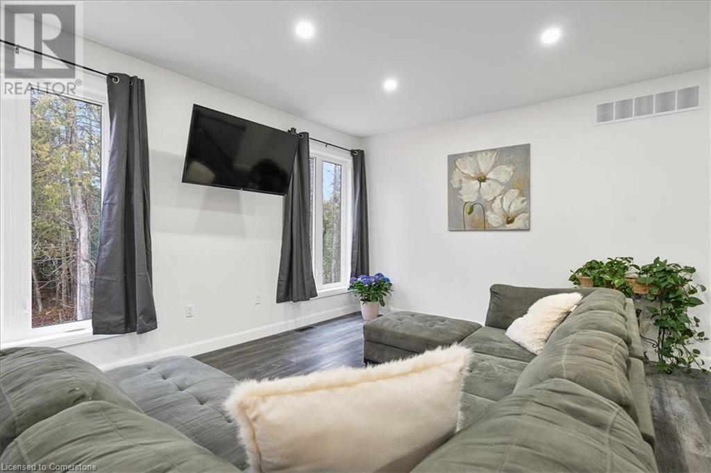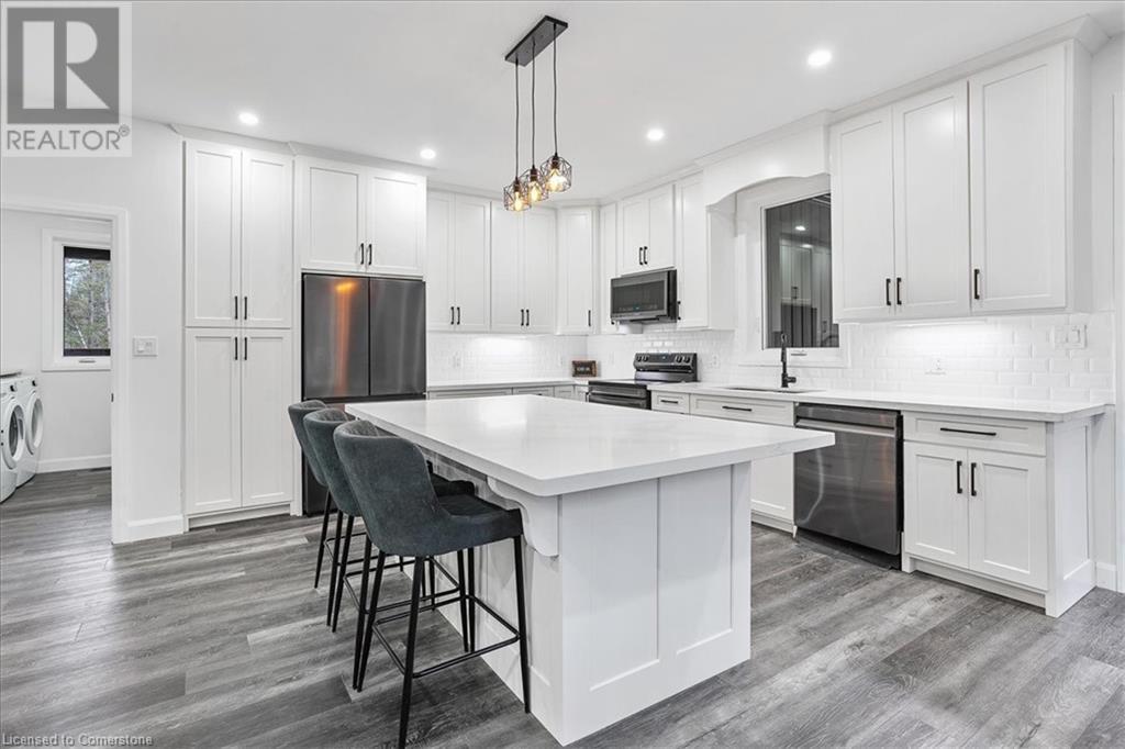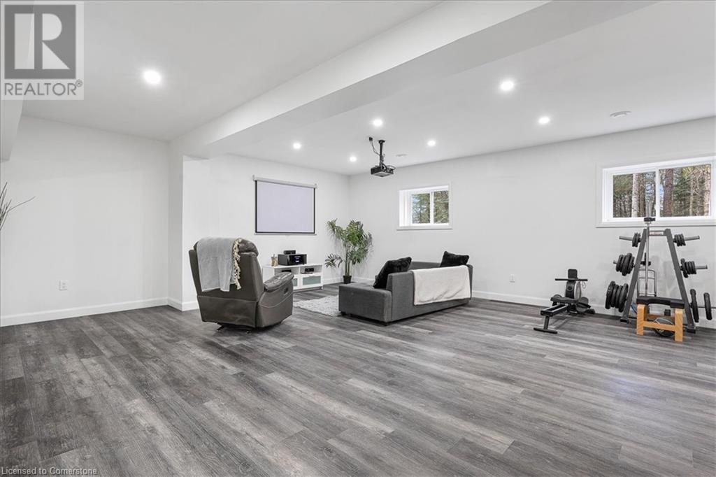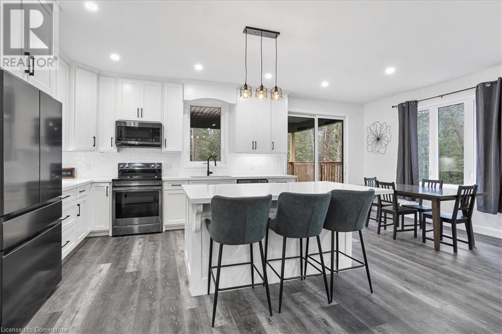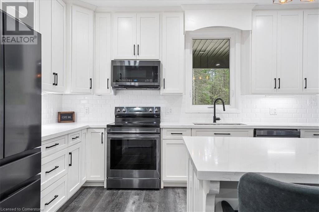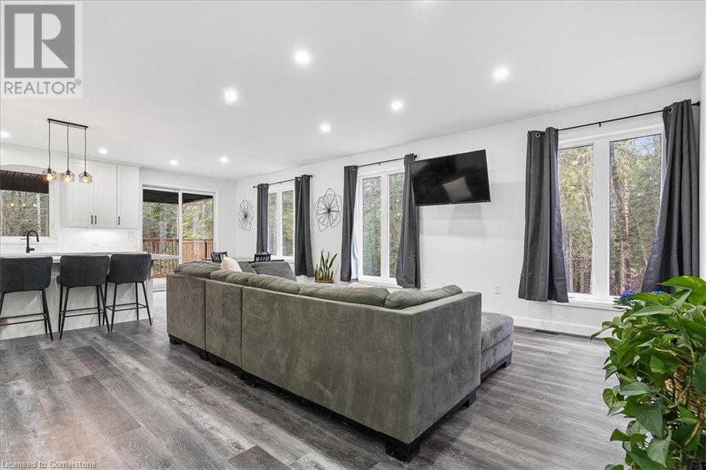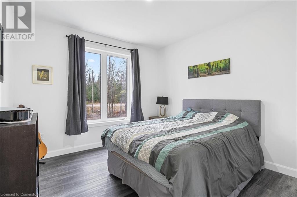 This is what you’ve been waiting for. Newly constructed bungalow on nearly 13 acres with over 1400 feet of frontage is the perfect balance of privacy and convenience. Located on a year-round road and close to the village of Haliburton. Trails running behind the property are sure to please Snowmobile enthusiasts. Nearby lakes with public boat ramps offer swimming, boating or ice fishing. The property has many trees for maple syrup or even sell your own firewood. It’s hard to imagine all of the opportunities that await. The home offers a nice covered front porch that leads to the main foyer with 9 ft ceilings. Open concept living room/kitchen looks out a massive wall of windows to the forest beyond. The gorgeous and built-to-last custom Mennonite made kitchen has tons of cupboard space, island with breakfast bar, under counter lighting, quartz countertops and smudge free stainless steel appliances The kitchen has patio doors that lead to the covered rear deck where you can enjoy the sunset. 3 good sized bedrooms on the main floor and 2 full bathrooms. The master has a walk-in closet and ensuite with double sinks. The remaining 2 bedrooms have oversized Floor-to-ceiling windows to admire the gorgeous views. The basement with 8 1/2 ft ceilings has a bedroom and full bath, gym and a brand new projection TV system. (There is the space for a 5th bedroom if need be). A massive 750 sq foot garage has 15 ft ceilings. This home has everything that northern living has to offer. (id:55009)