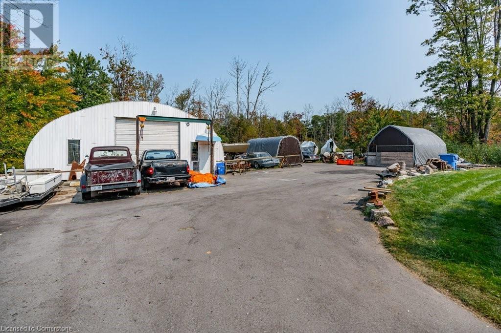 Endless possibilties for this 3+ plus acre lot with large detached home and Quonset hut/work shop at the back of the property. Ideally situated for those looking for a rural property with fast and easy highway access. Parking is abundant with newly paved driveway and miltiple parking area's. The home is currently divided into 4 units, complete with separate entry, kitchen and bath, as well as excellent tenants. There is another tenant currently leasing out the Quonset/Outdoor storage area, through 2026. The total current rents are $7356.62 per month. Please enquire for further details on tenants/leases. Lush green grass, mature tree's, a pond and ample outdoor storage make this a beautiful offering. Book your showing today to discover how this unique home and property could work for you! (id:55009)