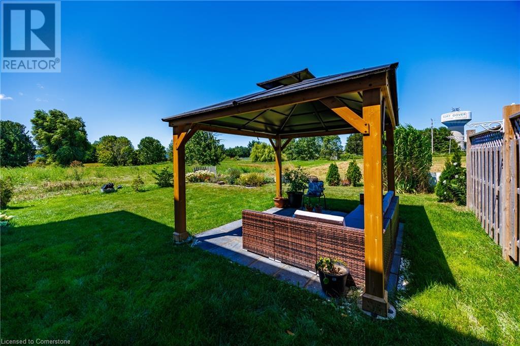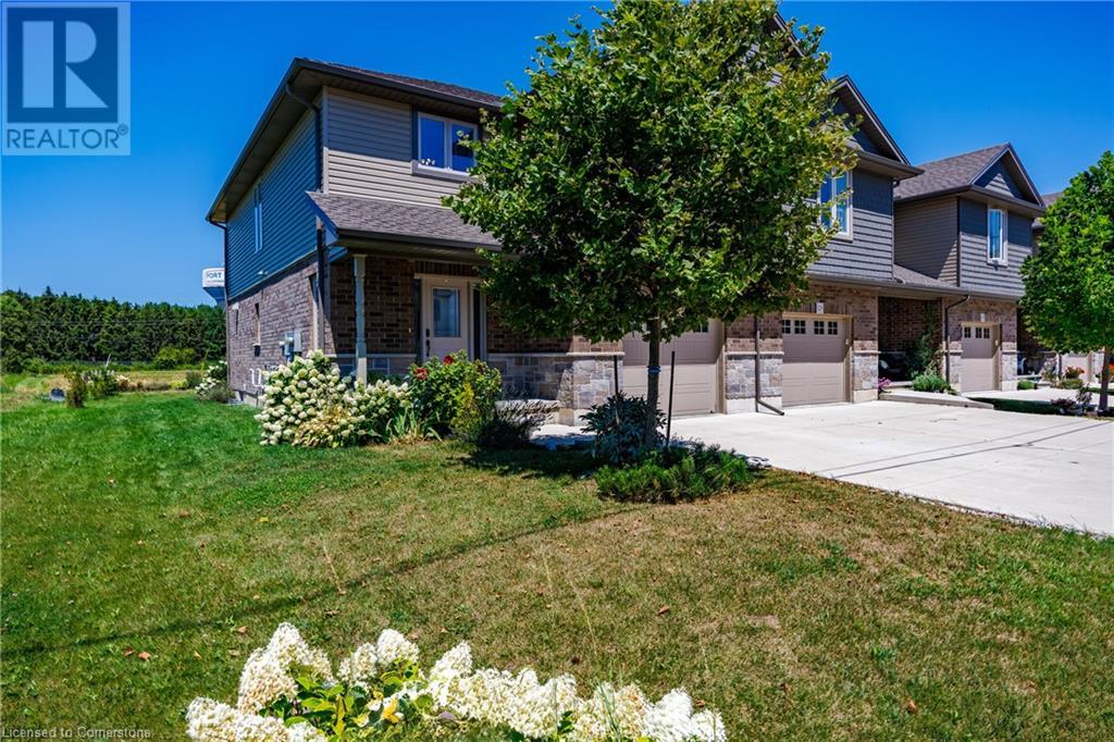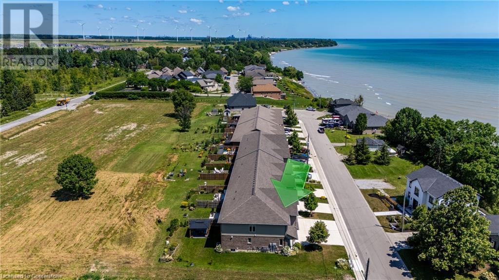 Move In Ready! Wow! What a location! Enjoy the lake breezes with a bonus partial lake view. This immaculate 5 year new end unit Boer home shows a pride of ownership throughout. Beautiful brick and stone skirting accent the exterior. This freehold (no condo fees) townhome boasts a total of 3 bedrooms and 3 bathrooms. Enjoy the convenience of a bedroom level laundry. The large primary bedroom offers an ensuite and walk-in closet. The main floor provides an open concept with kitchen showcasing an island and stone countertops. Large windows and patio door allows an abundance of natural light. Patio doors lead to a rear patio with gazebo. Situated on a quiet dead end street with a short walk to lake and marina and backing onto Norfolk County open space. You don't want to miss out on this one! Call Today! Check out the virtual tour. (id:55009)