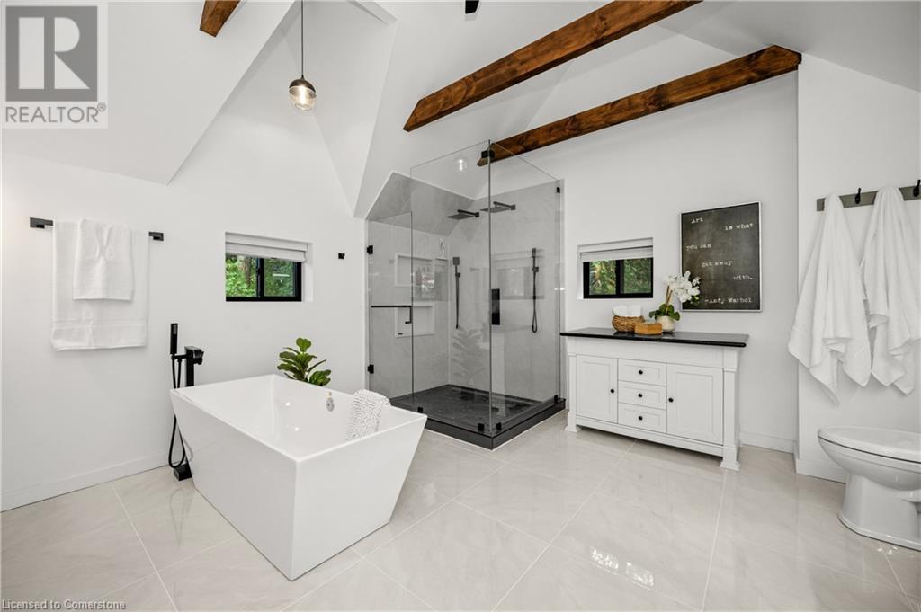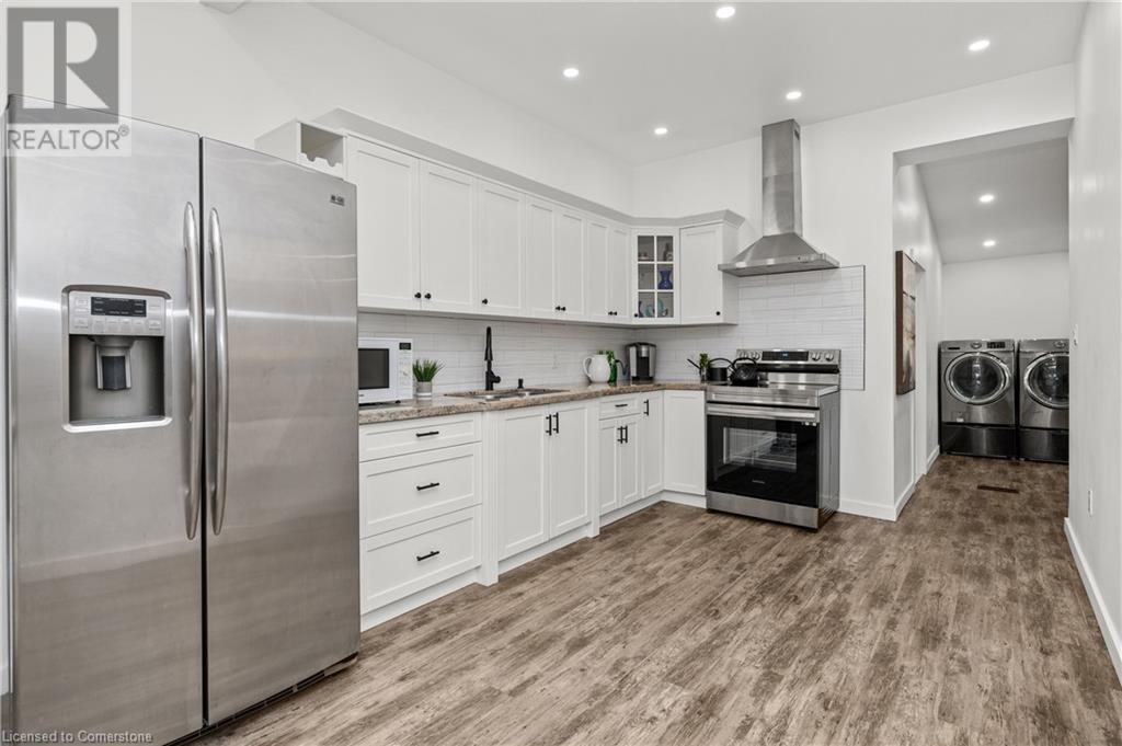 Welcome to 127 Freelton Rd! This expansive home, boasting over 3500 square feet of living space, has been fully updated top to bottom! The 3 bedroom, 2 full bathroom 2600sqft home, with 10 ft ceilings, is renovated and carpet free throughout! The House also offers a large,accessible in-law suite, just under 1000 sq ft, on the main level with separate entrance, and outdoor area! Two, Double car driveways offer parking for 8 cars, plus 1 car attached garage! Large private yard plus large upper balcony complete your outdoor oasis! Updates over the past 6 years include all 3 bathrooms, both kitchens, all windows & doors, all flooring, both furnaces, all electrical wiring replaced and upgraded, Tankless water heater, water filtration system, whole home spray foam and sound proofed, exterior stucco, new plumbing, and much more. All this in the heart of the beautiful, welcoming village of Freelton! Potential of third unit (one bedroom main floor unit with minor adjustments). Families looking for multi-generational home, Investors looking for multi unit, or those looking to supplement income - this home is move-in ready and awaiting the next family to enjoy! (id:55009)