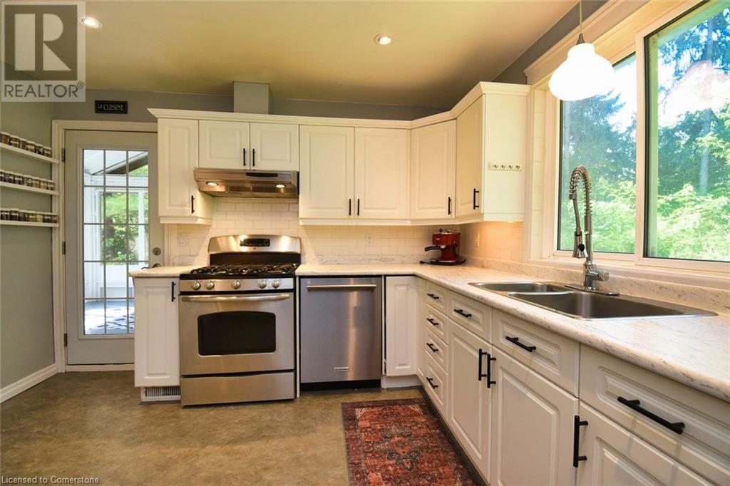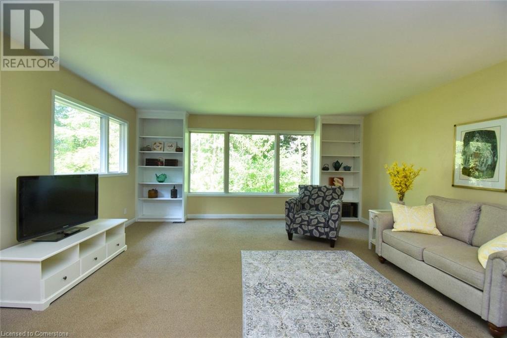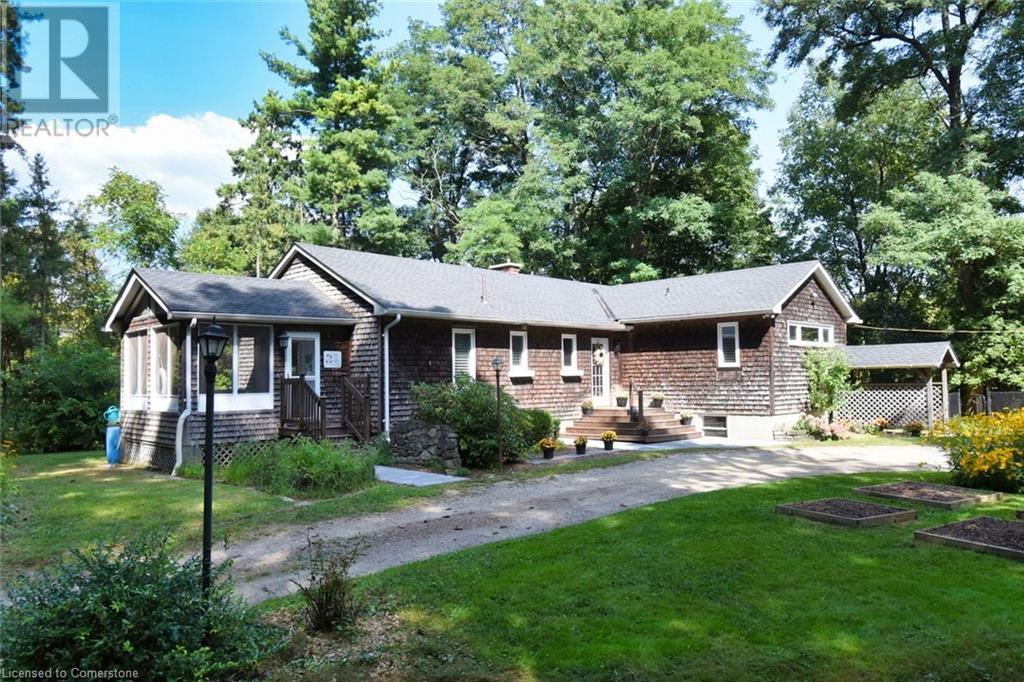 Escape to this private, peaceful rural property nestled on a serene 2.72-acre wooded lot. Located only a short 5-minute drive from the towns of Dundas and Ancaster, this home offers the perfect balance between secluded country living and convenient access to amenities. Surrounded by trees, the large living room is the heart of the home, featuring a cozy gas fireplace for those chilly evenings. With 2 spacious bedrooms on the main floor and an additional 2 versatile rooms downstairs, there's plenty of space for family, guests, or a home office. Whether you’re enjoying the tranquility of nature, hosting gatherings, or simply relaxing by the fire, this home offers the ultimate in comfort and privacy. An ideal retreat for those looking for a rural lifestyle in a great location! Don’t miss out on this rare opportunity! (id:55009)