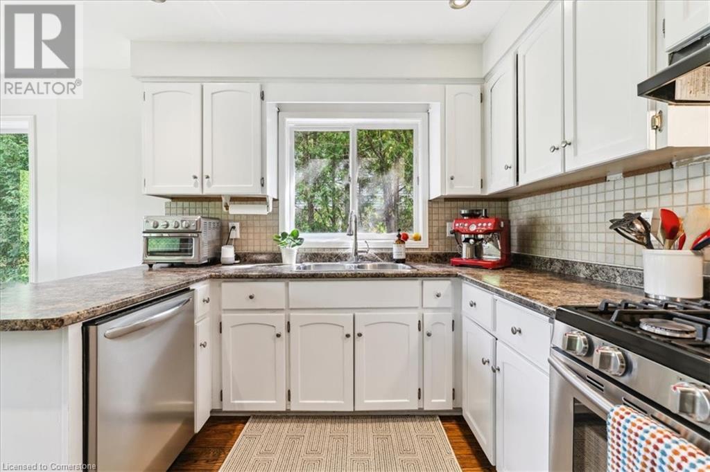 Discover the perfect blend of comfort & convenience at 1286 Hammond St, a spacious 4-bedroom, 3.5-bath home in the heart of Downtown Burlington. Nestled in a desirable, family-friendly neighbourhood, this home offers a walkable lifestyle close to the lake, Mapleview Mall, & easy access to QEW/403 & 407. Enjoy an eat-in kitchen, hardwood floors, & a main-floor laundry room with side yard access. Relax in the upper-level family room with a wood-burning fireplace or retreat to the primary bedroom with a walk-in closet & ensuite. The private, tree-lined backyard is an entertainer's dream, featuring multiple decks, a concrete patio, a covered bar, and a gas line hookup for your BBQ. A finished basement with a bedroom, 3-piece bath, kitchen, & separate entrance adds potential for an in-law suite or rental income. Complete with a 2-car garage & backing onto green space, this home is a rare find for those seeking both tranquility & proximity to all Burlington has to offer. (id:55009)